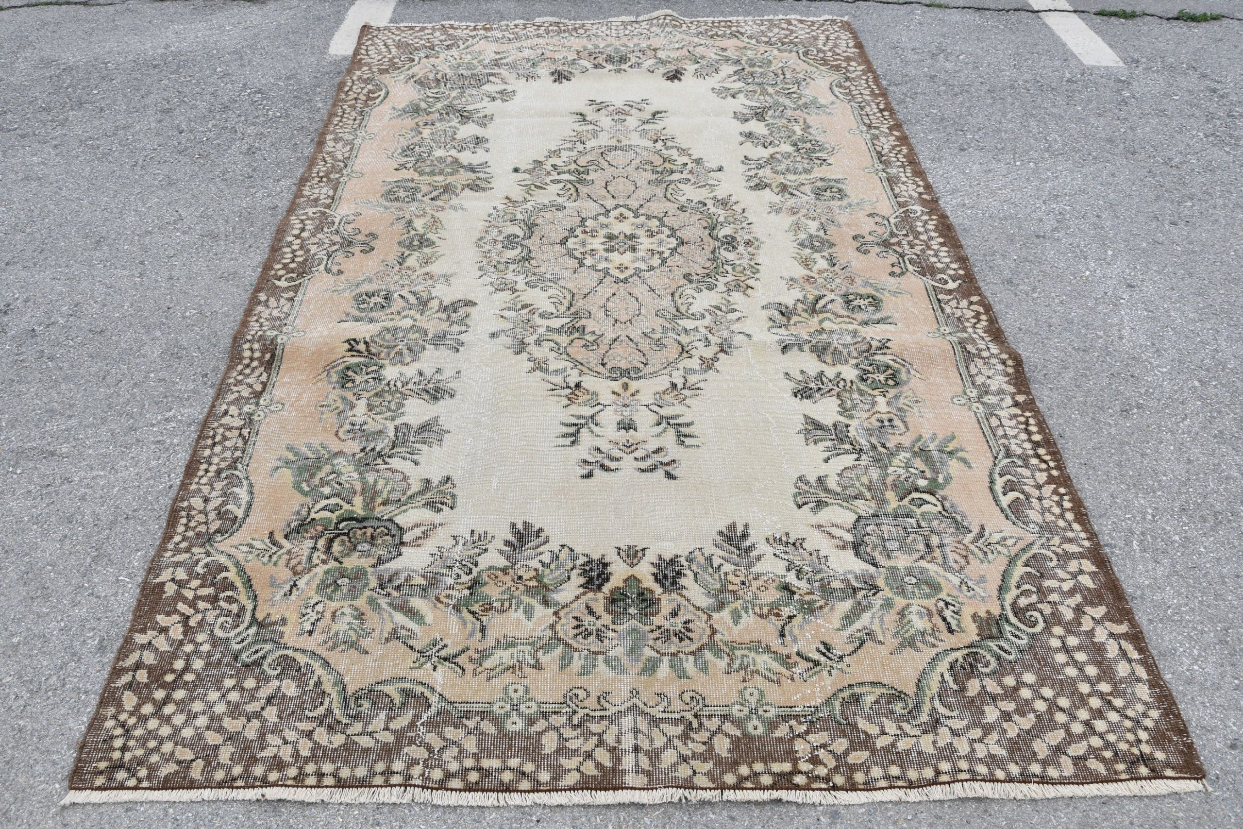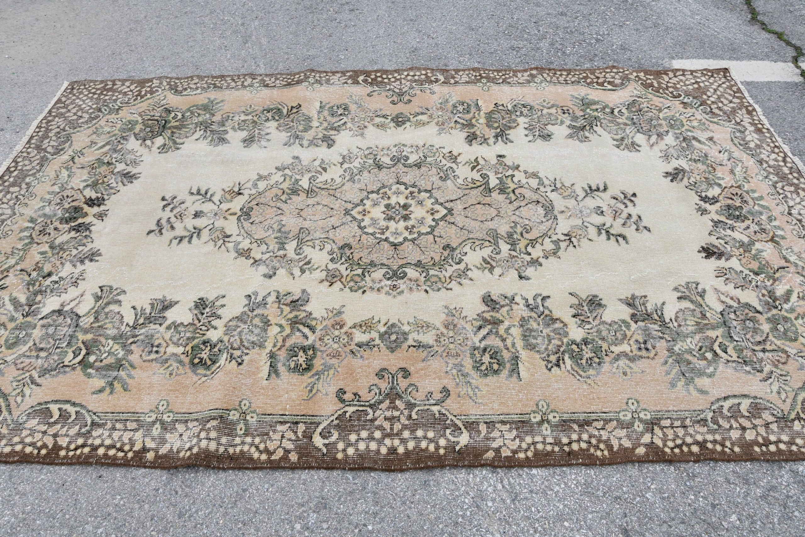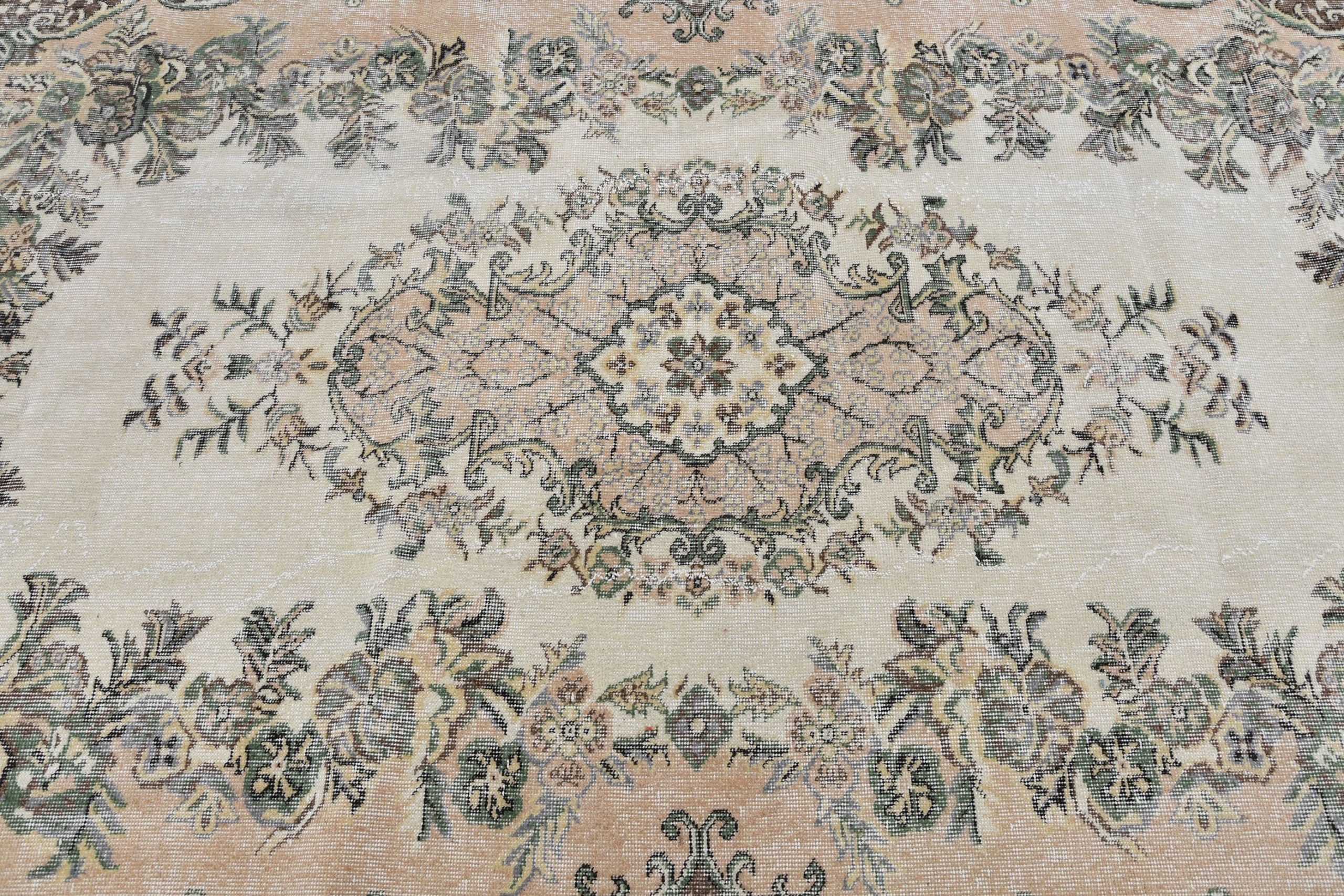 Pretty and one-of-a-kind 5.4 ft. x 8.9 ft. (165 cm x 272 cm) vintage Turkish rug hand-knotted in Turkey from organic wool. This is an authentic vintage Turkish rug from the 1980s that has worn splendidly to perfection.