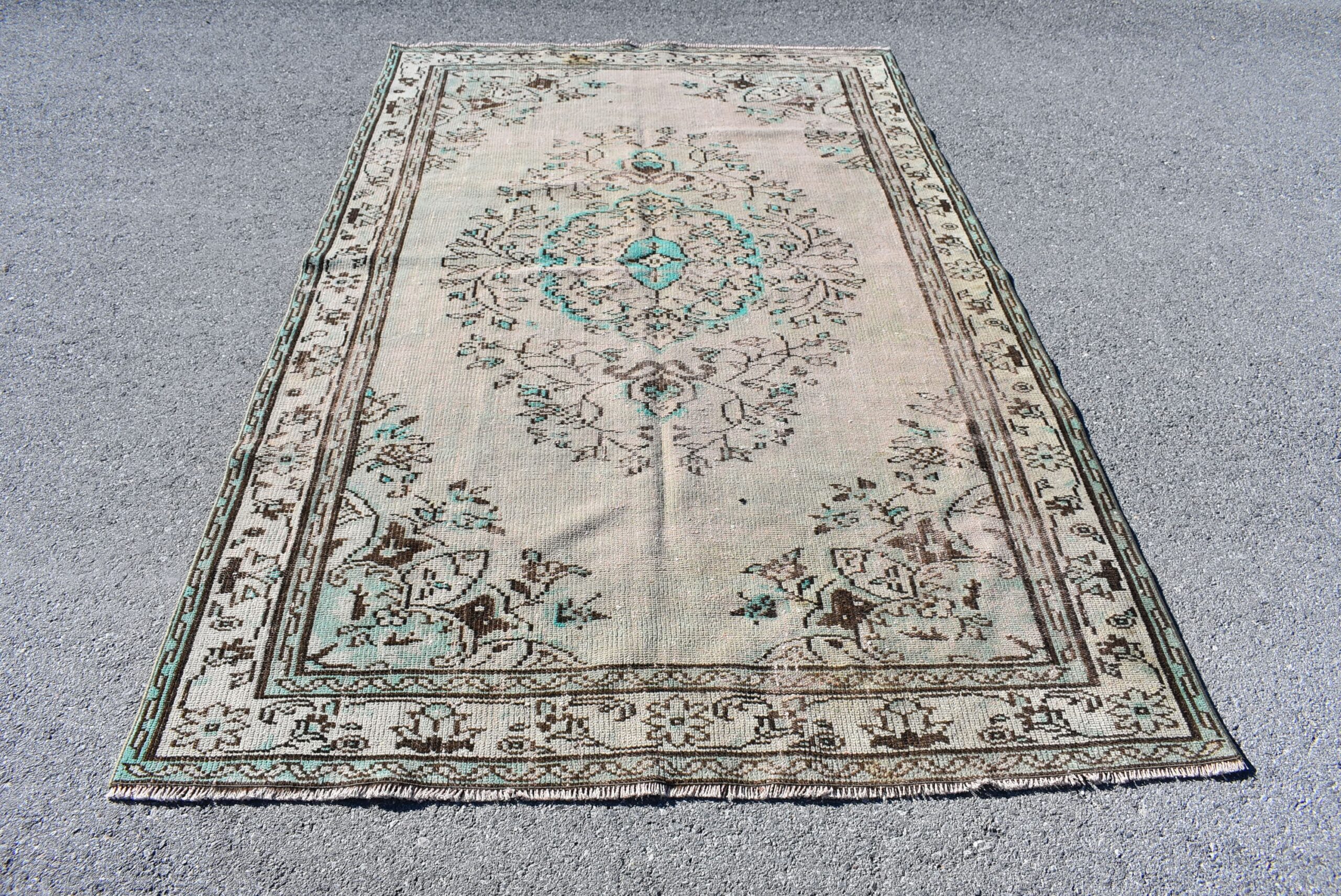 Lovely and unique 5.4 ft. x 9.1 ft. (165 cm x 276 cm) vintage Turkish rug hand-knotted in Turkey from organic wool. This is an authentic vintage Turkish rug from the 1980s that has worn beautifully to perfection.