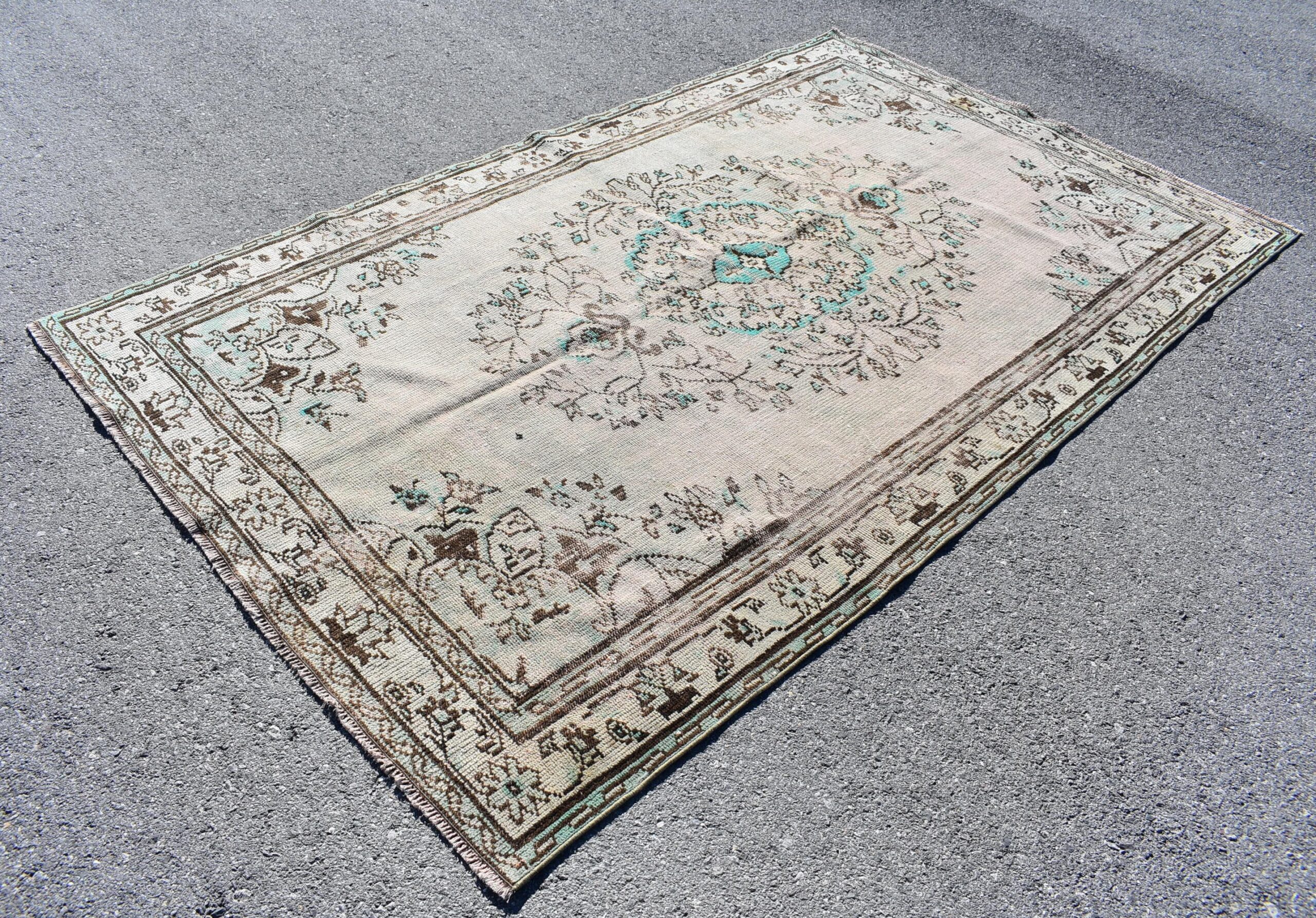 This is a vintage Turkish rug hand-knotted in a small village in Turkey by skilled Anatolian women during around the 1980s. It is made from natural wool (sheep) and dyed using all-natural (vegetable) dyes. Natural materials are more durable than synthetic materials guaranteeing a rug that can last for years while natural dyes provide colors that gets more beautiful as years pass by especially when in direct sunlight.