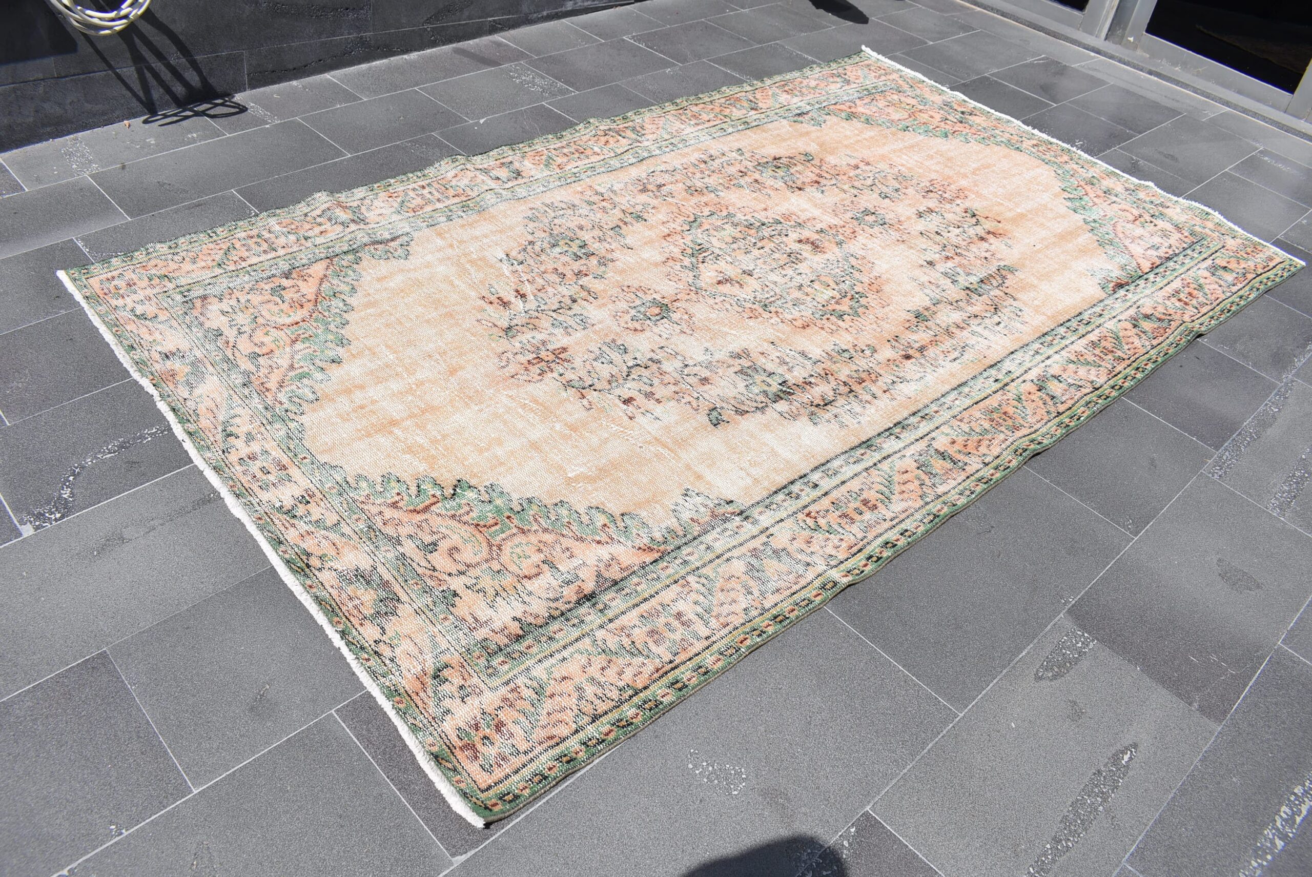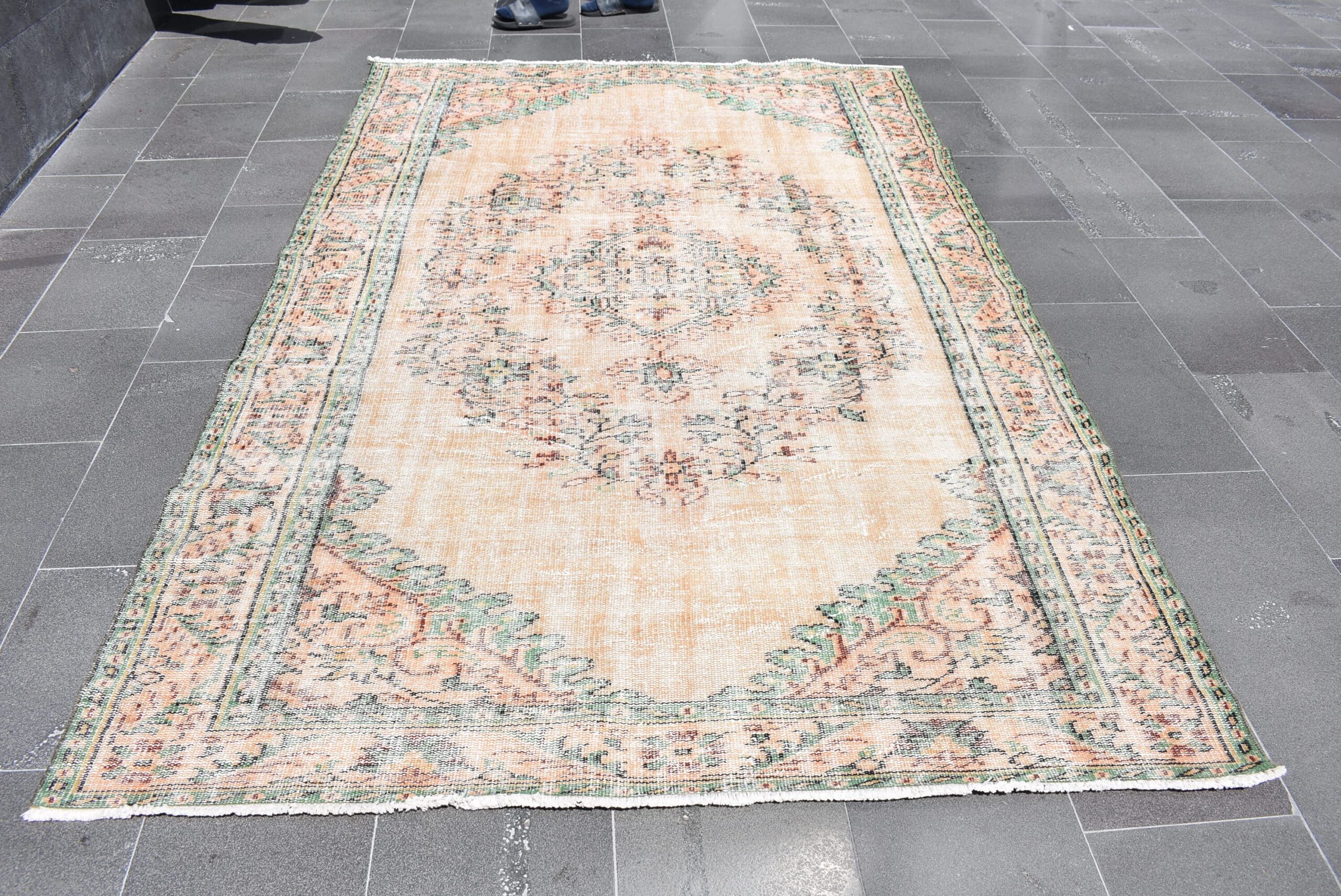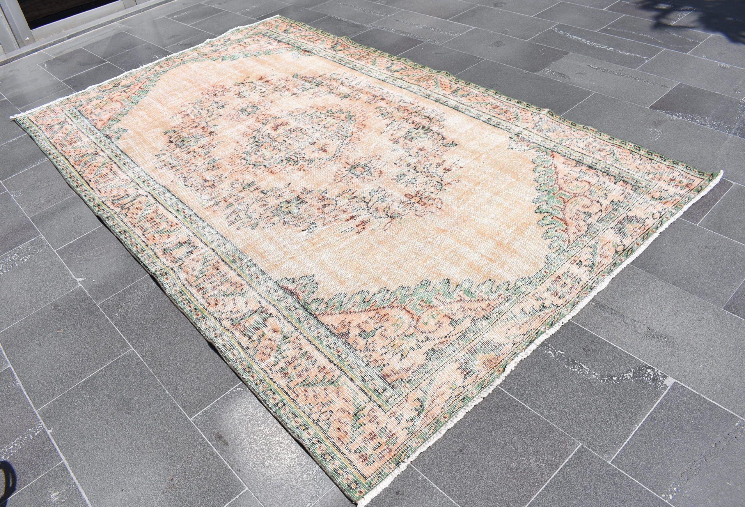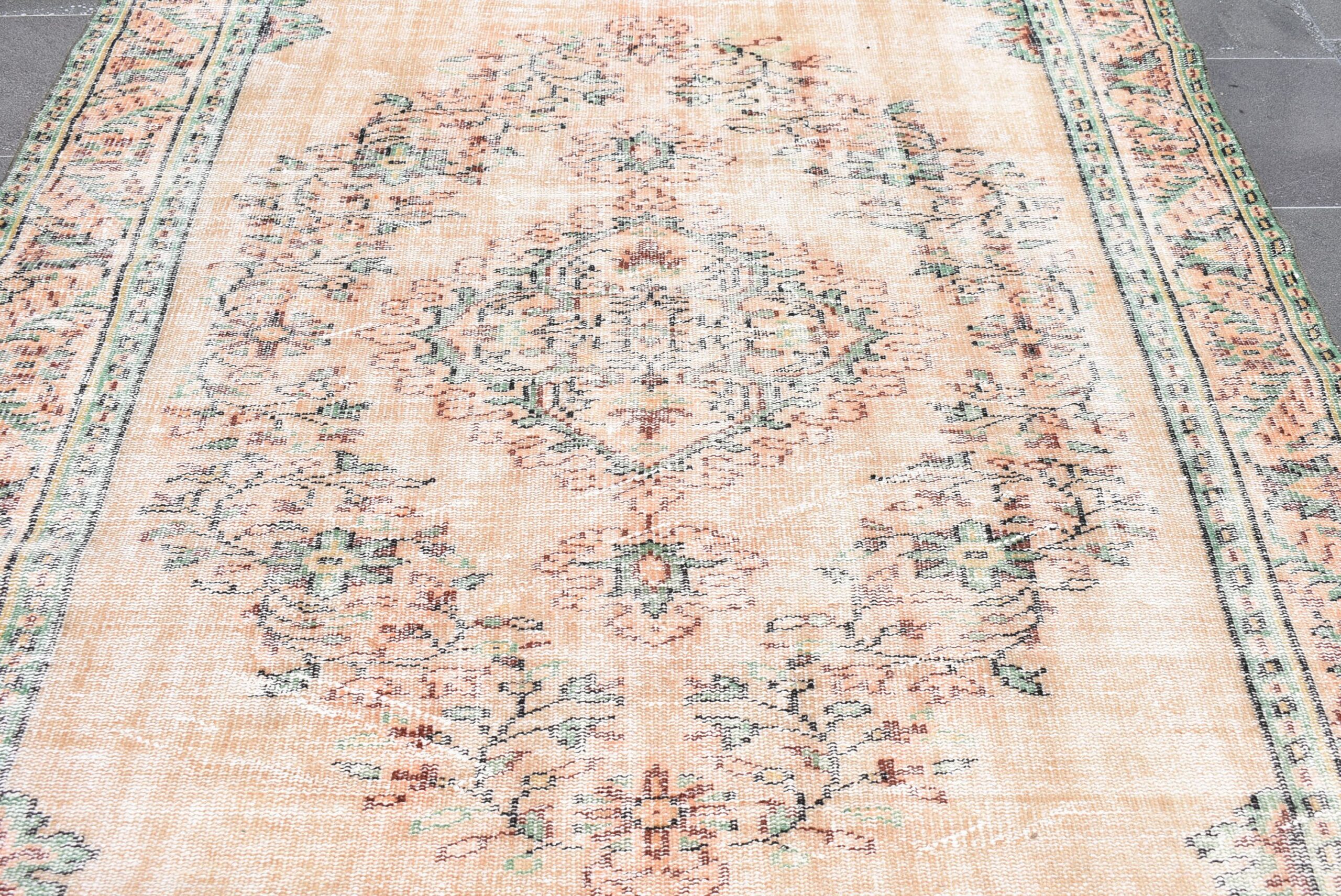 Beautiful and one-of-a-kind 5.4 ft. x 9.2 ft. (166 cm x 279 cm) vintage Turkish rug hand-knotted in Turkey from organic wool. This is an authentic vintage Turkish rug from the 1970s that has worn admirably to perfection.