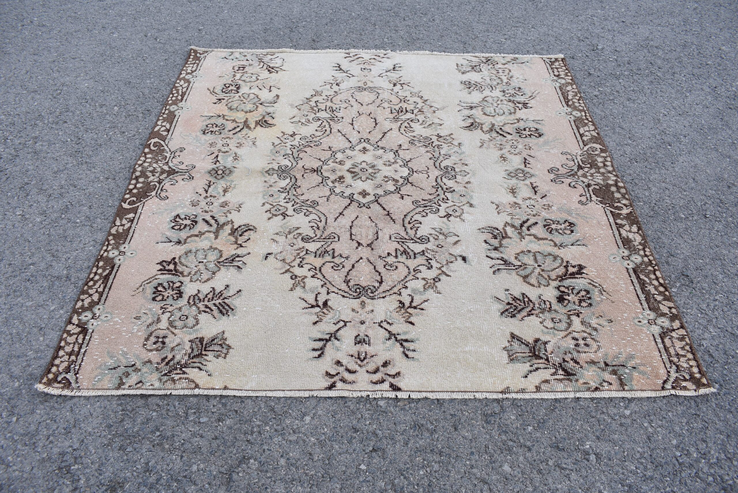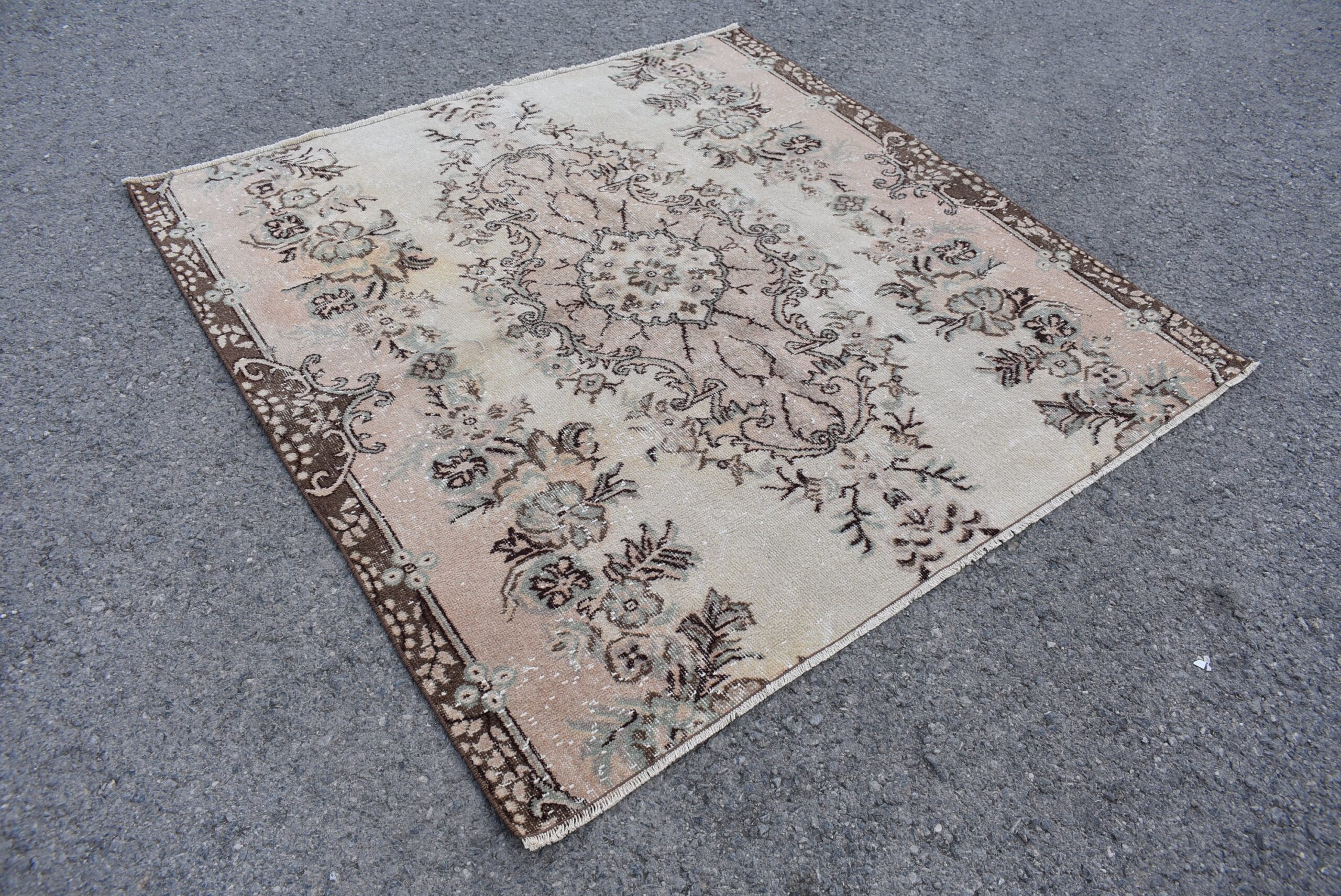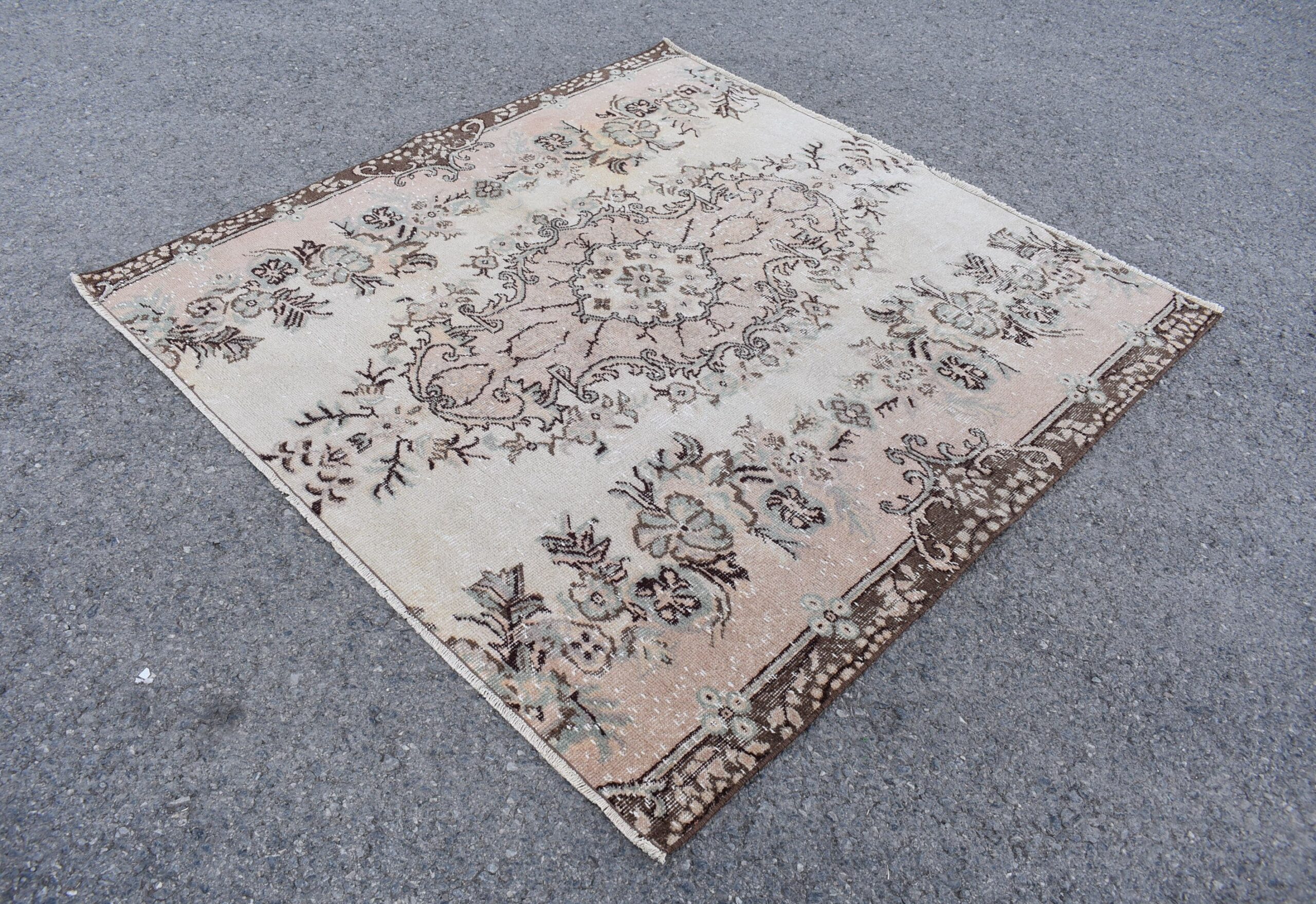 Lovely and unique 5.5 ft. x 5.6 ft. (169 cm x 171 cm) vintage Turkish rug hand-knotted in Turkey from organic wool. This is an authentic vintage Turkish rug from the 1980s that has worn beautifully to perfection.