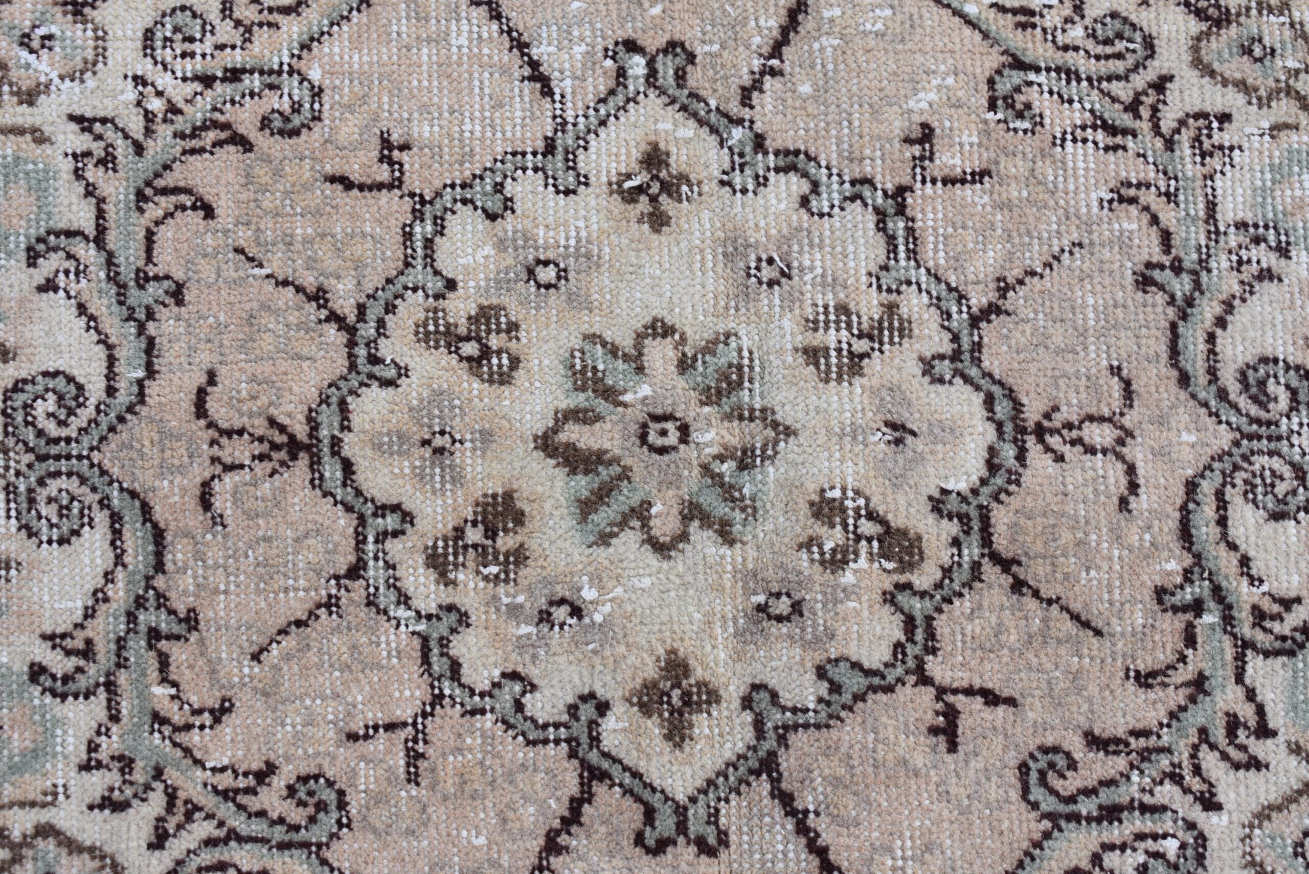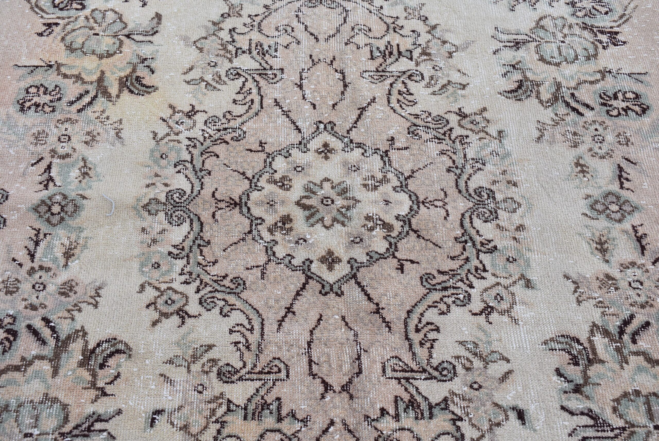 This is a vintage Turkish rug hand-knotted in a small village in Turkey by skilled Anatolian women during around the 1980s. It is made from natural wool (sheep) and dyed using all-natural (vegetable) dyes. Natural materials are more durable than synthetic materials guaranteeing a rug that can last for years while natural dyes provide colors that gets more beautiful as years pass by especially when in direct sunlight.