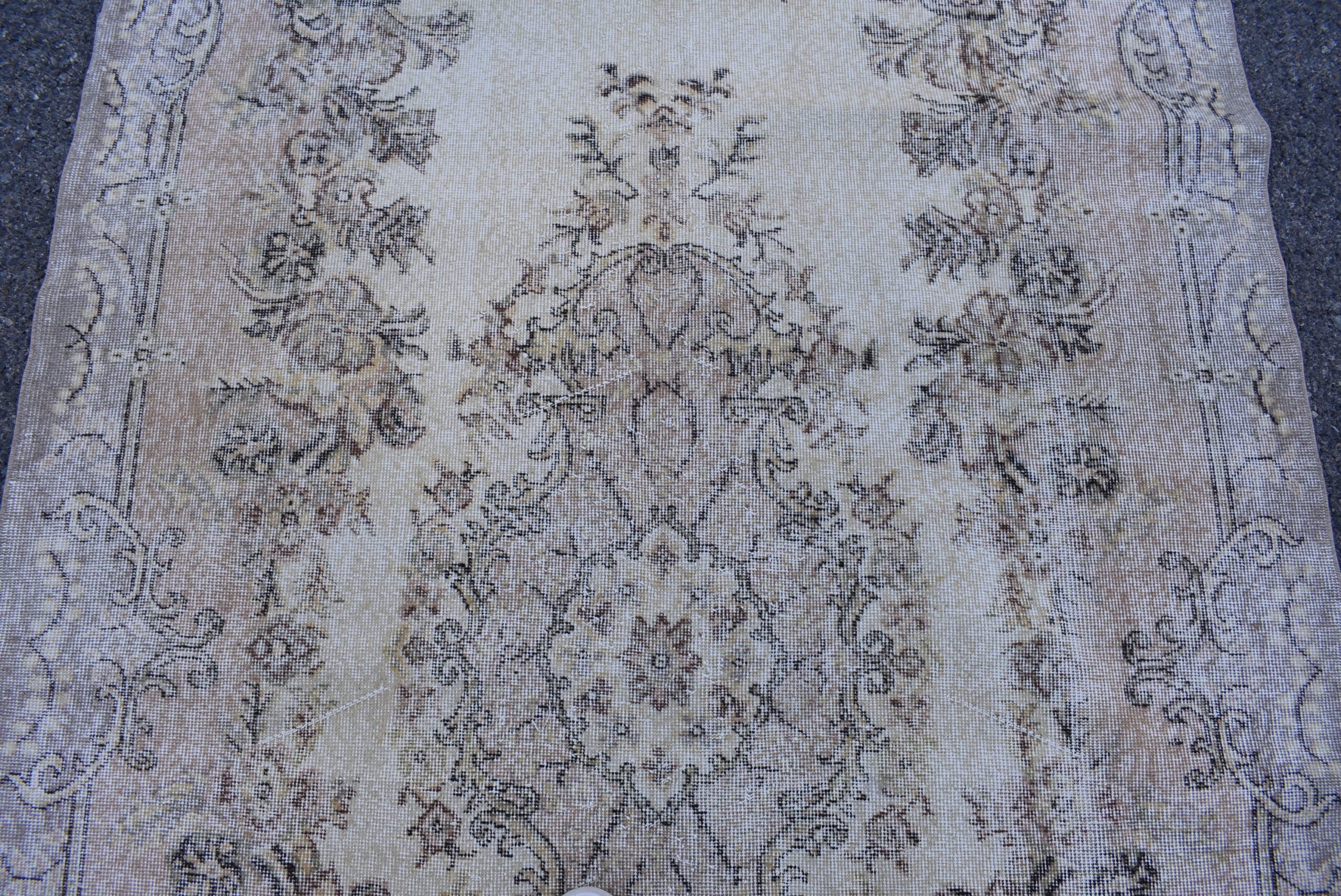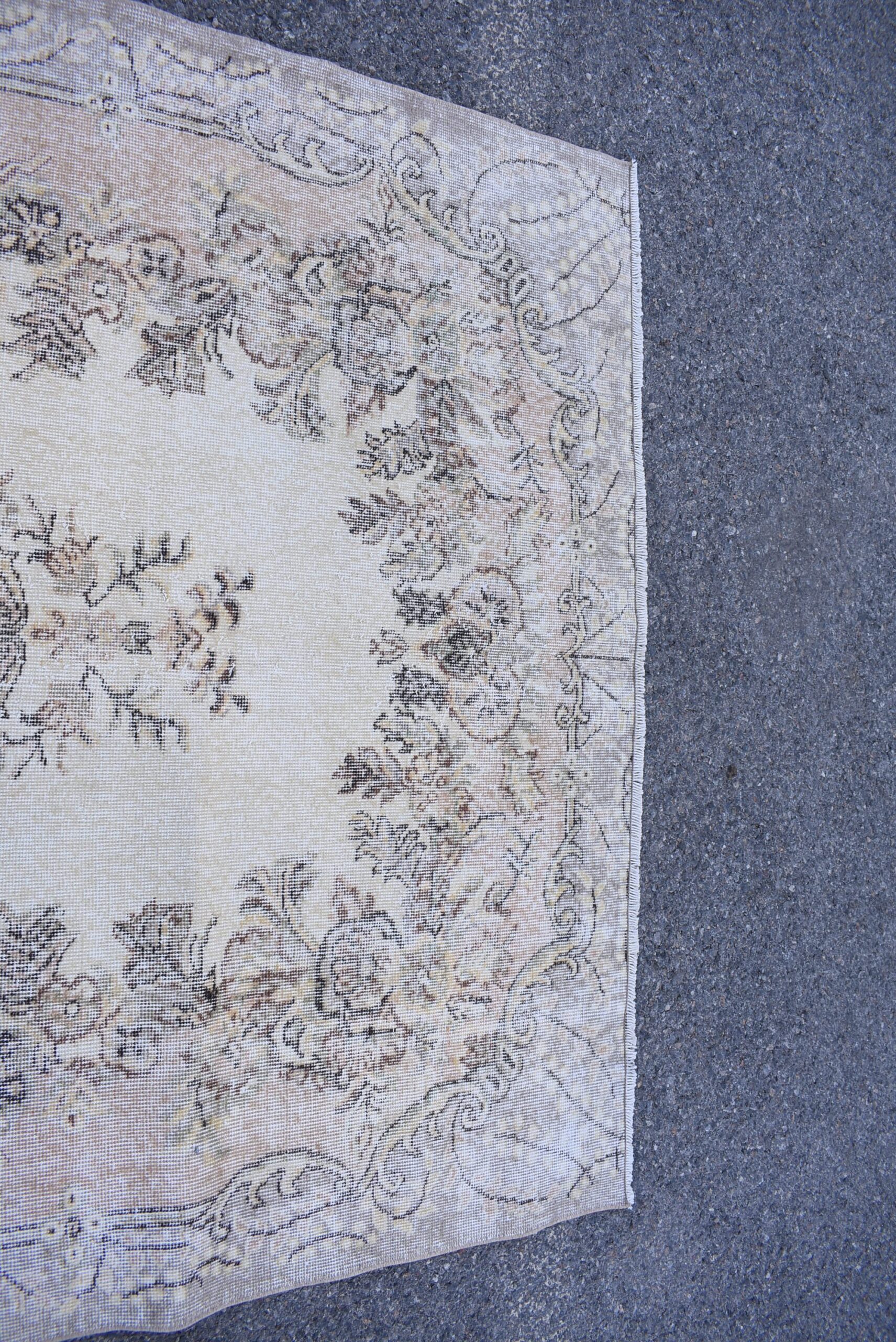 Beautiful and one-of-a-kind 5.5 ft. x 9.6 ft. (169 cm x 292 cm) vintage Turkish rug hand-knotted in Turkey from organic wool. This is an authentic vintage Turkish rug from the 1980s that has worn admirably to perfection.