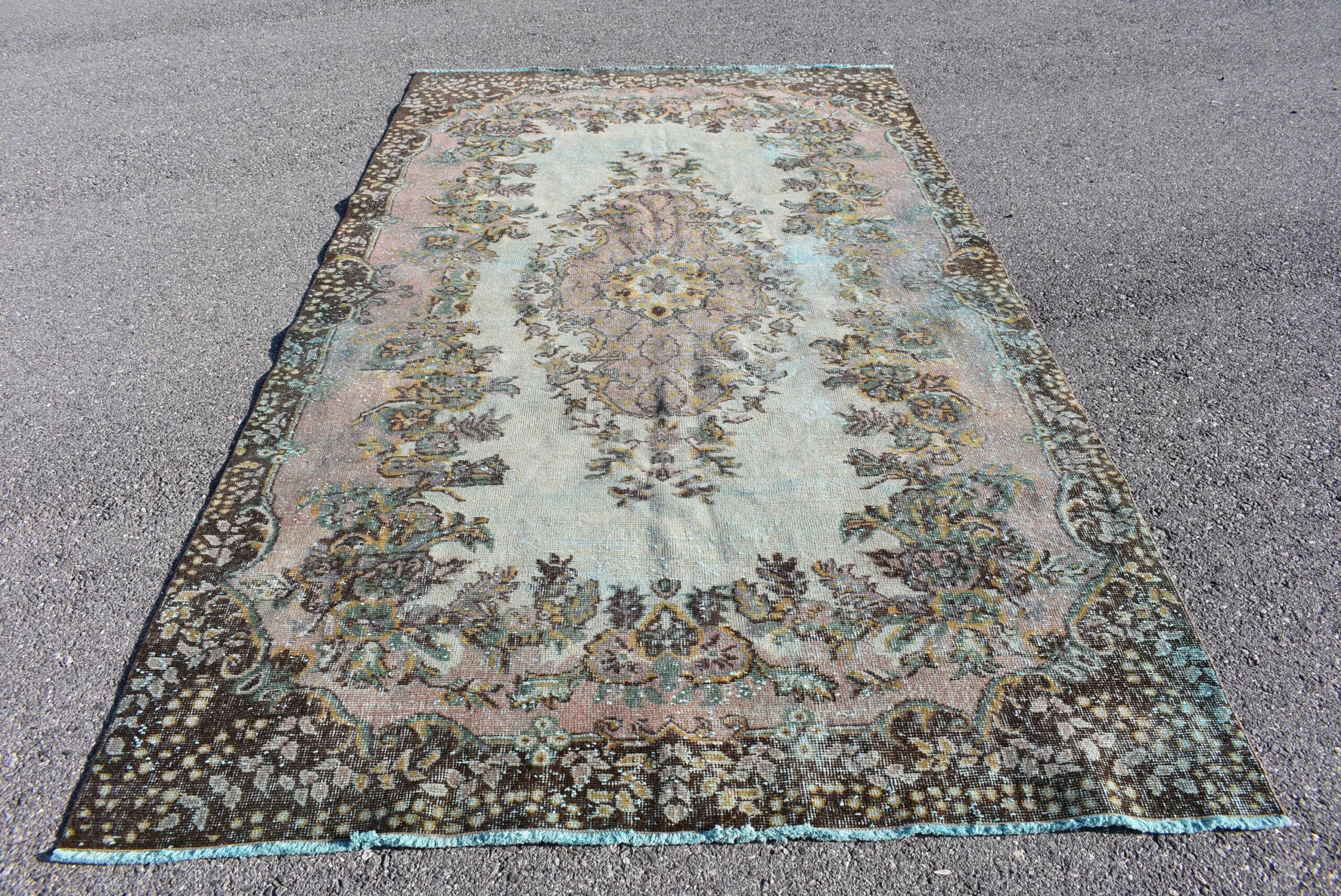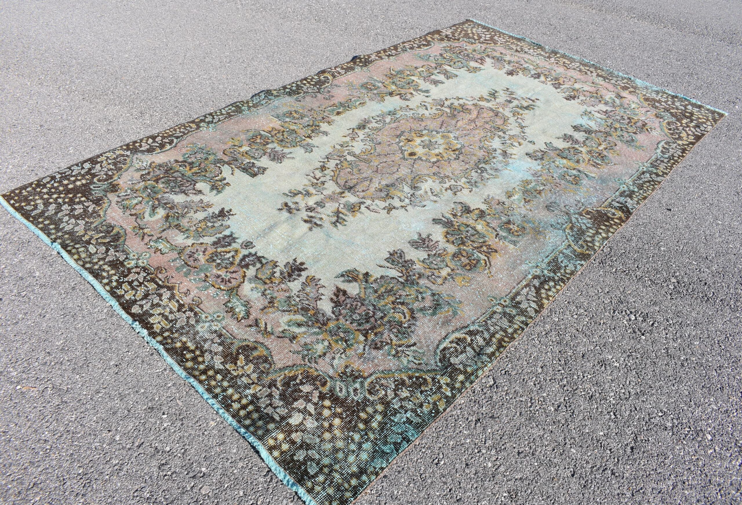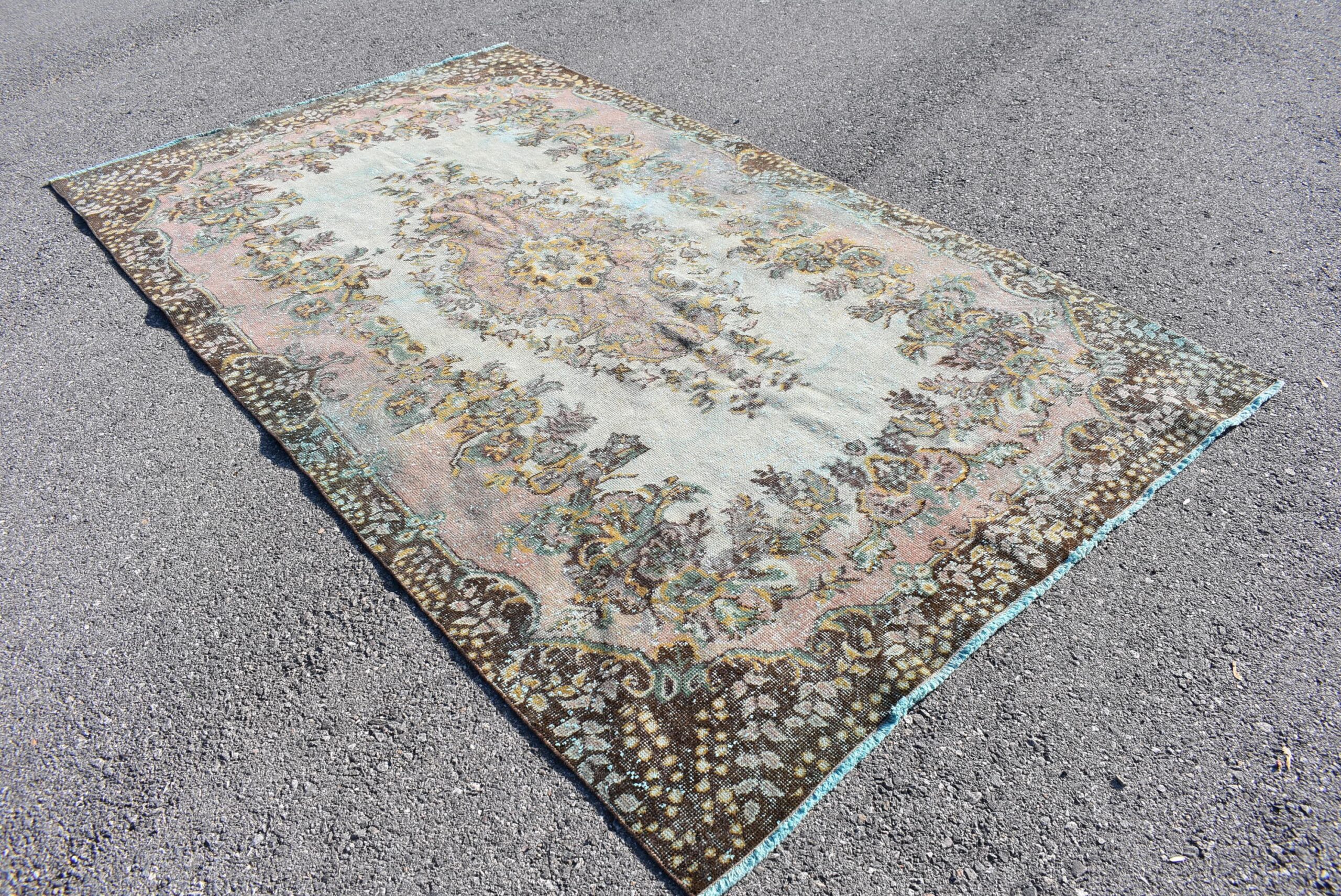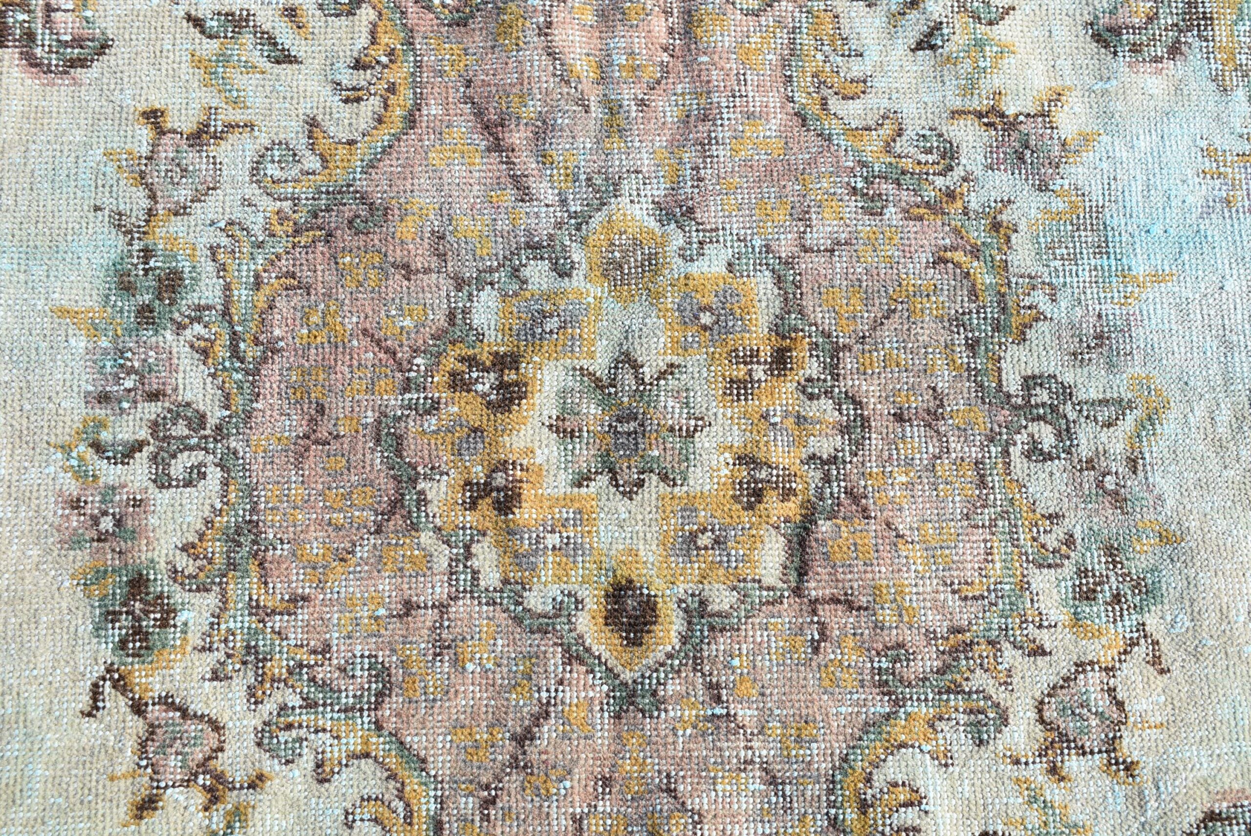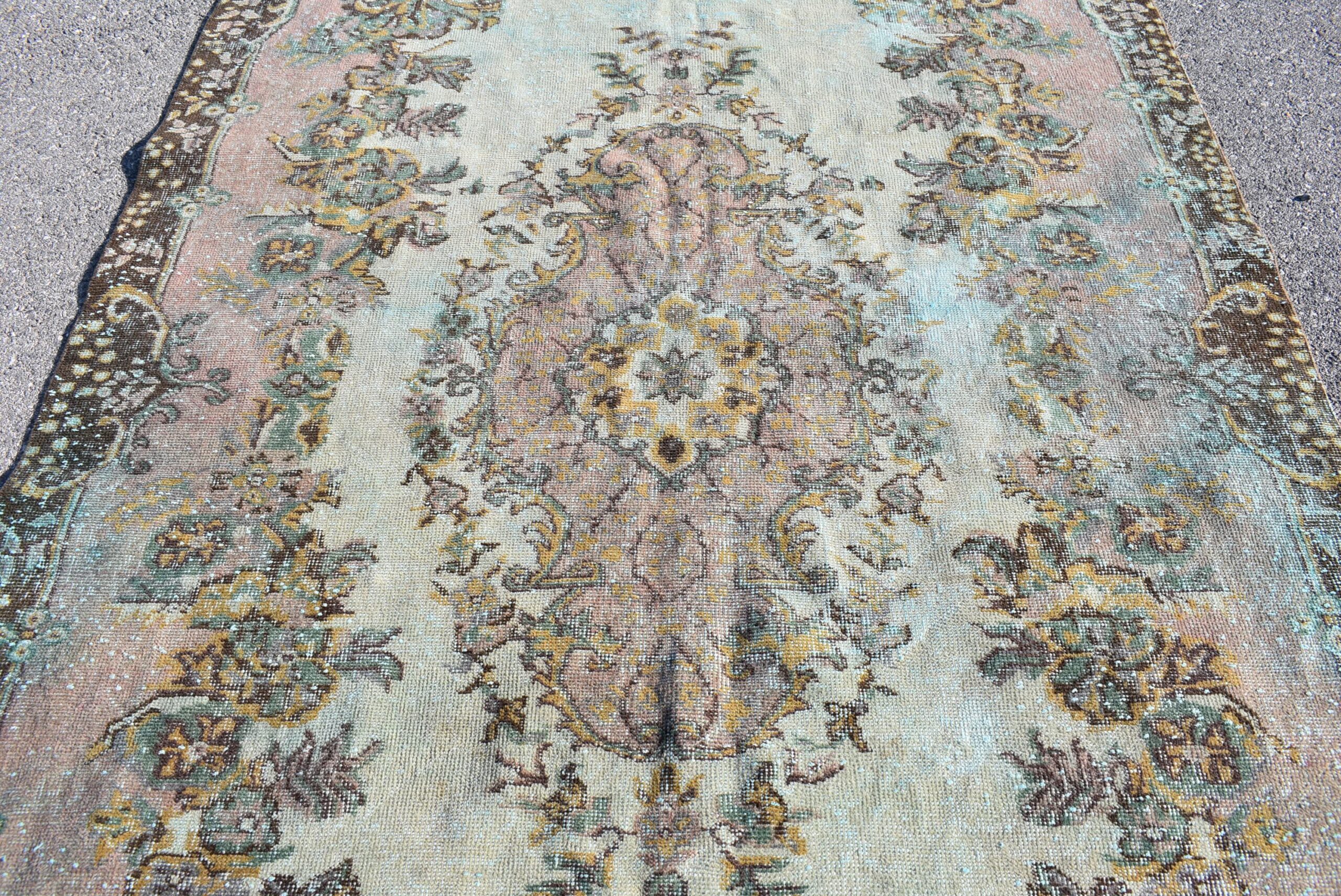 Lovely and unique 5.5 ft. x 9.7 ft. (169 cm x 295 cm) vintage Turkish rug hand-knotted in Turkey from organic wool. This is an authentic vintage Turkish rug from the 1990s that has worn beautifully to perfection.