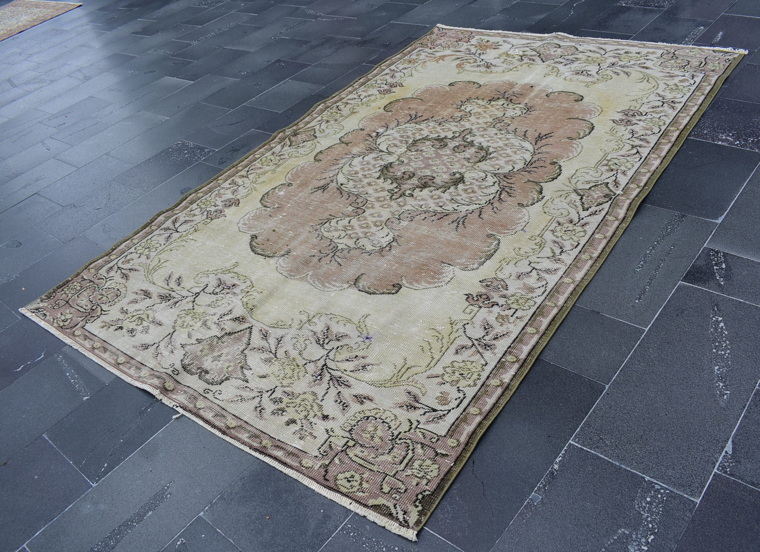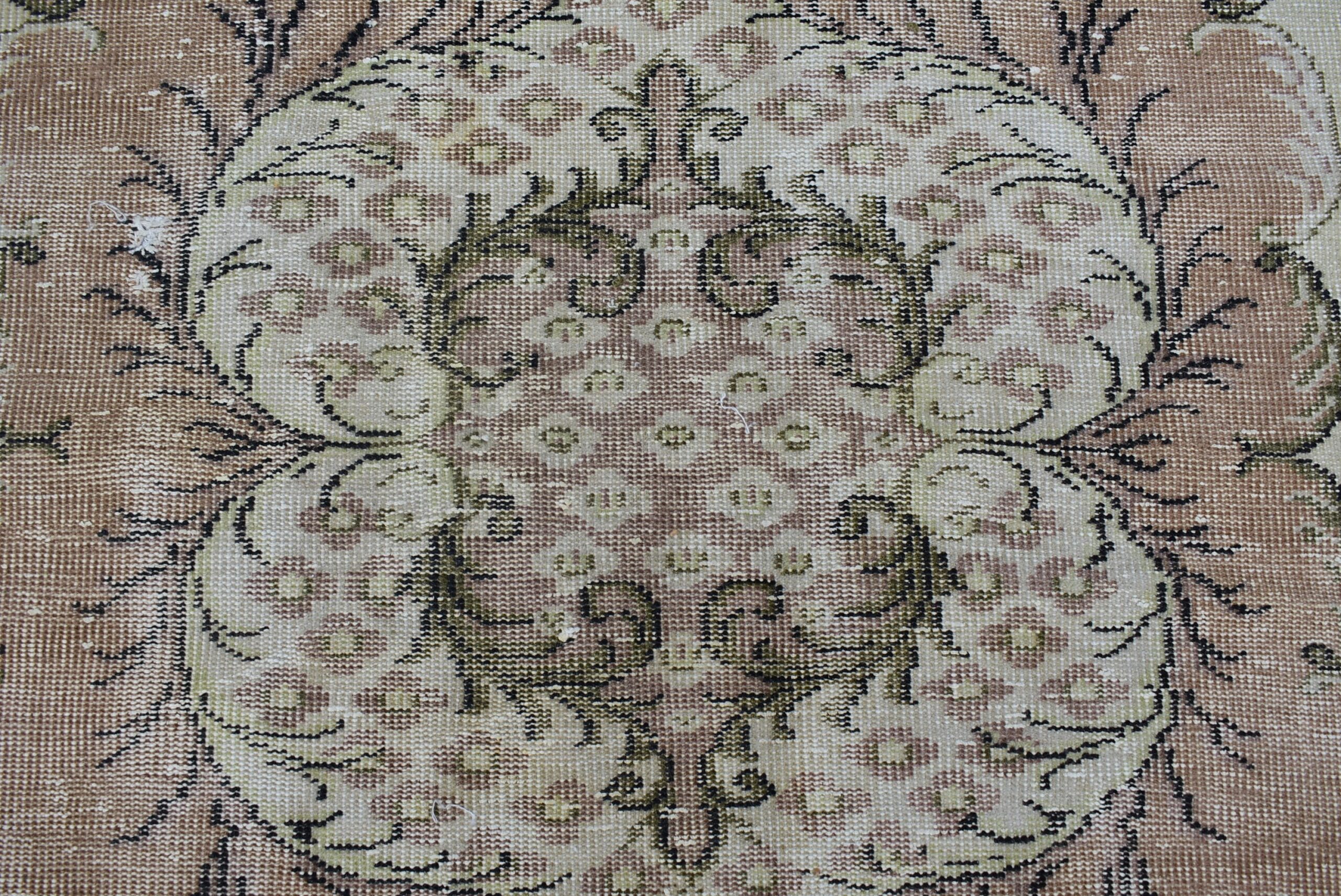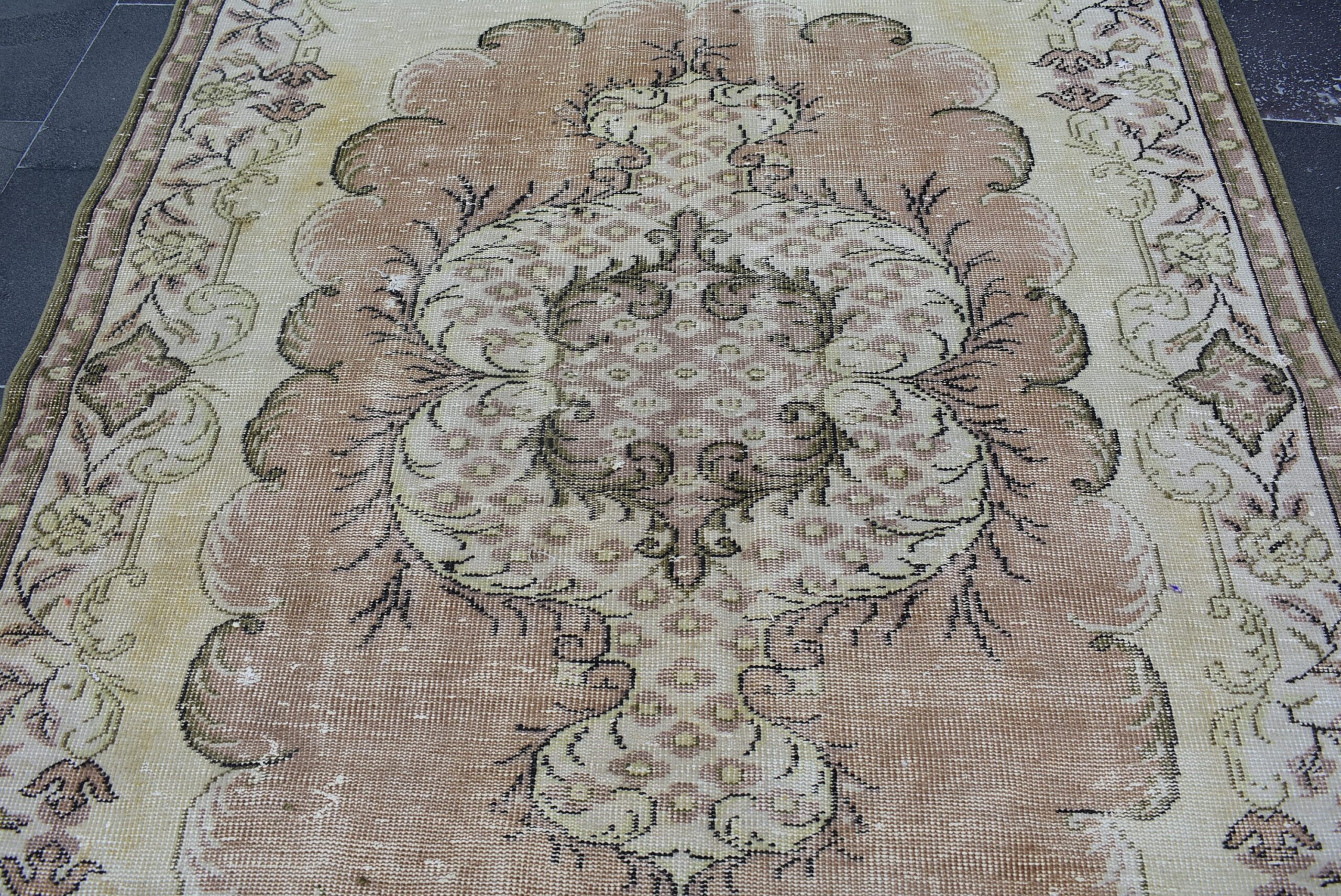 Lovely and unique 5.6 ft. x 8.9 ft. (170 cm x 270 cm) vintage Turkish rug hand-knotted in Turkey from organic wool. This is an authentic vintage Turkish rug from the 1980s that has worn beautifully to perfection.