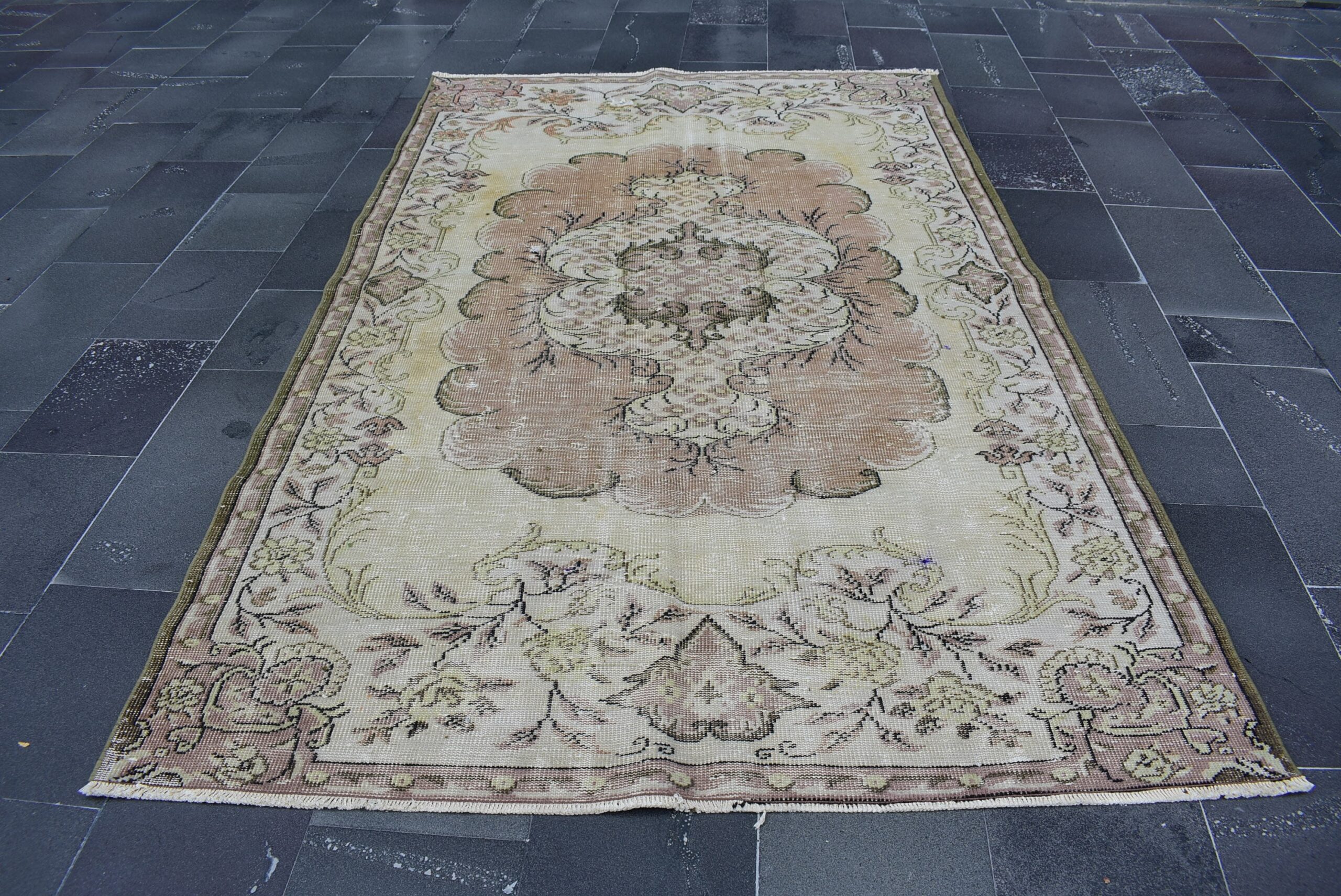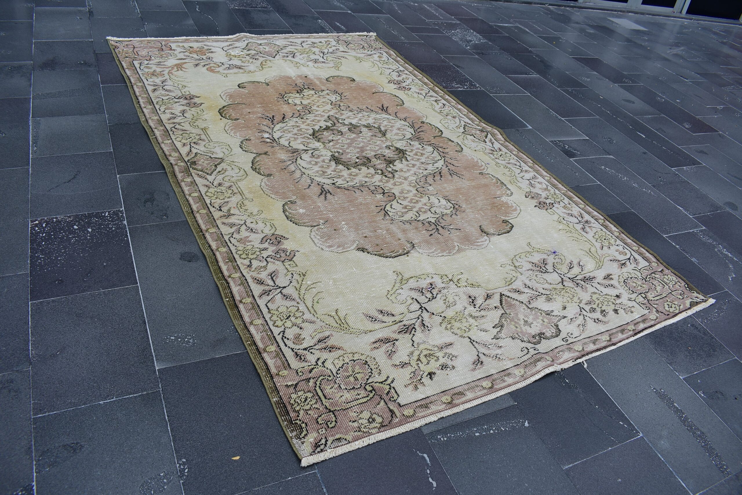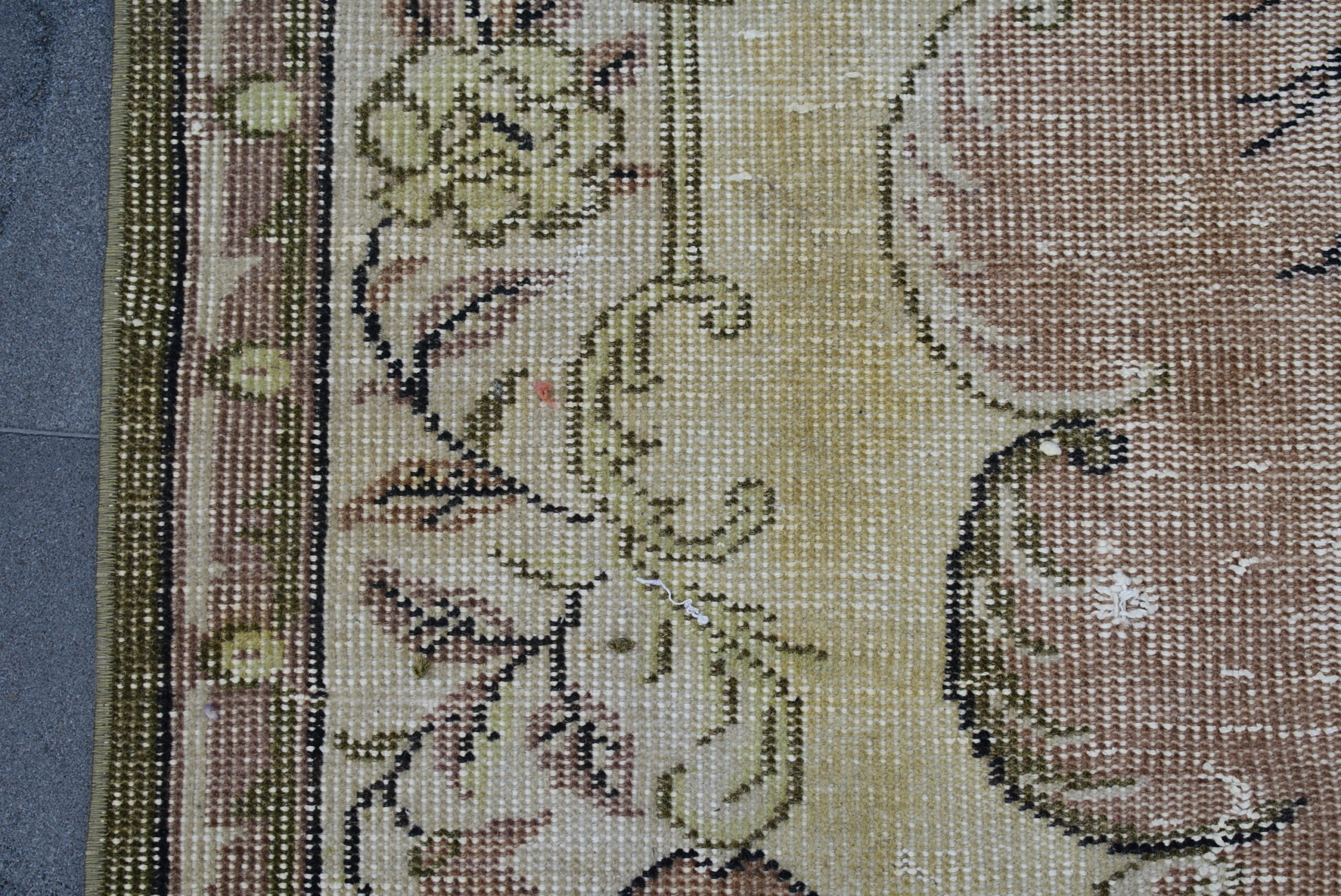 Lovely and unique 5.6 ft. x 8.9 ft. (170 cm x 270 cm) vintage Turkish rug hand-knotted in Turkey from organic wool. This is an authentic vintage Turkish rug from the 1980s that has worn beautifully to perfection.
