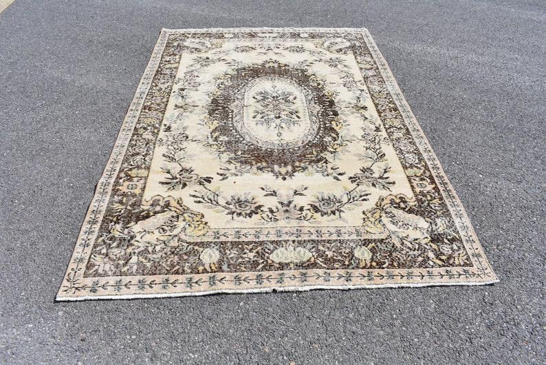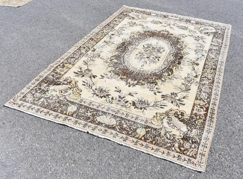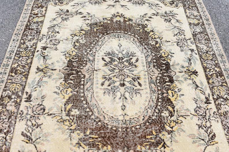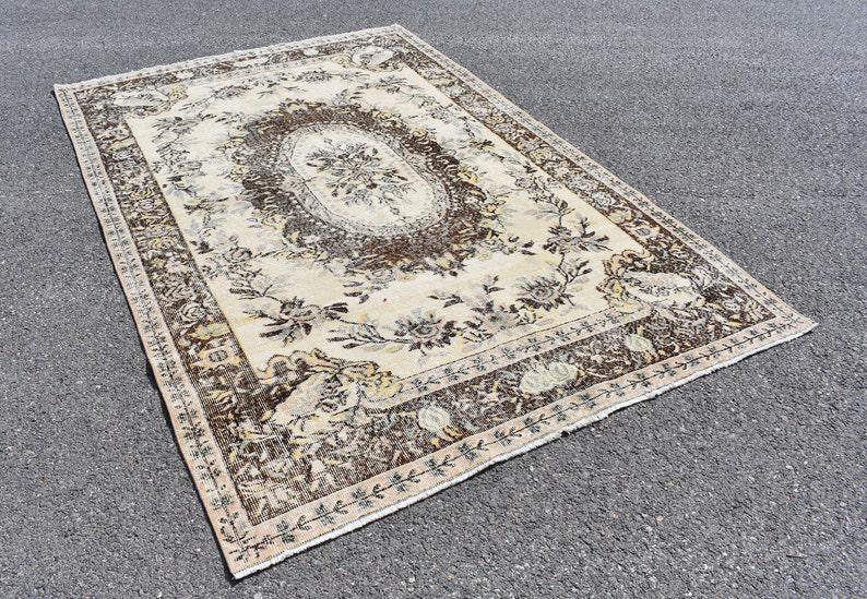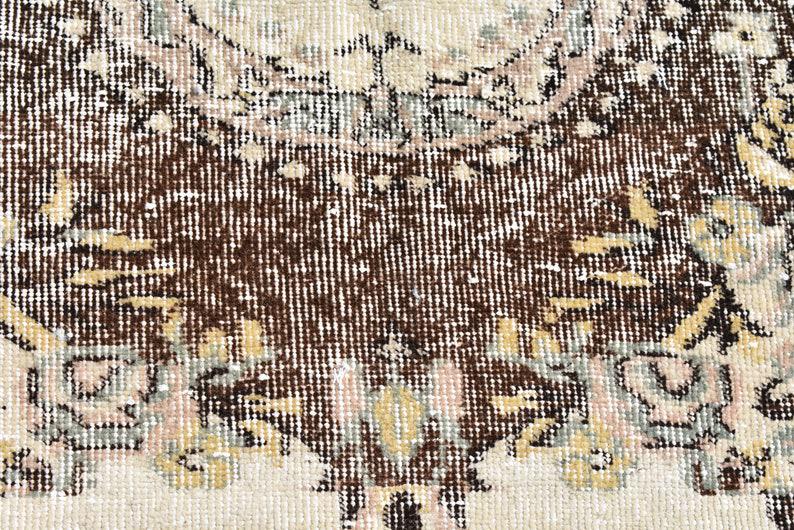 Lovely and unique 5.6 ft. x 8.9 ft. (172 cm x 272 cm) vintage Turkish rug hand-knotted in Turkey from organic wool. This is an authentic vintage Turkish rug from the 1980s that has worn beautifully to perfection.