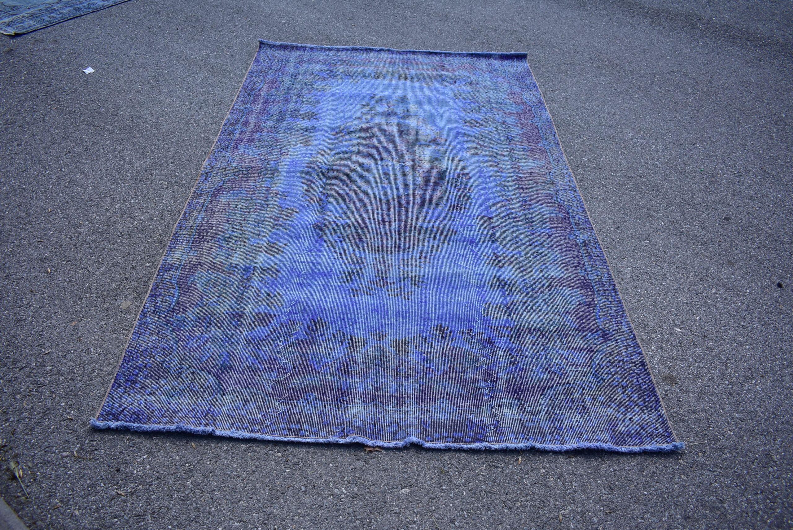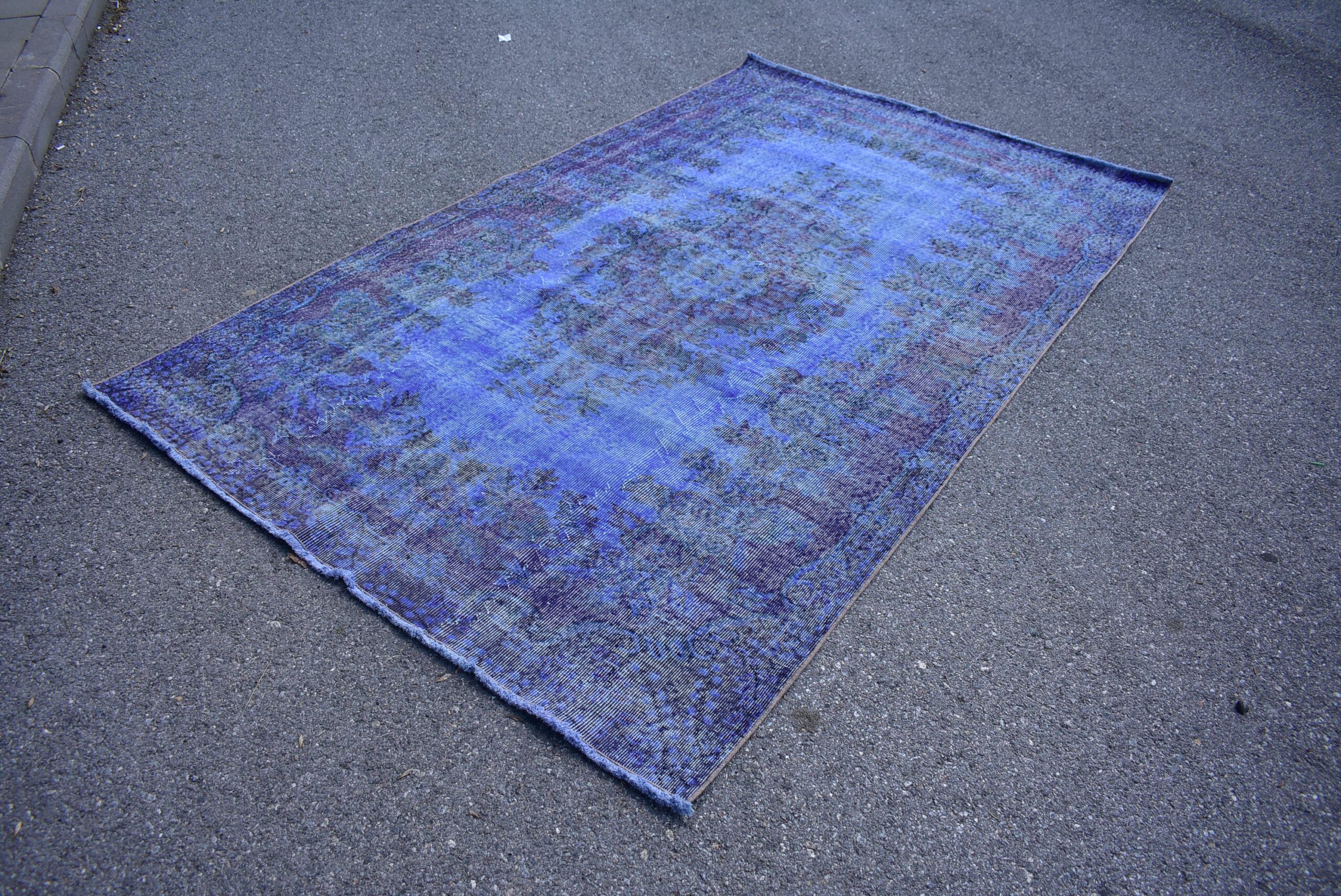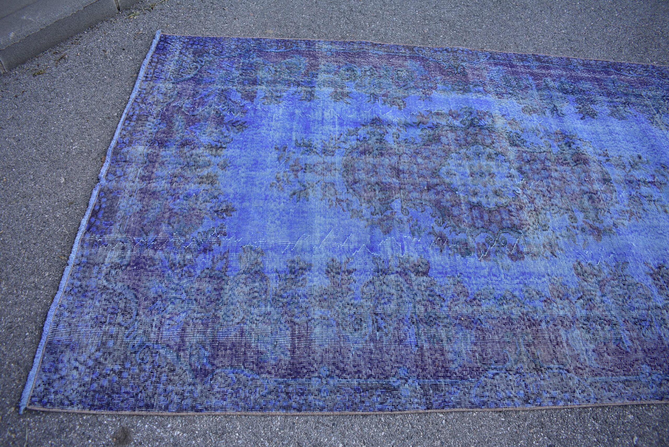This is a vintage overdyed rug made through over-dyeing an authentic vintage Turkish rug using natural (vegetable) dyes. This rug originated in a small village in Turkey where it was hand-knotted from natural wool (sheep) by skilled Anatolian women during around the 1980s. Natural materials are more durable than synthetic materials guaranteeing a rug that can last for years while natural dyes provide colors that gets more beautiful as years pass by especially when in direct sunlight.