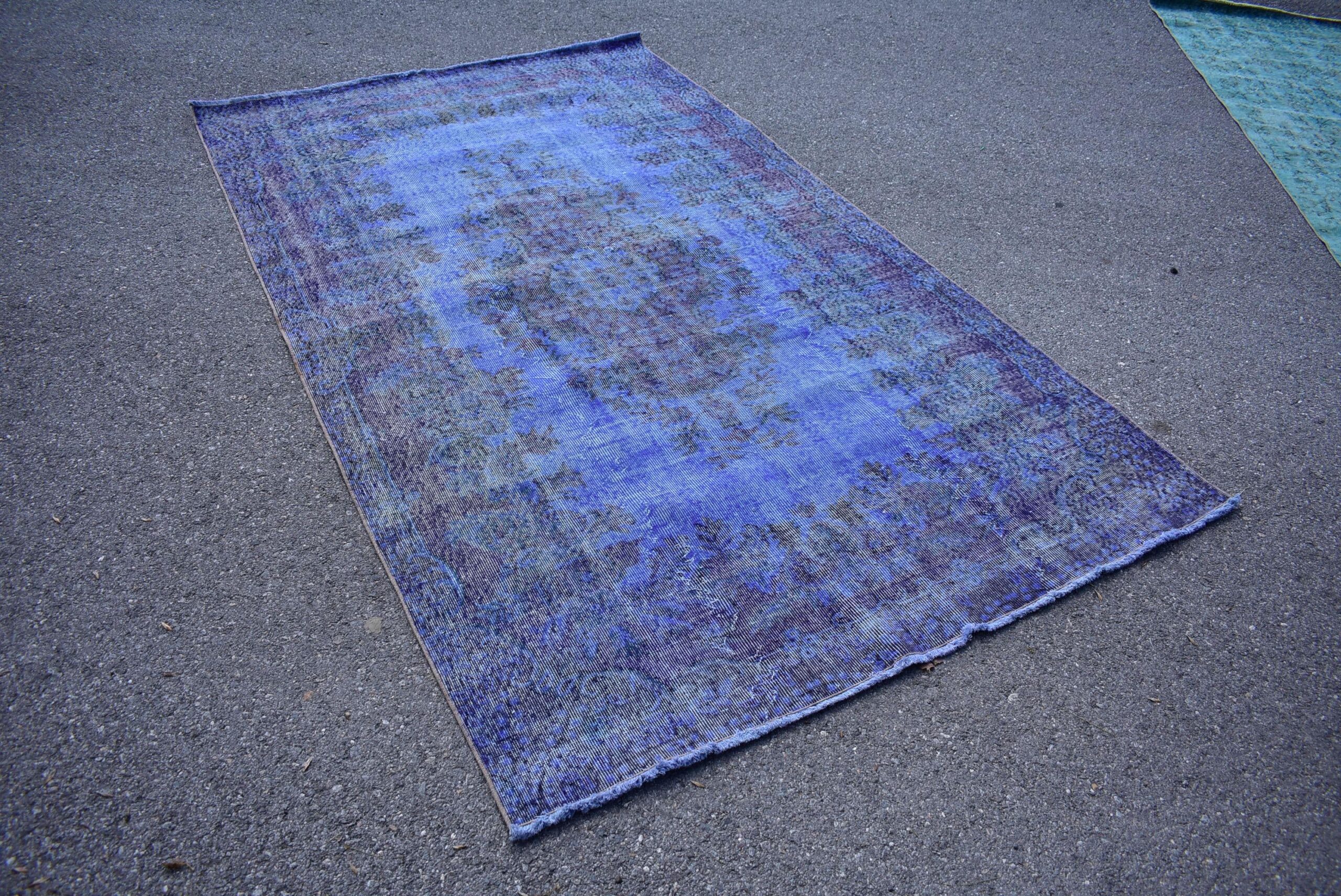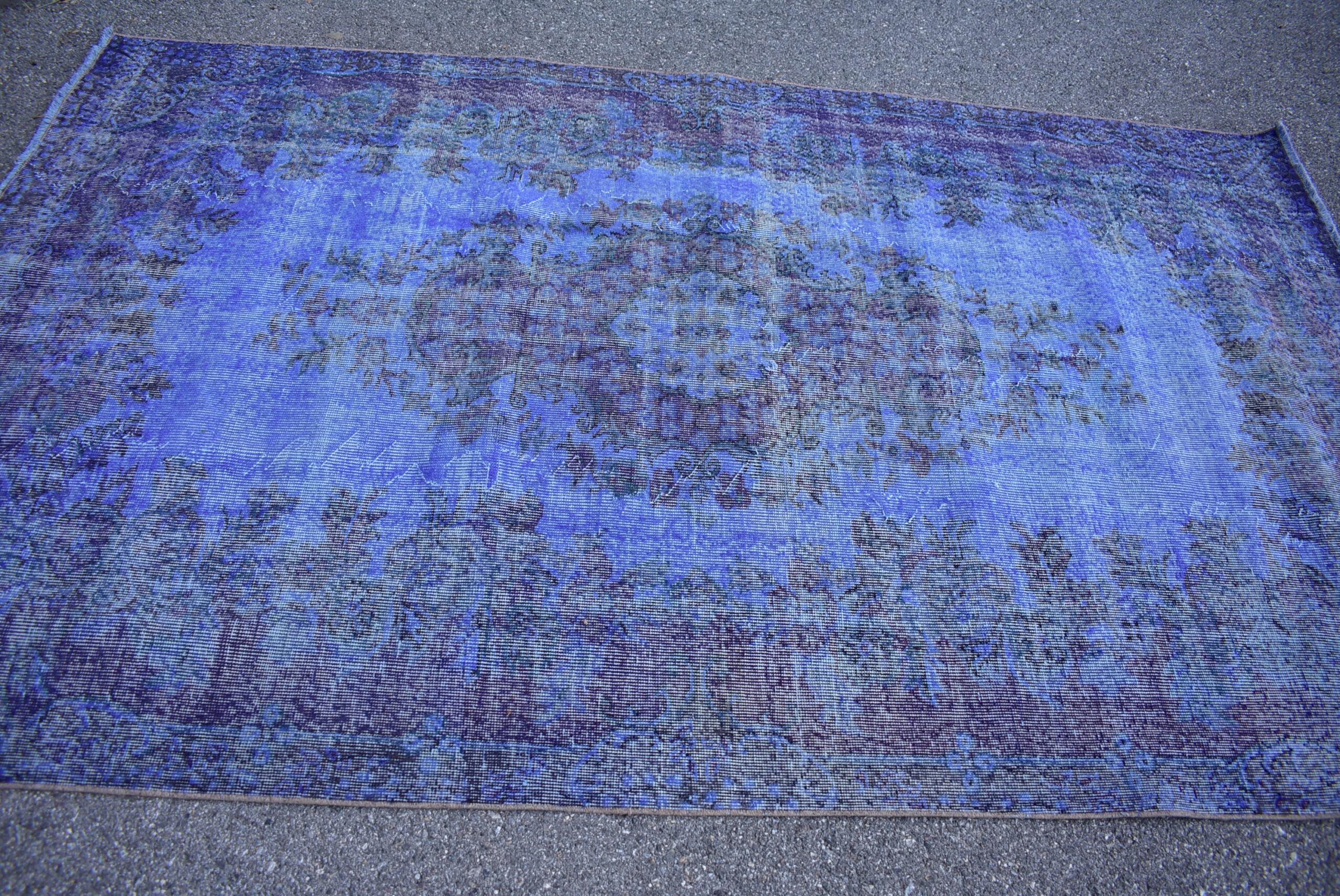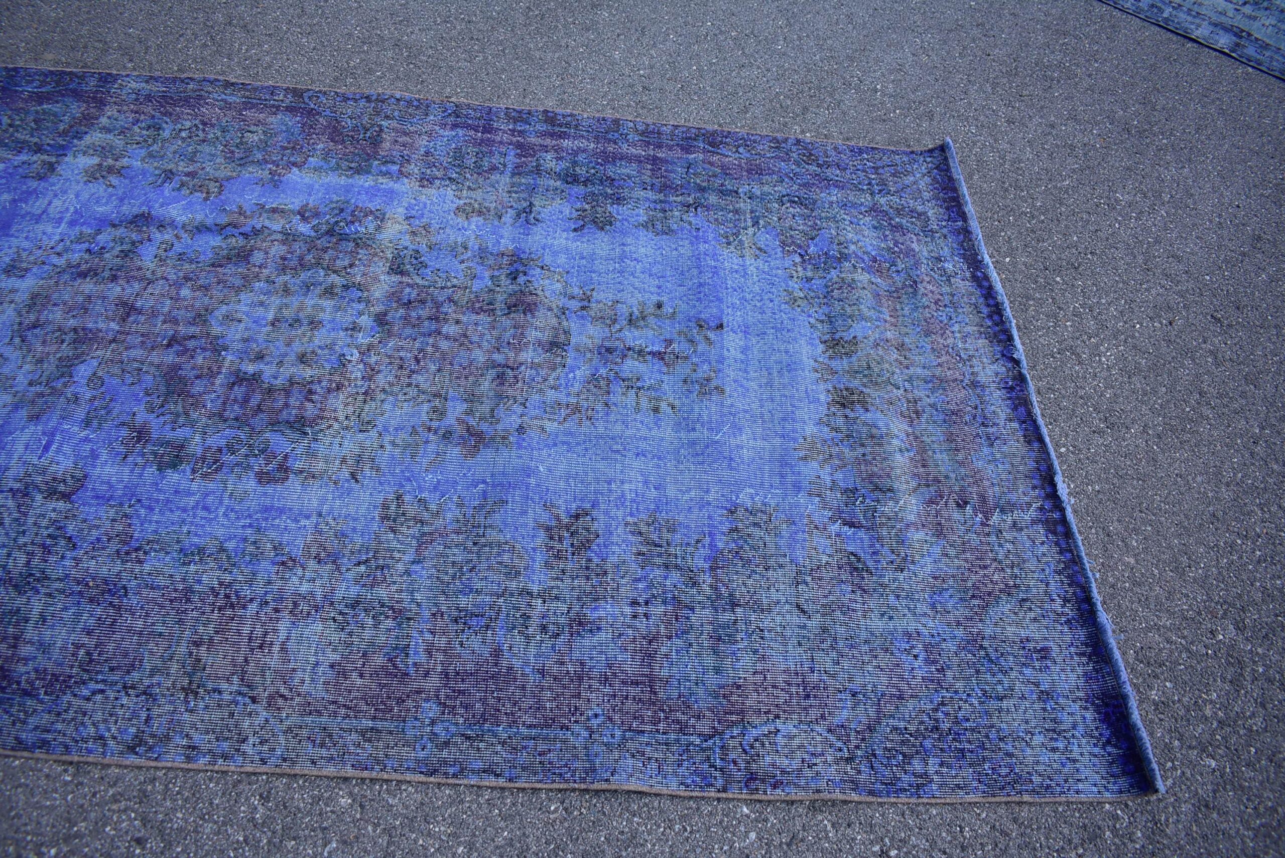This is a vintage overdyed rug made through over-dyeing an authentic vintage Turkish rug using natural (vegetable) dyes. This rug originated in a small village in Turkey where it was hand-knotted from natural wool (sheep) by skilled Anatolian women during around the 1980s. Natural materials are more durable than synthetic materials guaranteeing a rug that can last for years while natural dyes provide colors that gets more beautiful as years pass by especially when in direct sunlight.