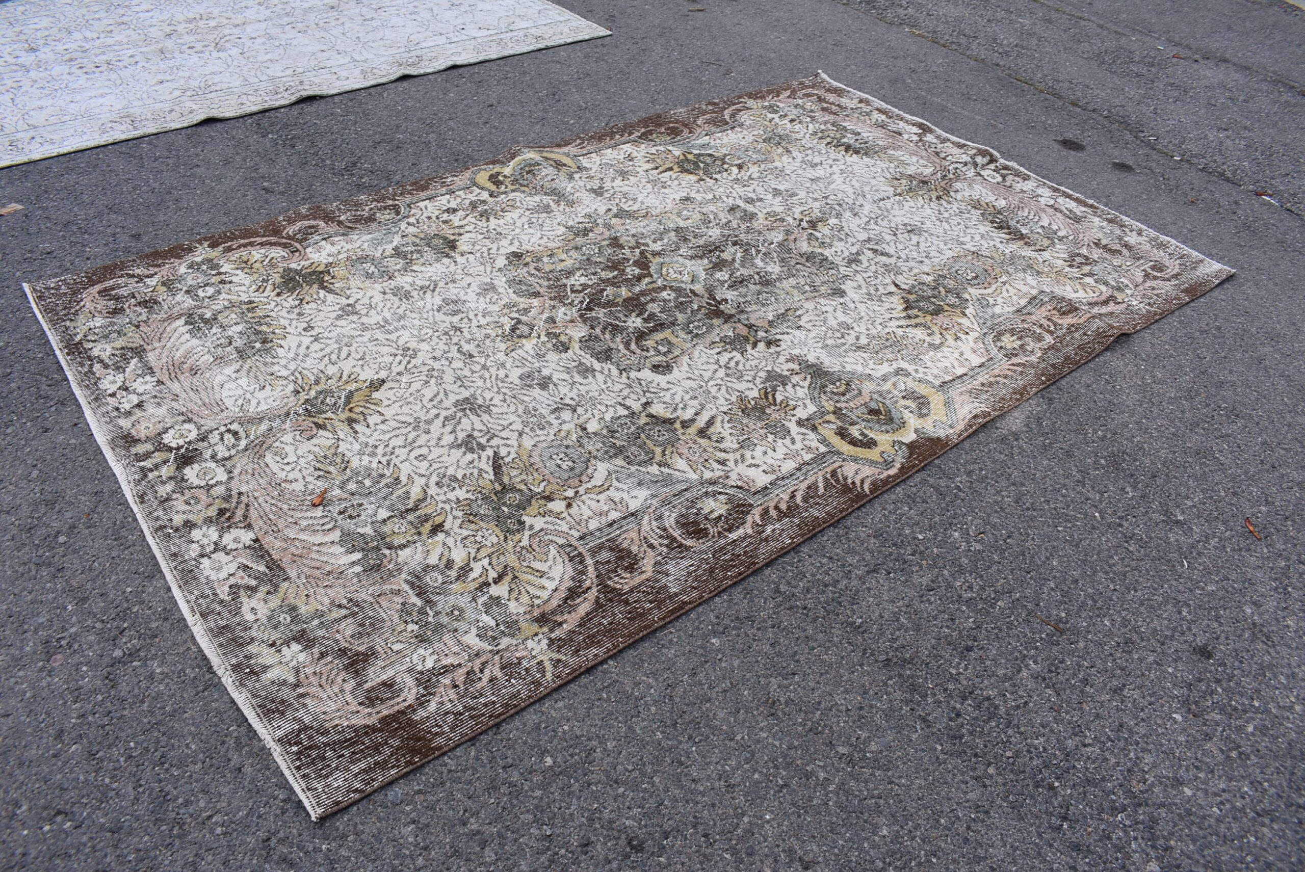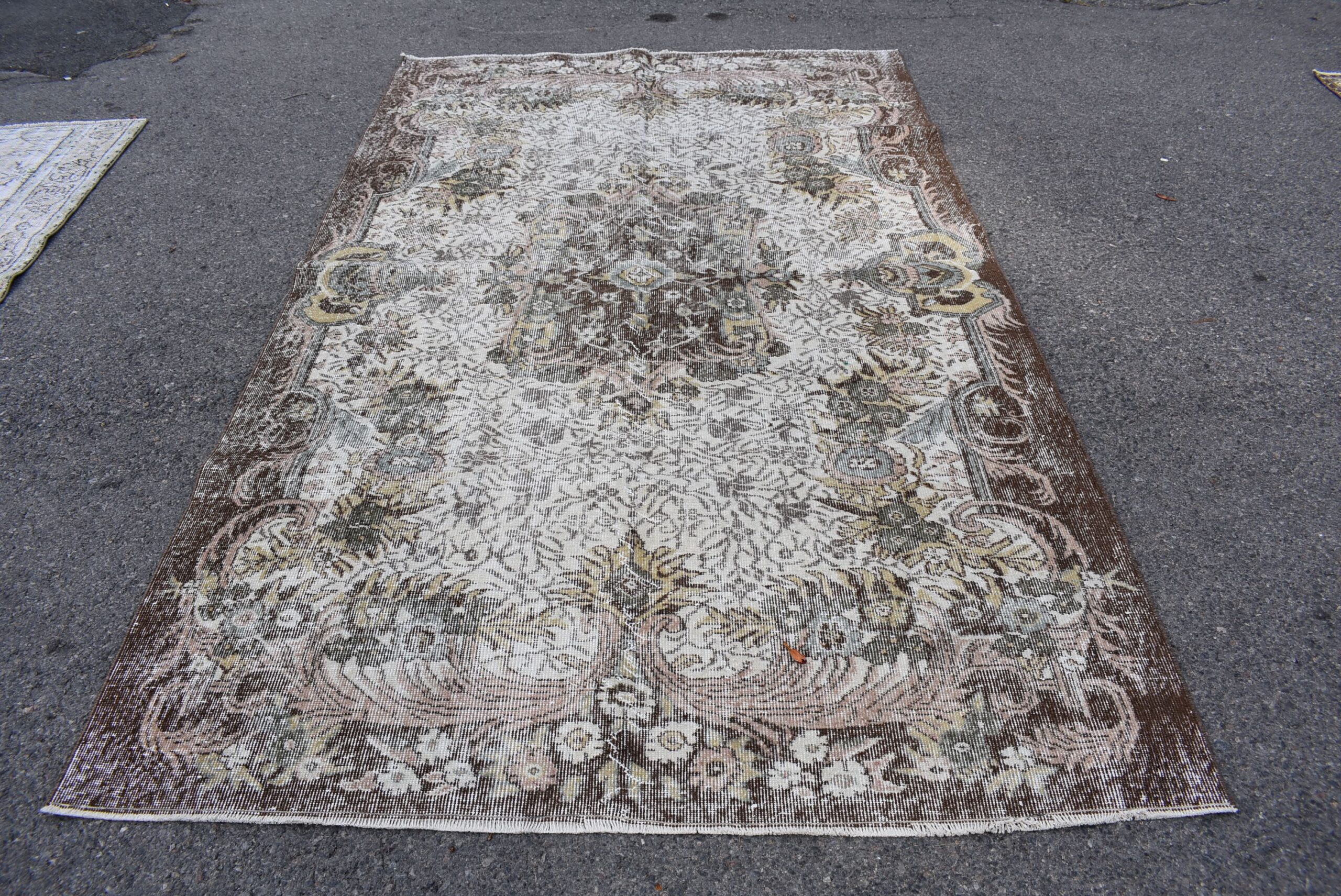 Beautiful and one-of-a-kind 5.6 ft. x 9.3 ft. (170 cm x 283 cm) vintage Turkish rug hand-knotted in Turkey from organic wool. This is an authentic vintage Turkish rug from the 1990s that has worn admirably to perfection.