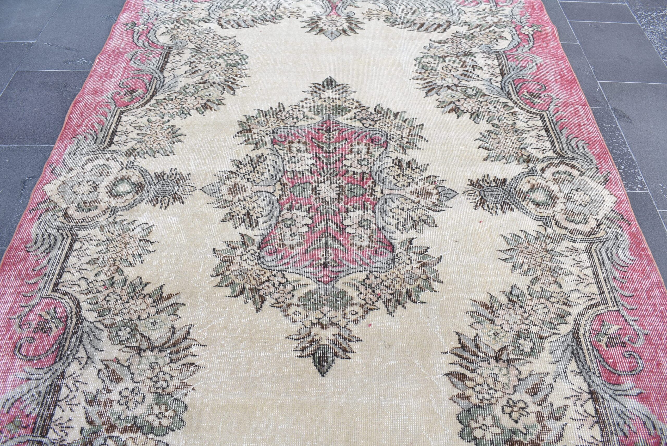 Lovely and unique 5.7 ft. x 8.4 ft. (174 cm x 257 cm) vintage Turkish rug hand-knotted in Turkey from organic wool. This is an authentic vintage Turkish rug from the 1990s that has worn beautifully to perfection.