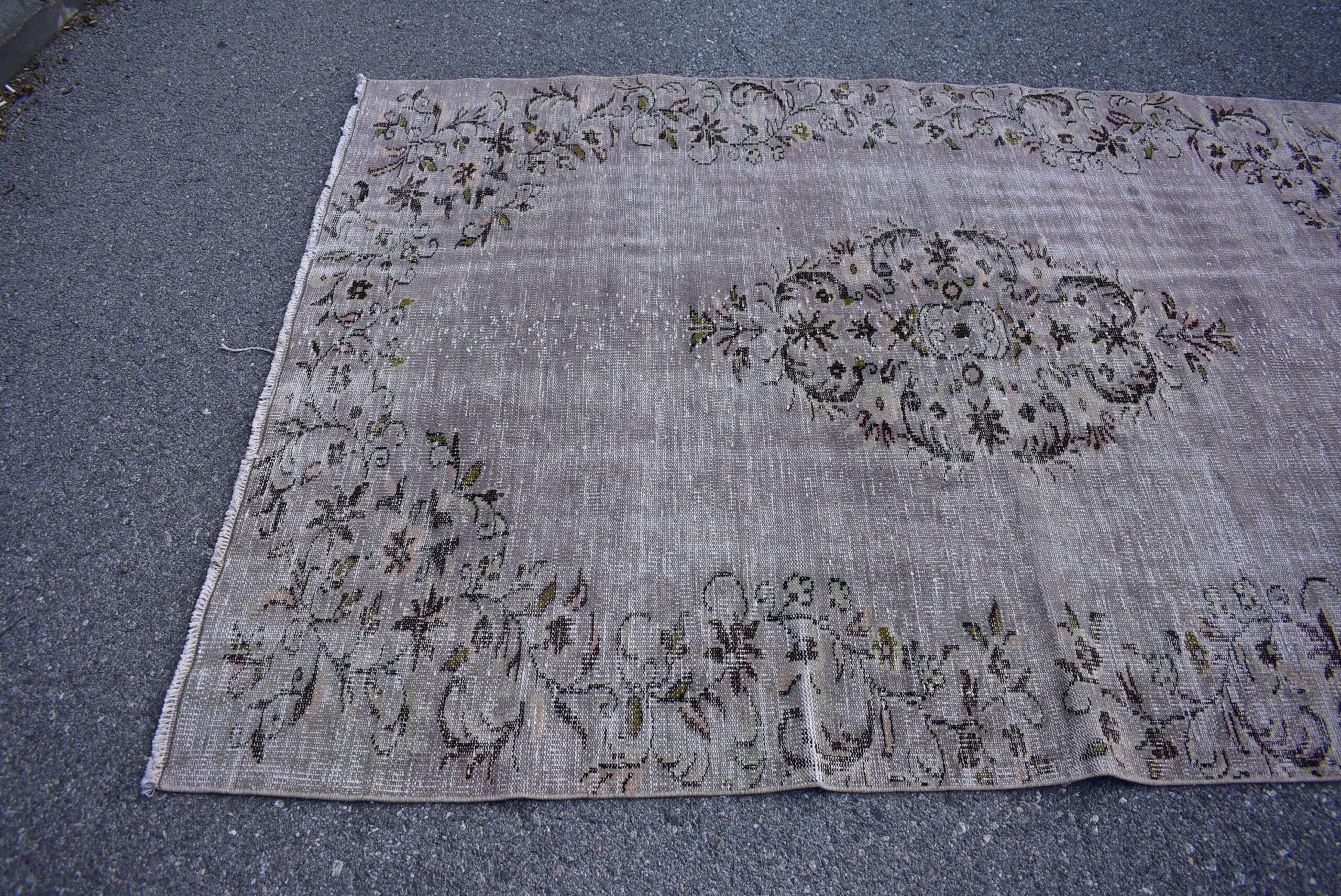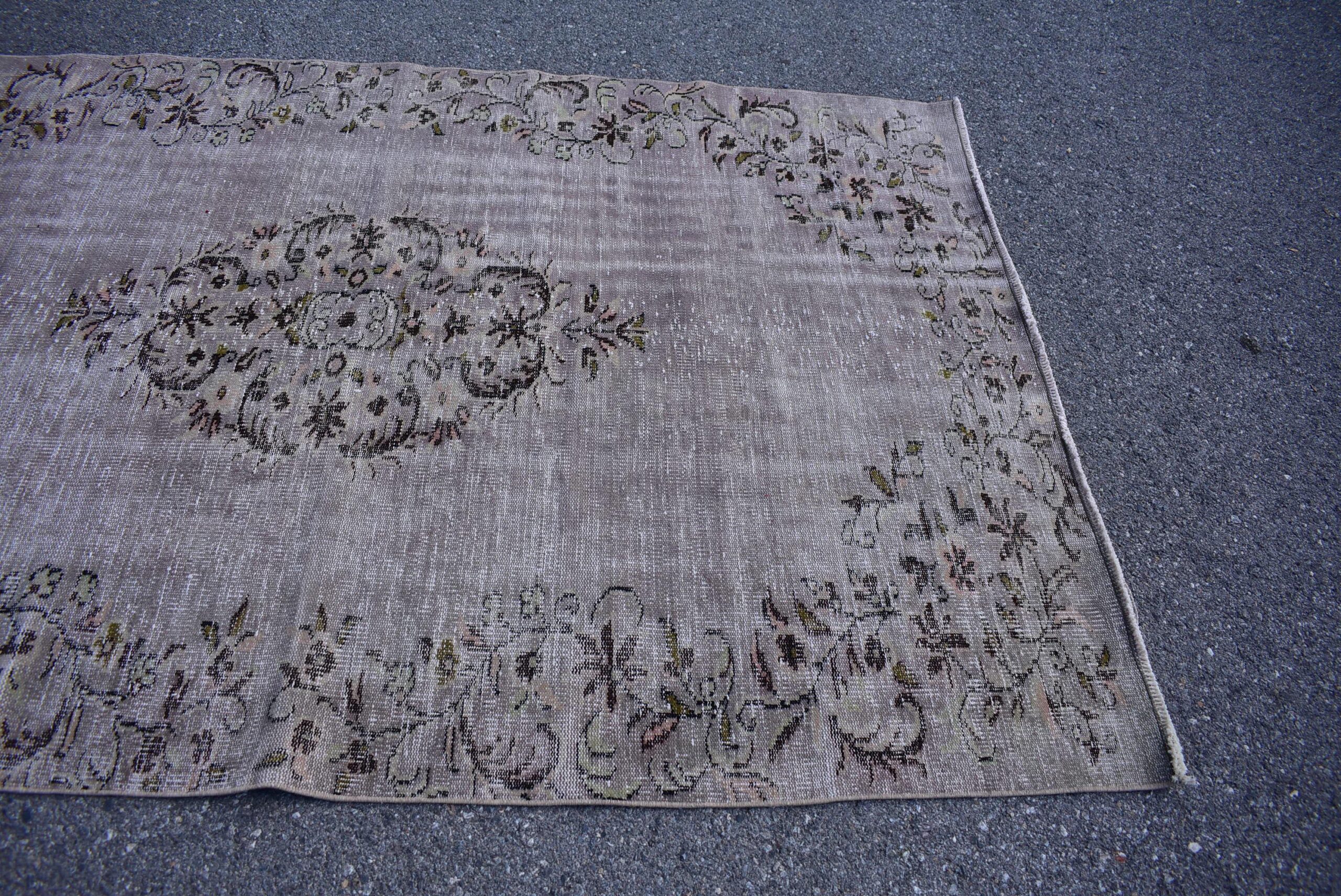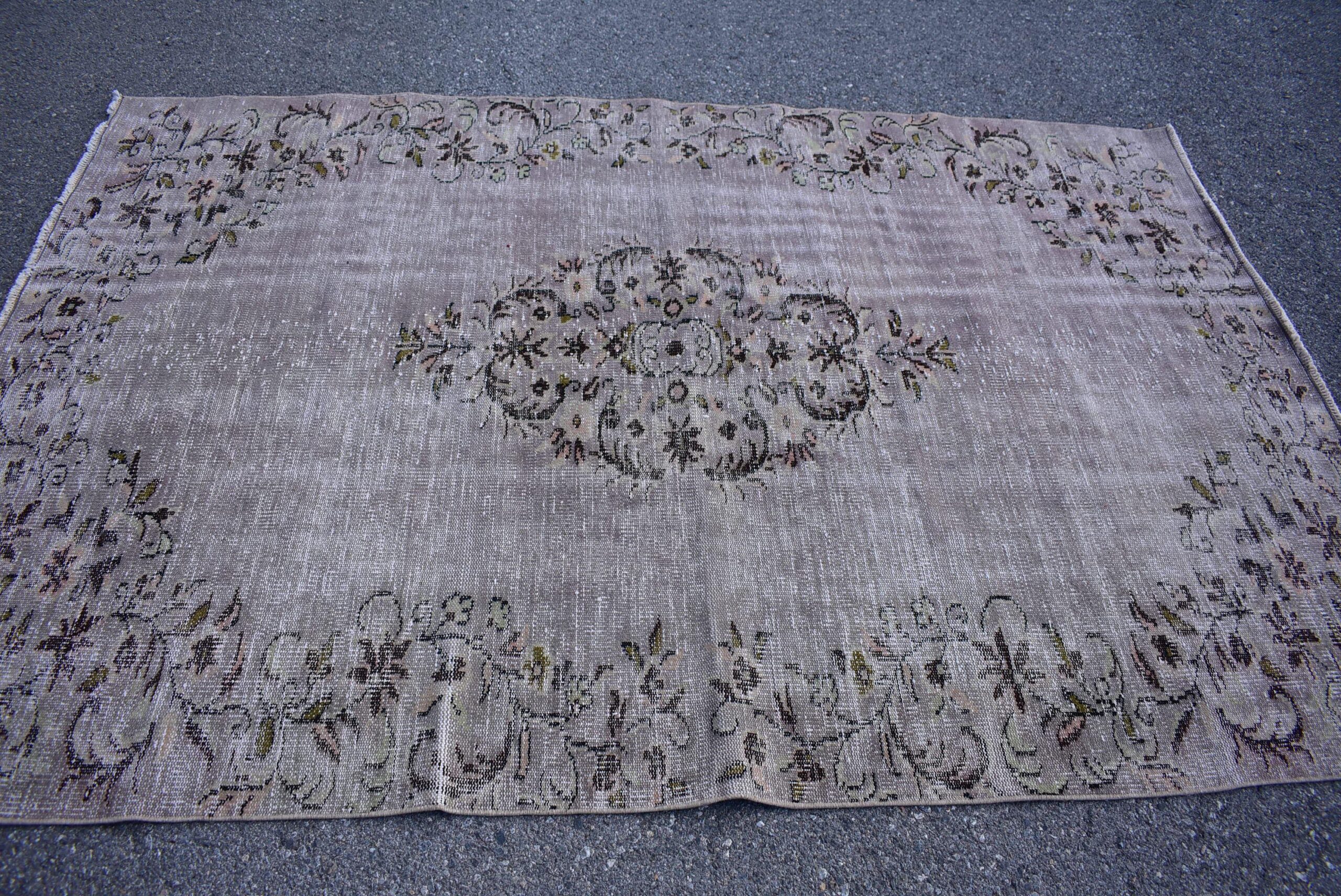 Pretty and one-of-a-kind 5.7 ft. x 8.5 ft. (174 cm x 260 cm) vintage overdyed rug hand-knotted in Turkey from organic wool. This is an authentic vintage rug from the 1980s that has worn splendidly to perfection.