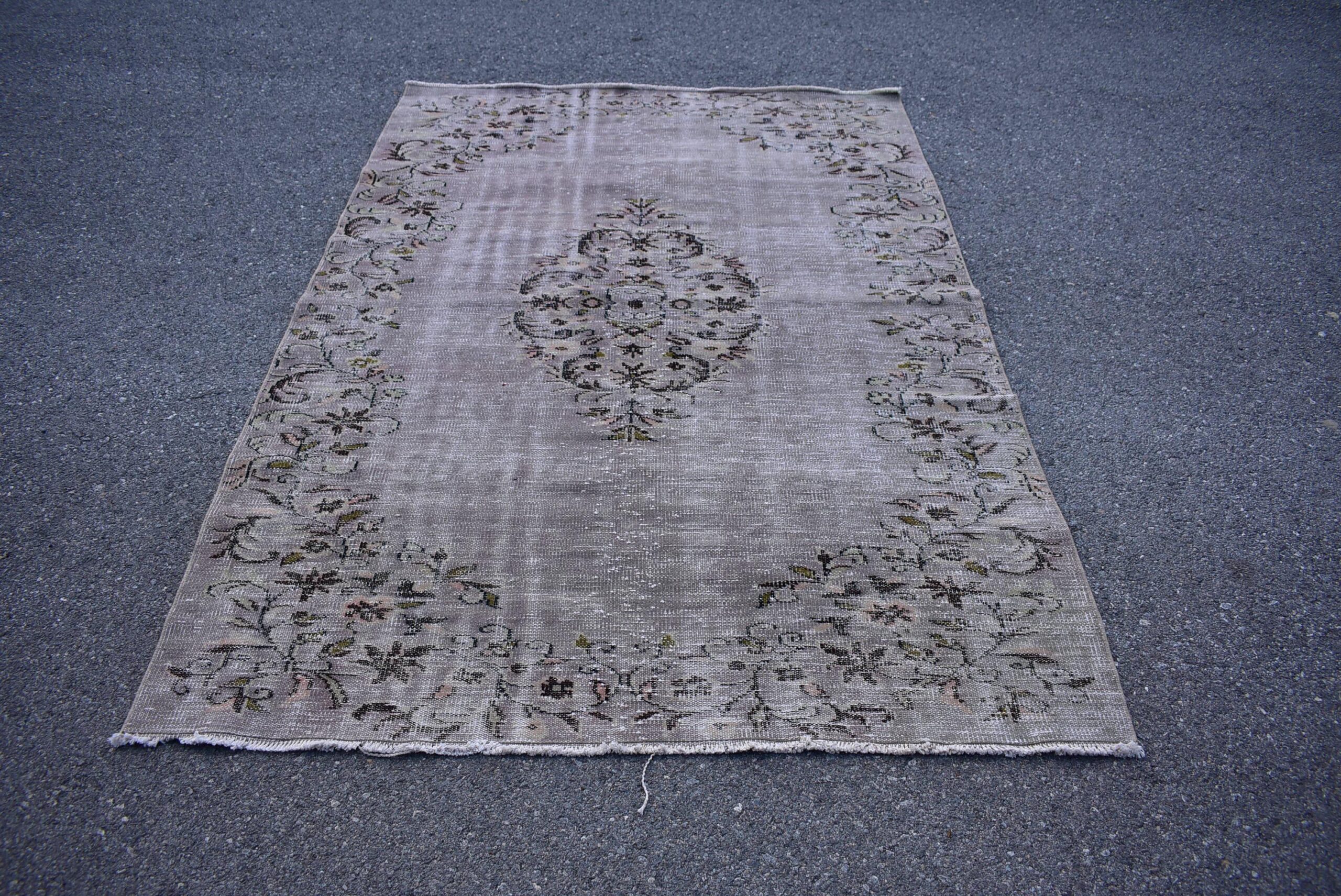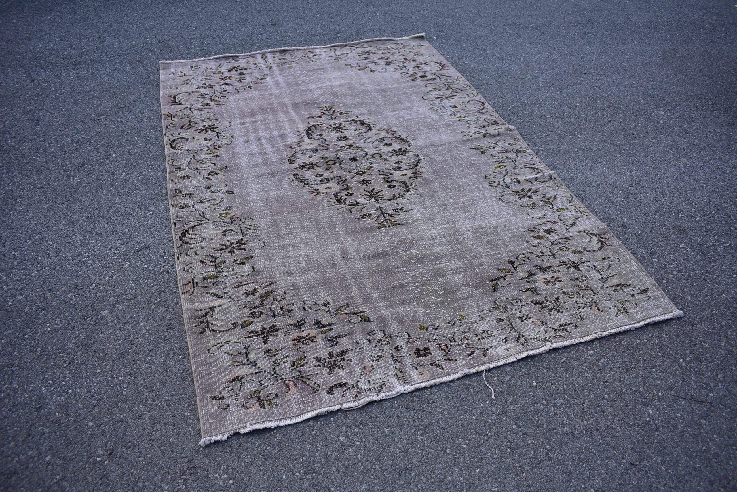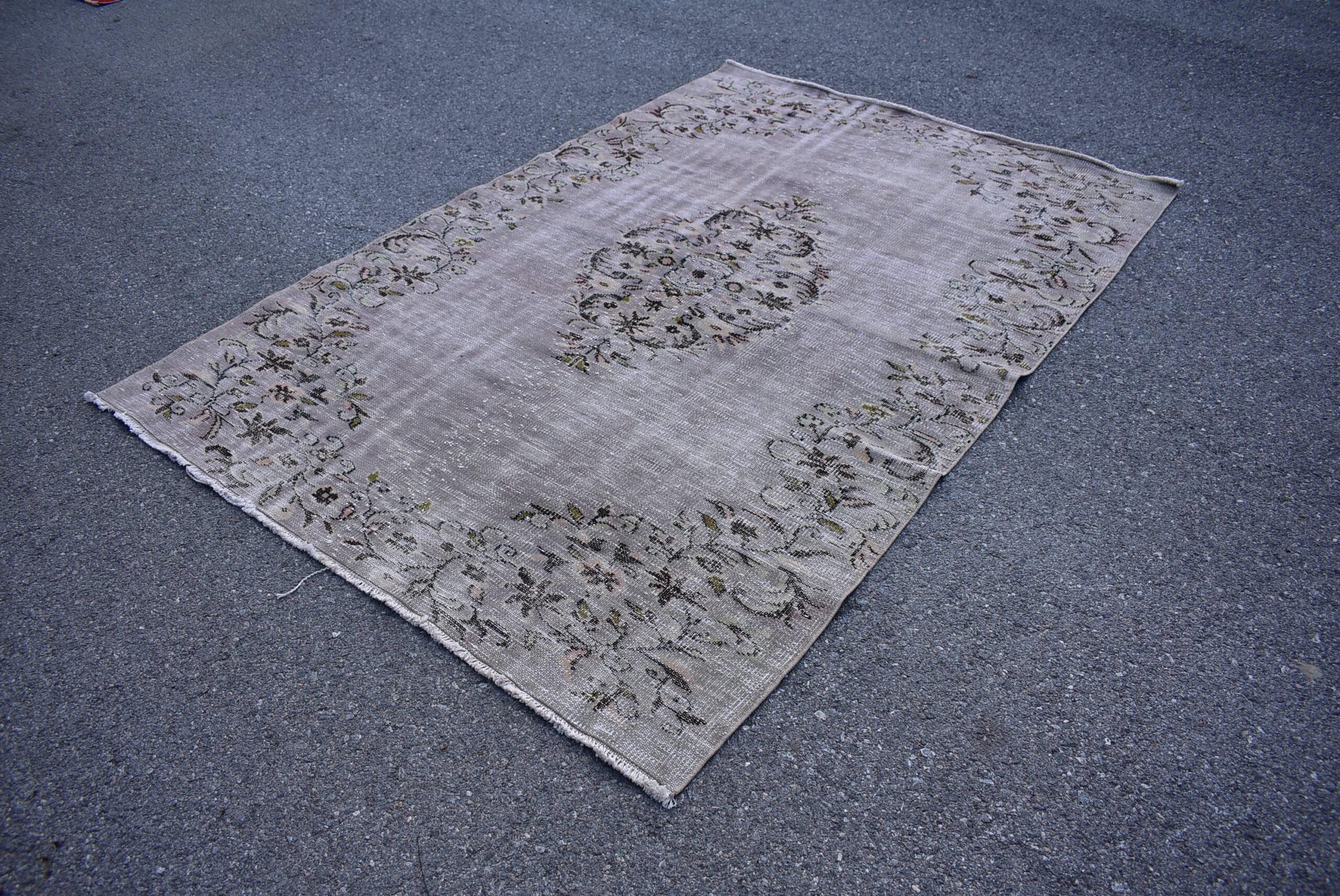Pretty and one-of-a-kind 5.7 ft. x 8.5 ft. (174 cm x 260 cm) vintage overdyed rug hand-knotted in Turkey from organic wool. This is an authentic vintage rug from the 1980s that has worn splendidly to perfection.