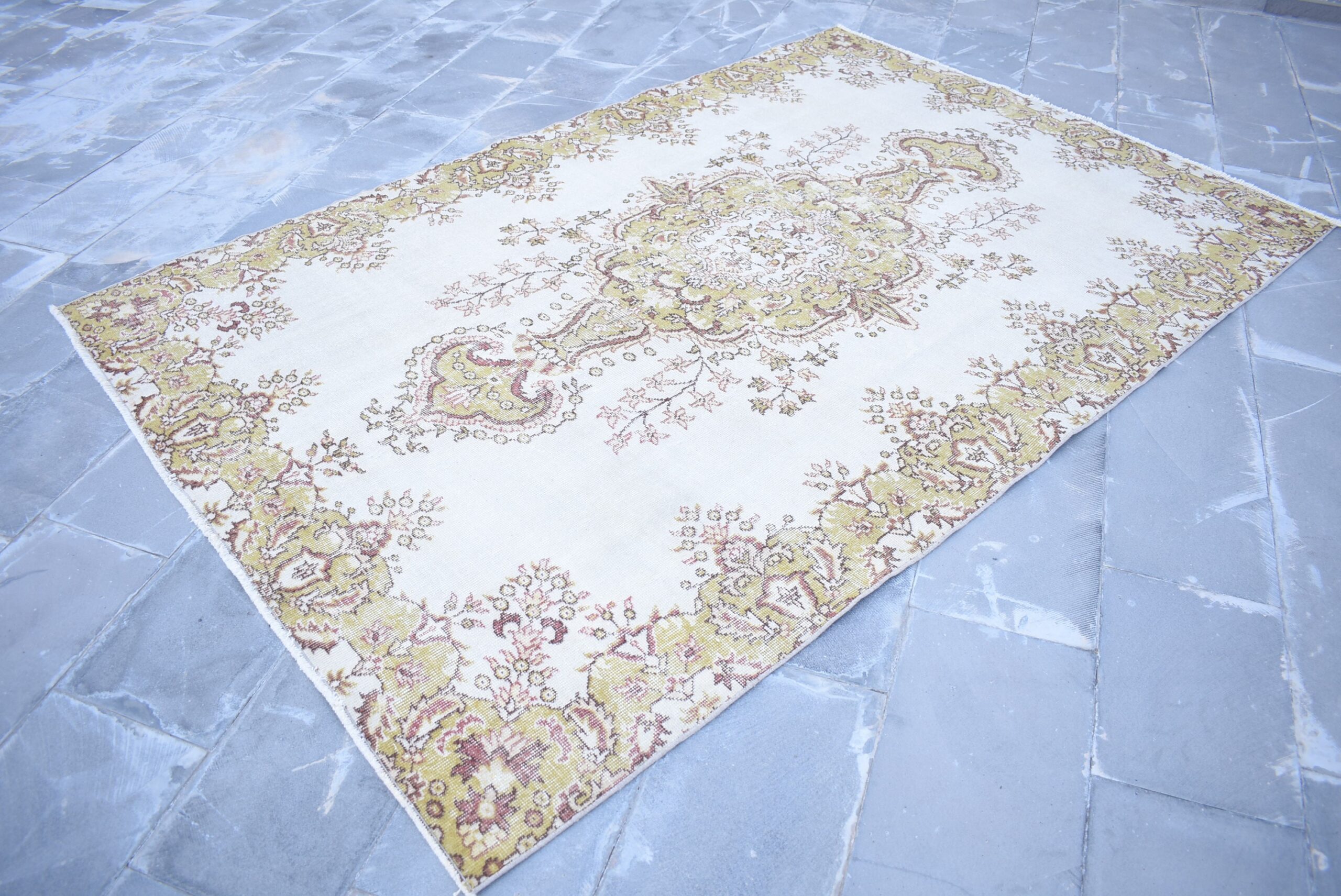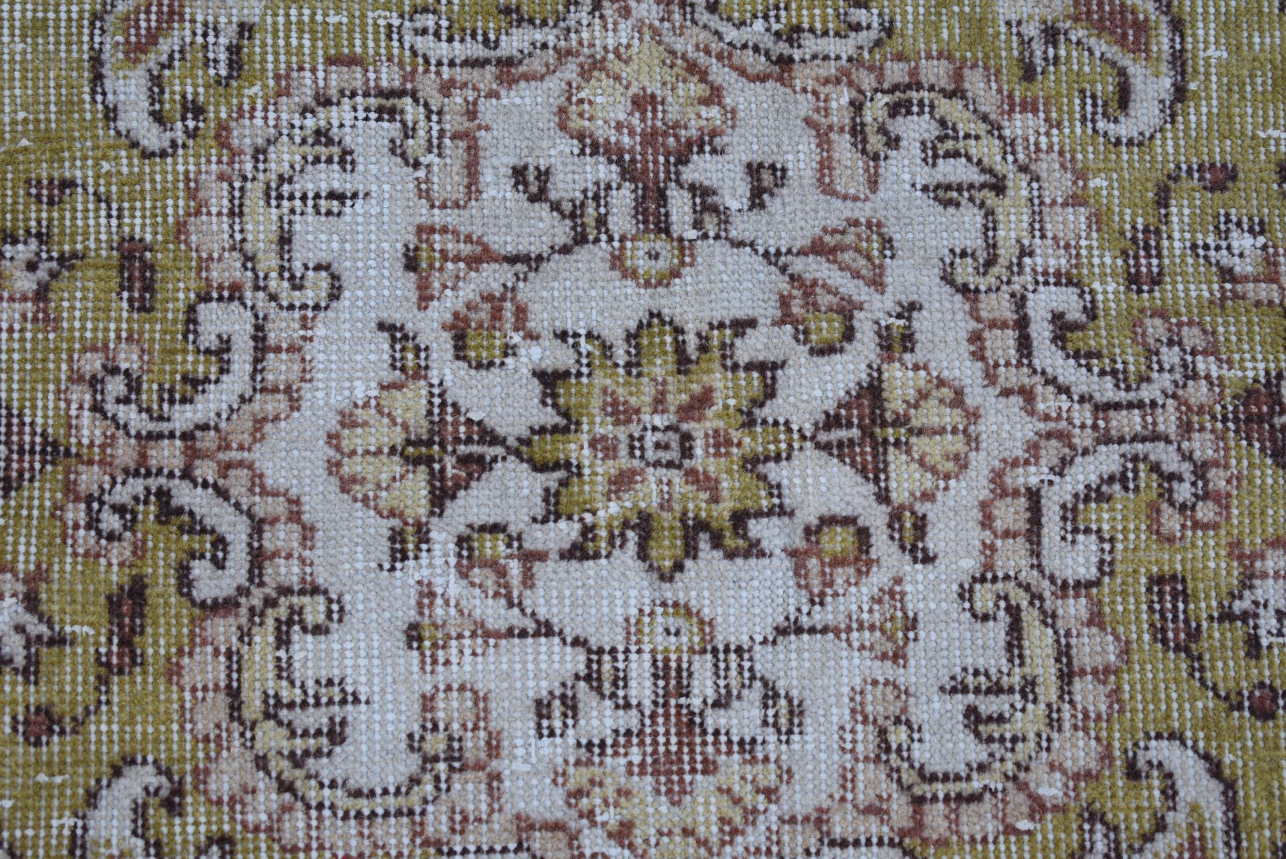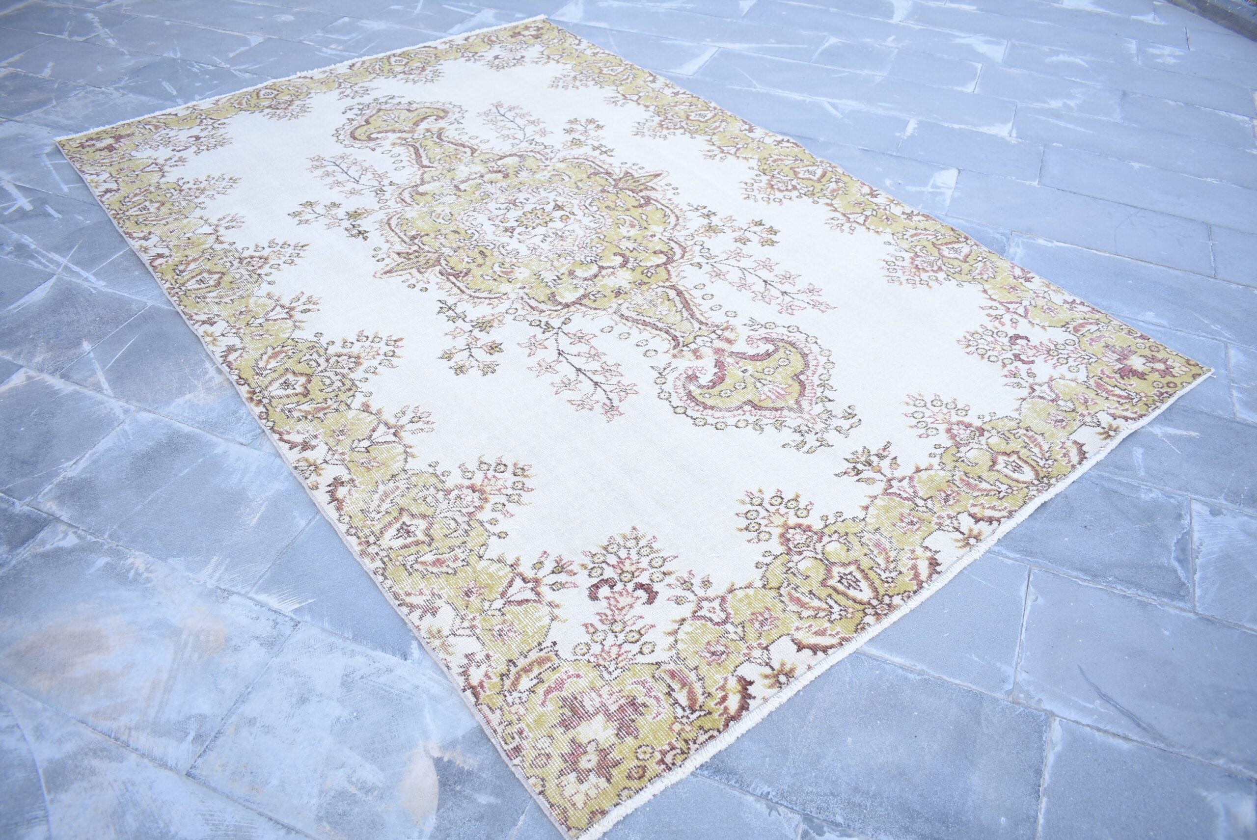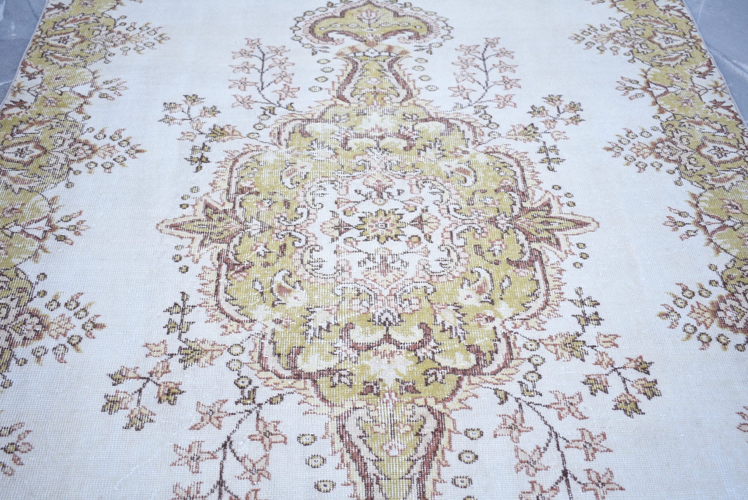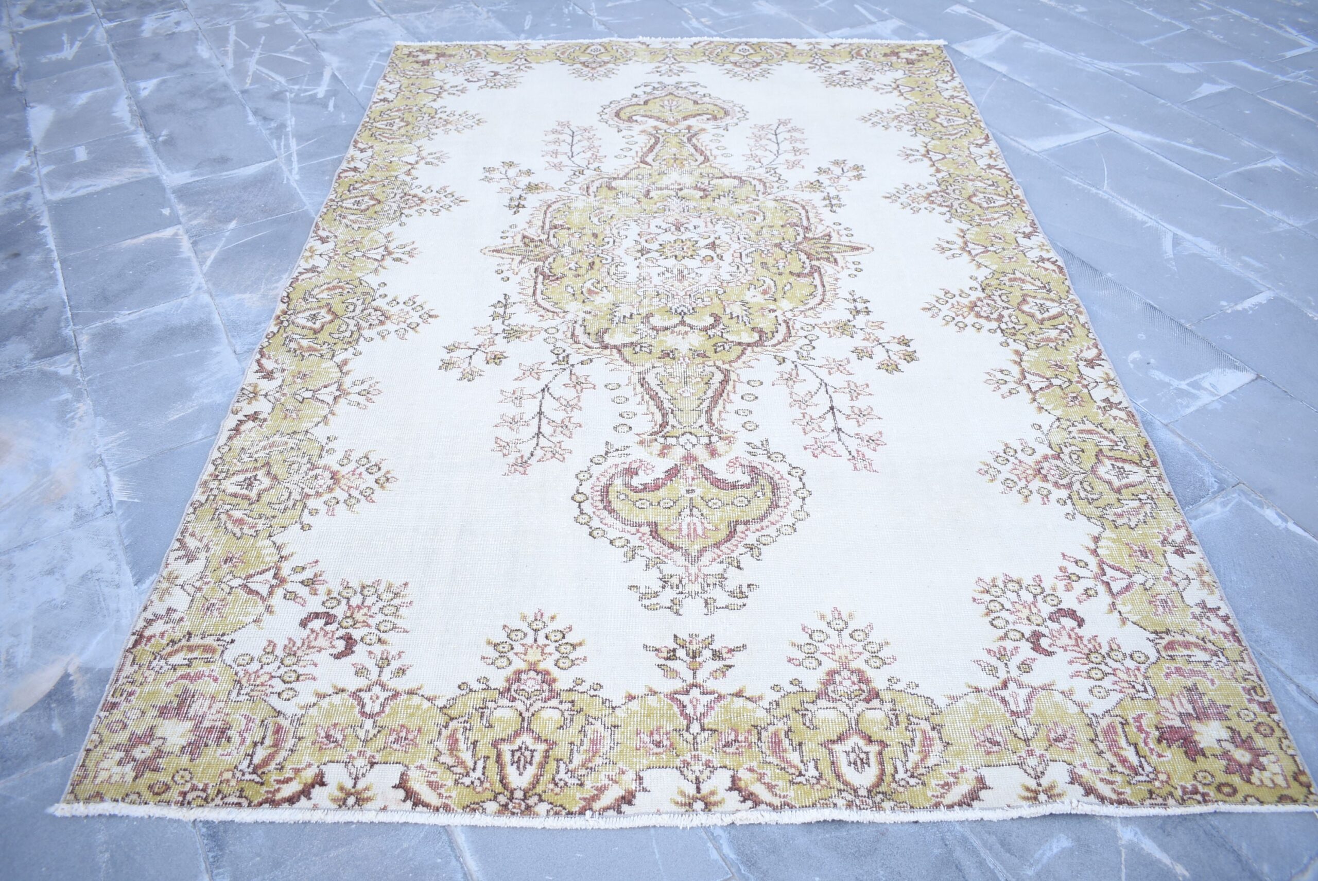 Beautiful and one-of-a-kind 5.8 ft. x 8.9 ft. (178 cm x 272 cm) vintage Turkish rug hand-knotted in Turkey from organic wool. This is an authentic vintage Turkish rug from the 1980s that has worn admirably to perfection.
