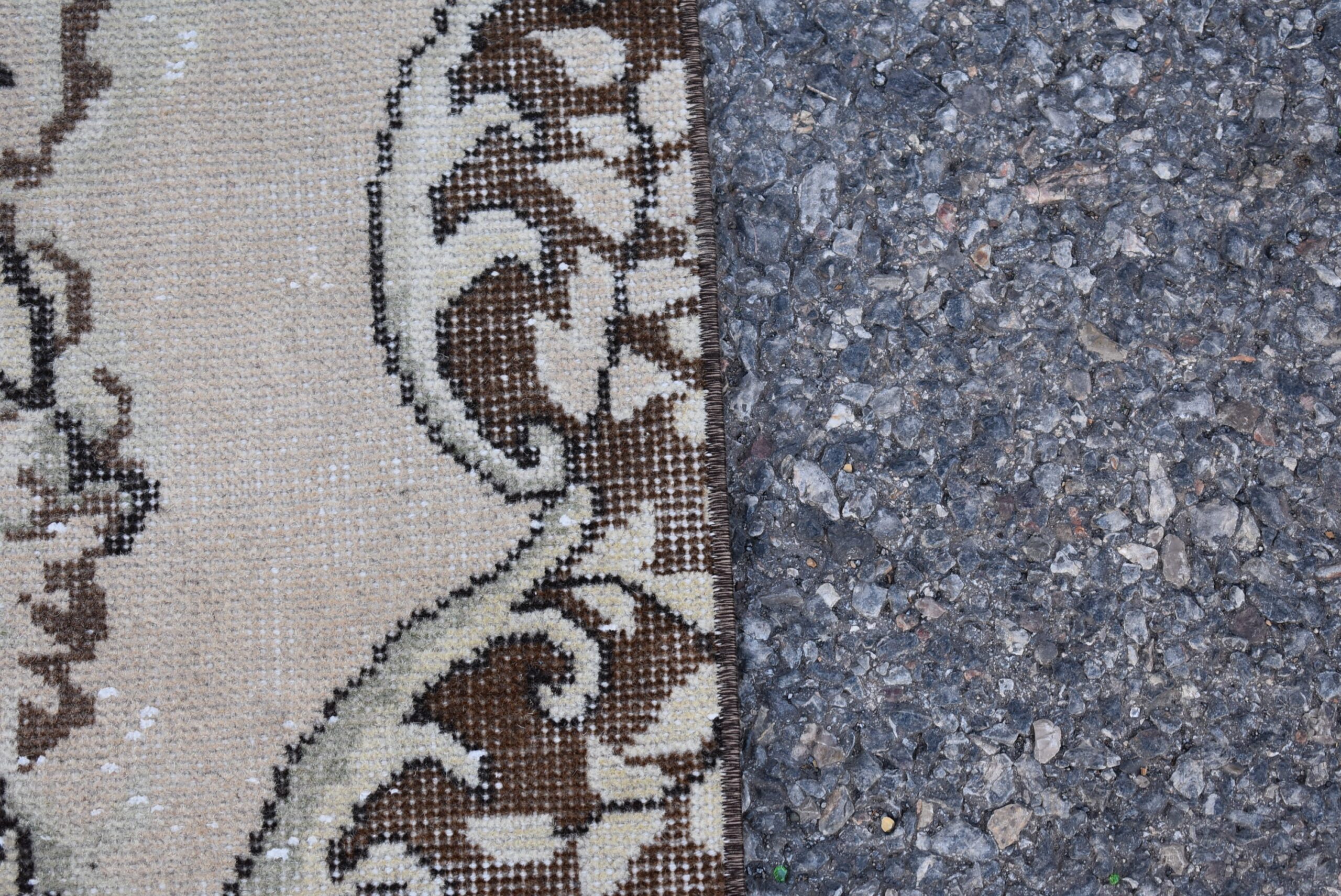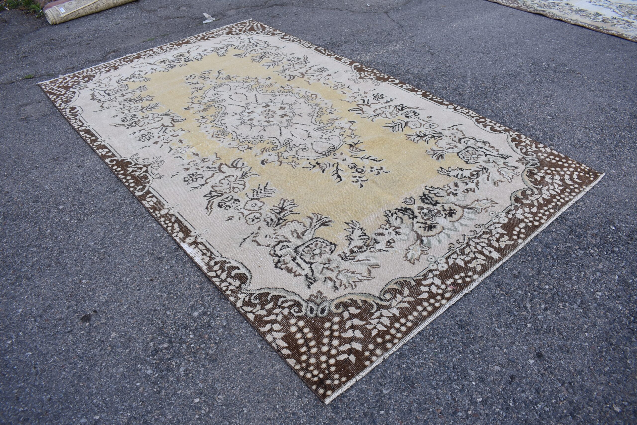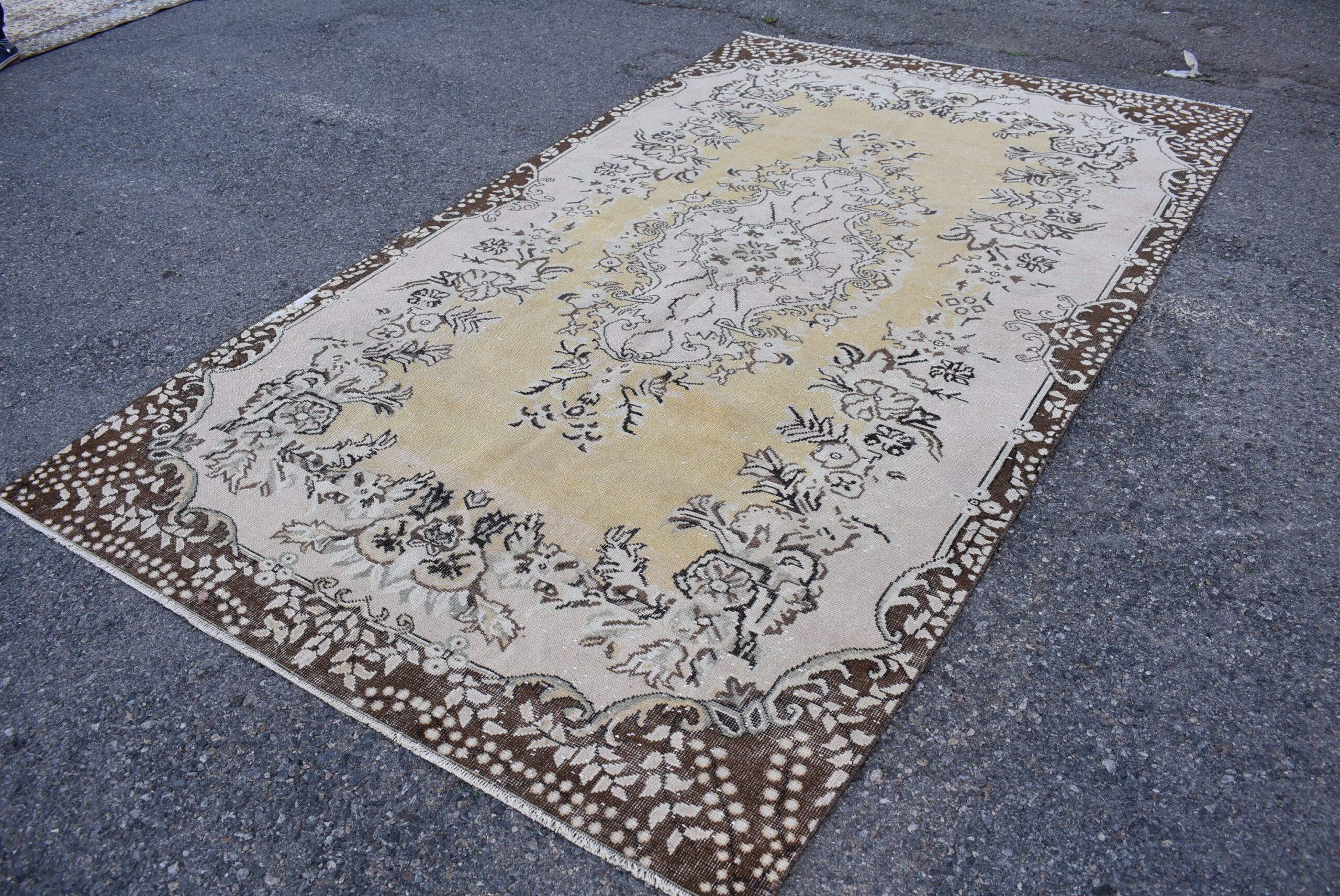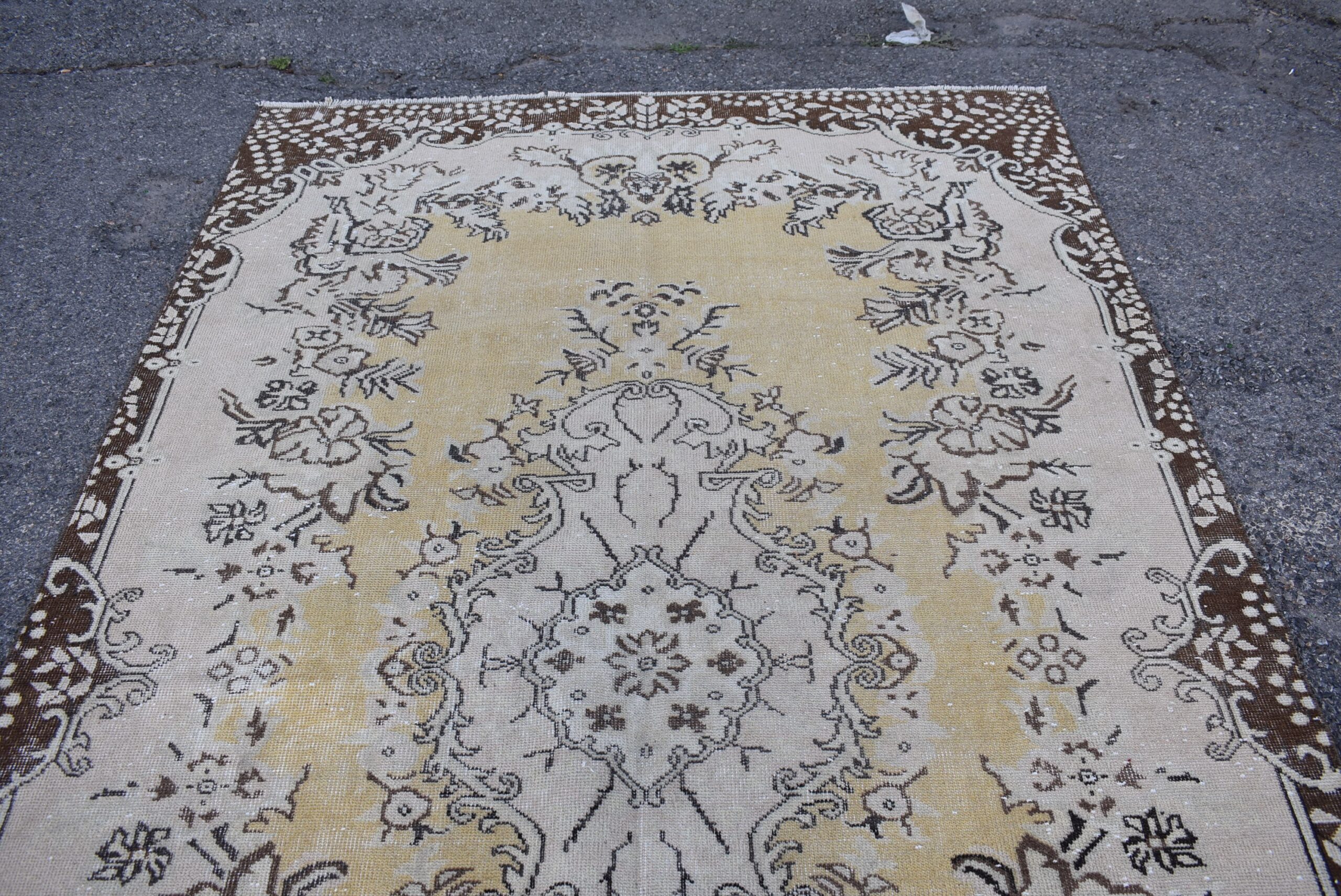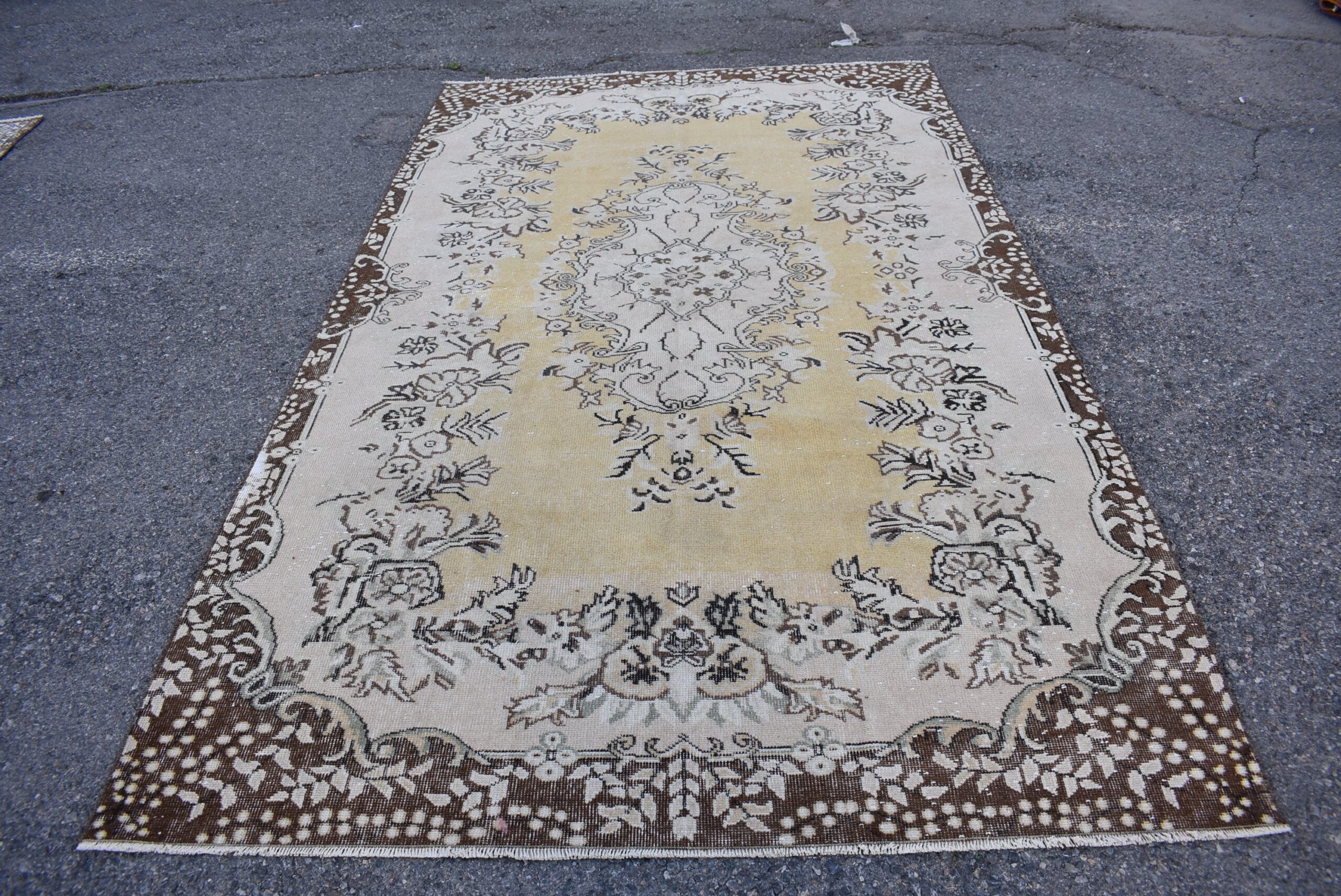 This is a vintage Turkish rug hand-knotted in a small village in Turkey by skilled Anatolian women during around the 1980s. It is made from natural wool (sheep) and dyed using all-natural (vegetable) dyes. Natural materials are more durable than synthetic materials guaranteeing a rug that can last for years while natural dyes provide colors that gets more beautiful as years pass by especially when in direct sunlight.