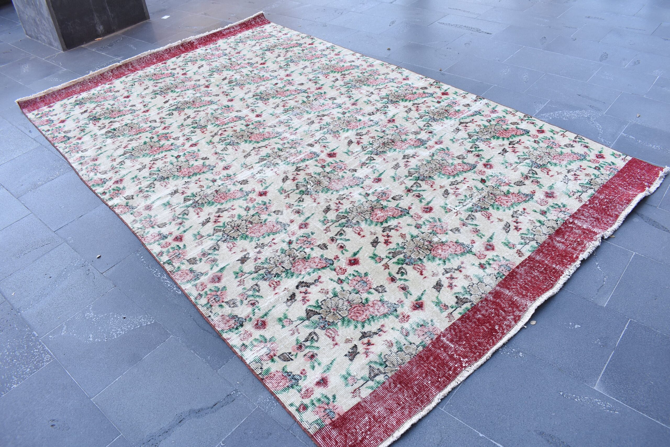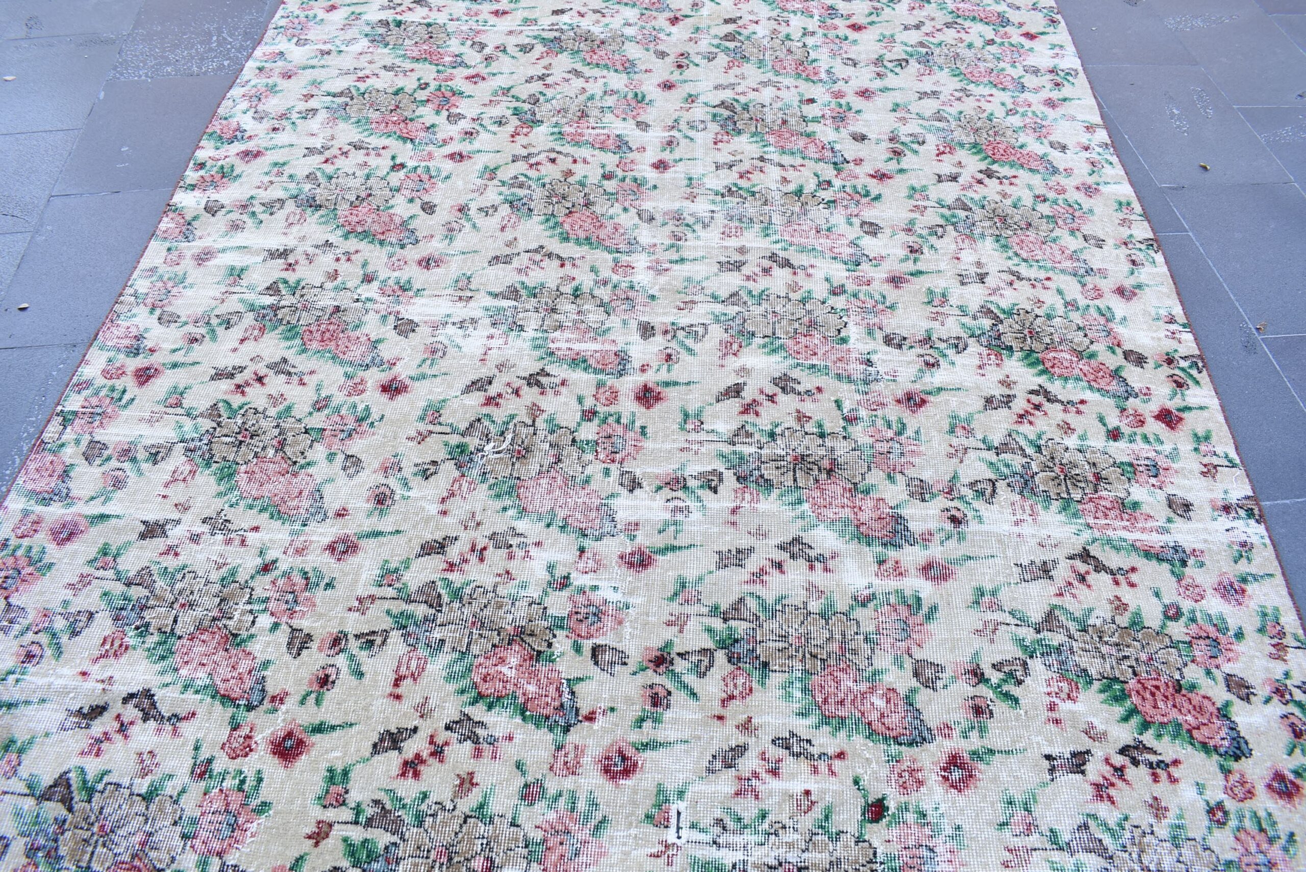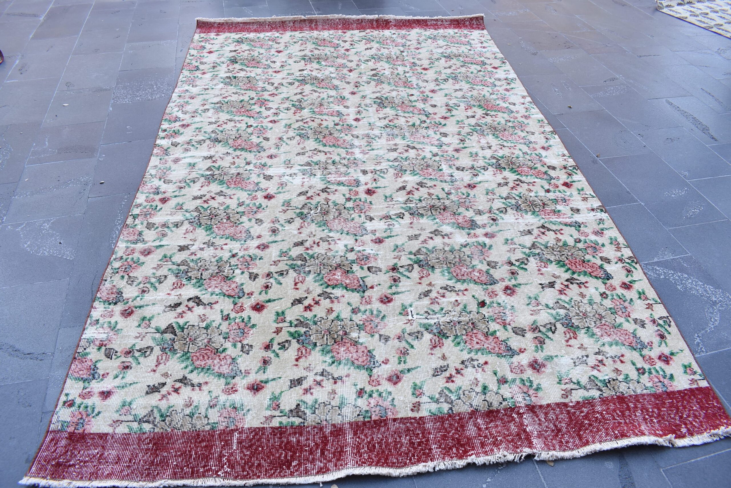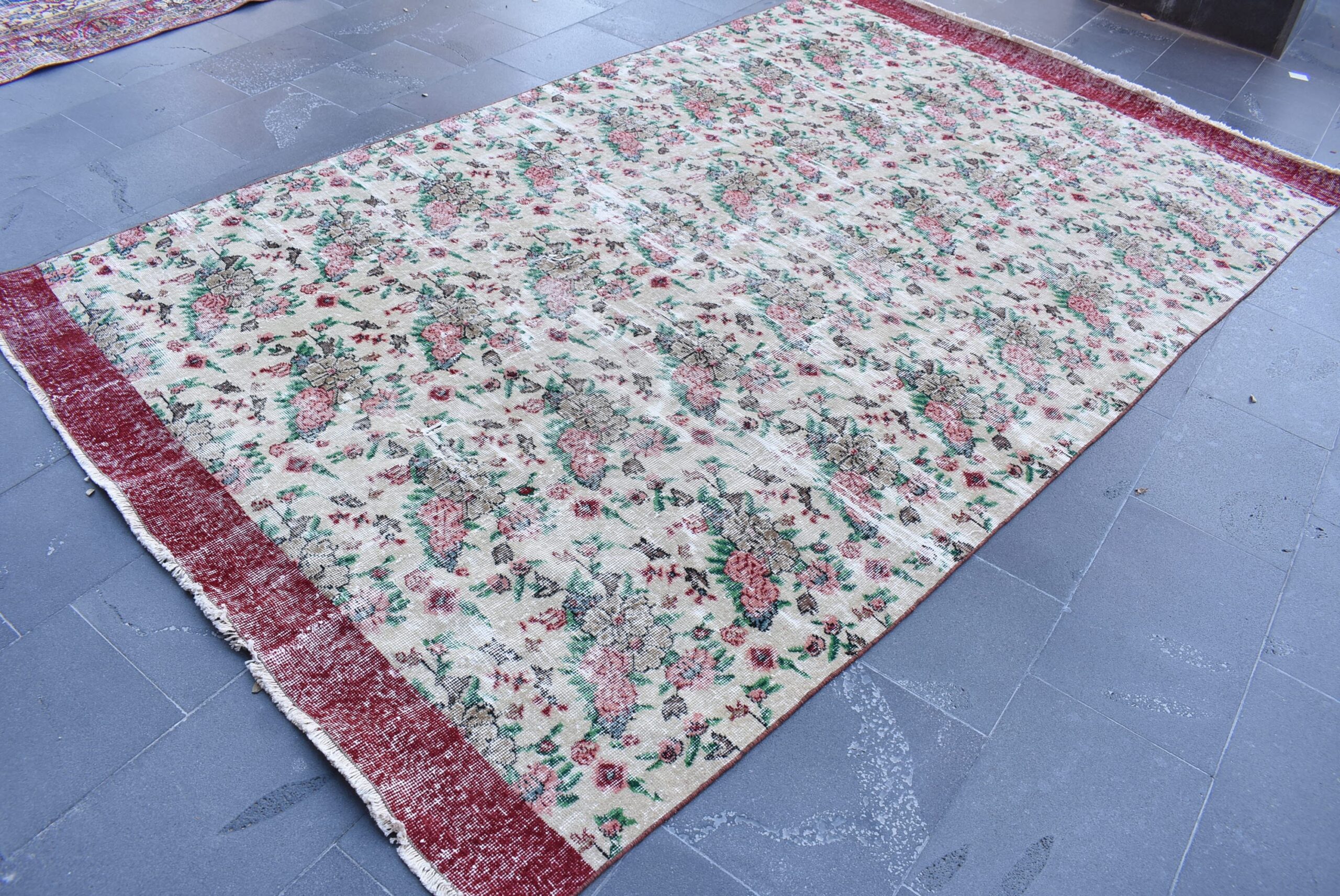 Pretty and one-of-a-kind 5.9 ft. x 10.1 ft. (181 cm x 307 cm) vintage Turkish rug hand-knotted in Turkey from organic wool. This is an authentic vintage Turkish rug from the 1990s that has worn splendidly to perfection.