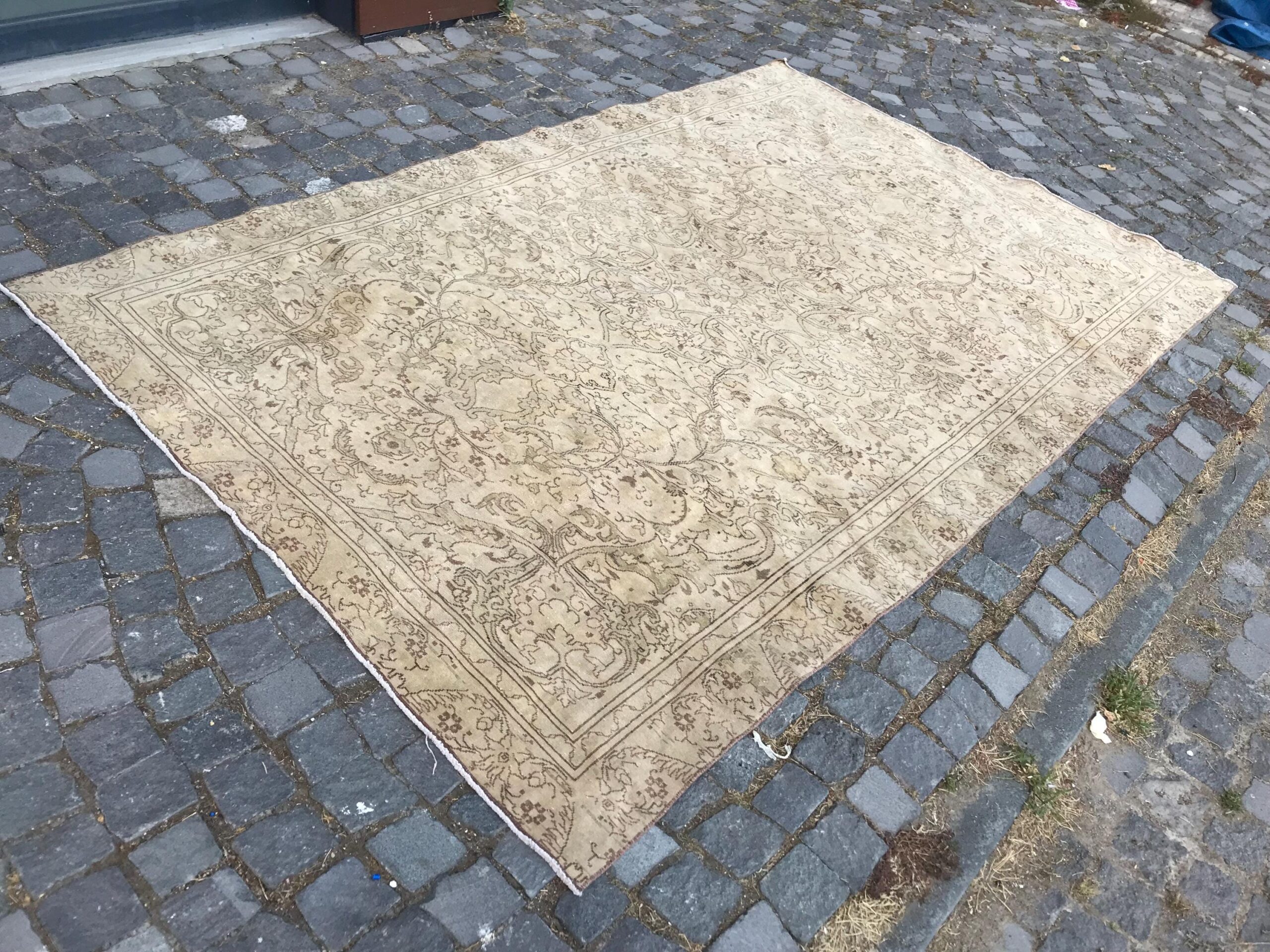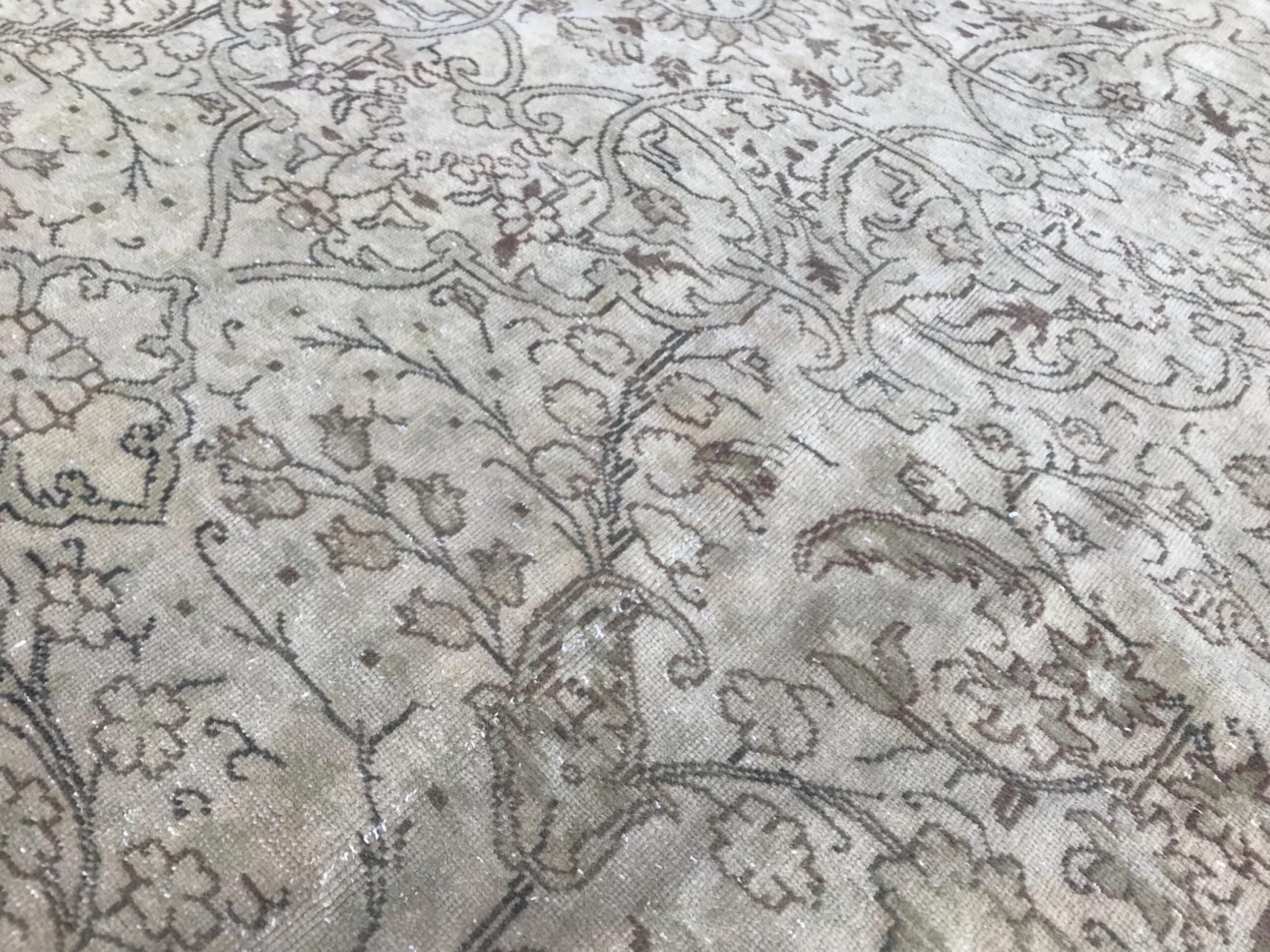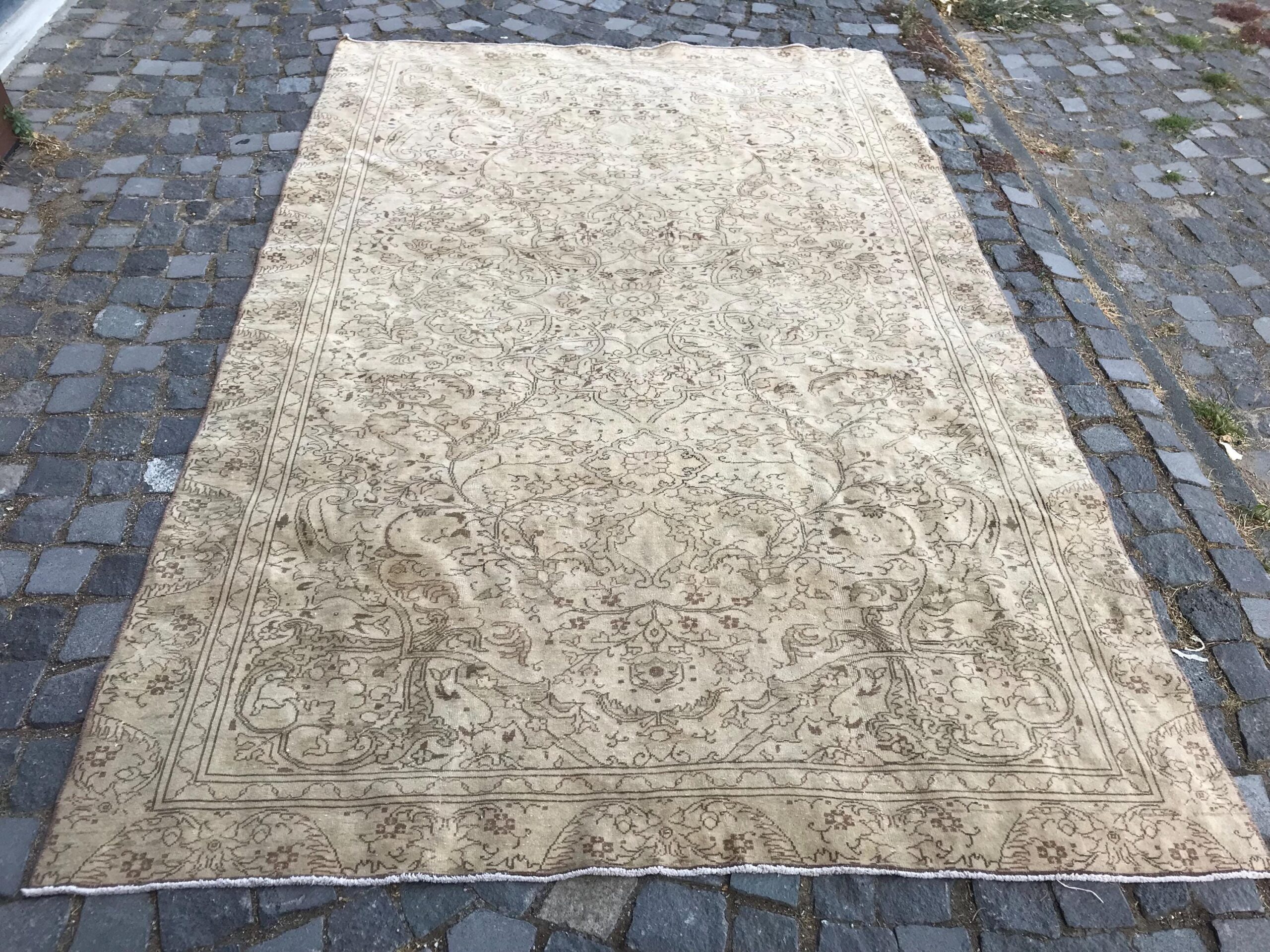 Beautiful and one-of-a-kind 5.9 ft. x 9.2 ft. (180 cm x 280 cm) vintage Turkish rug hand-knotted in Turkey from organic wool. This is an authentic vintage Turkish rug from the 1990s that has worn admirably to perfection.