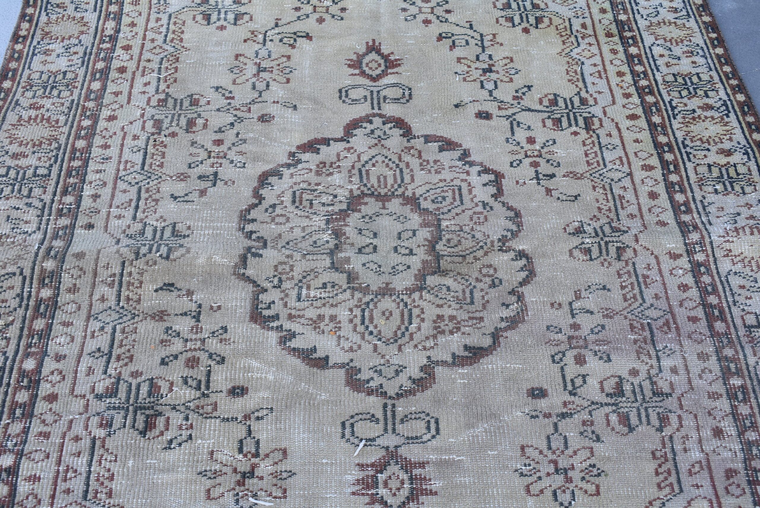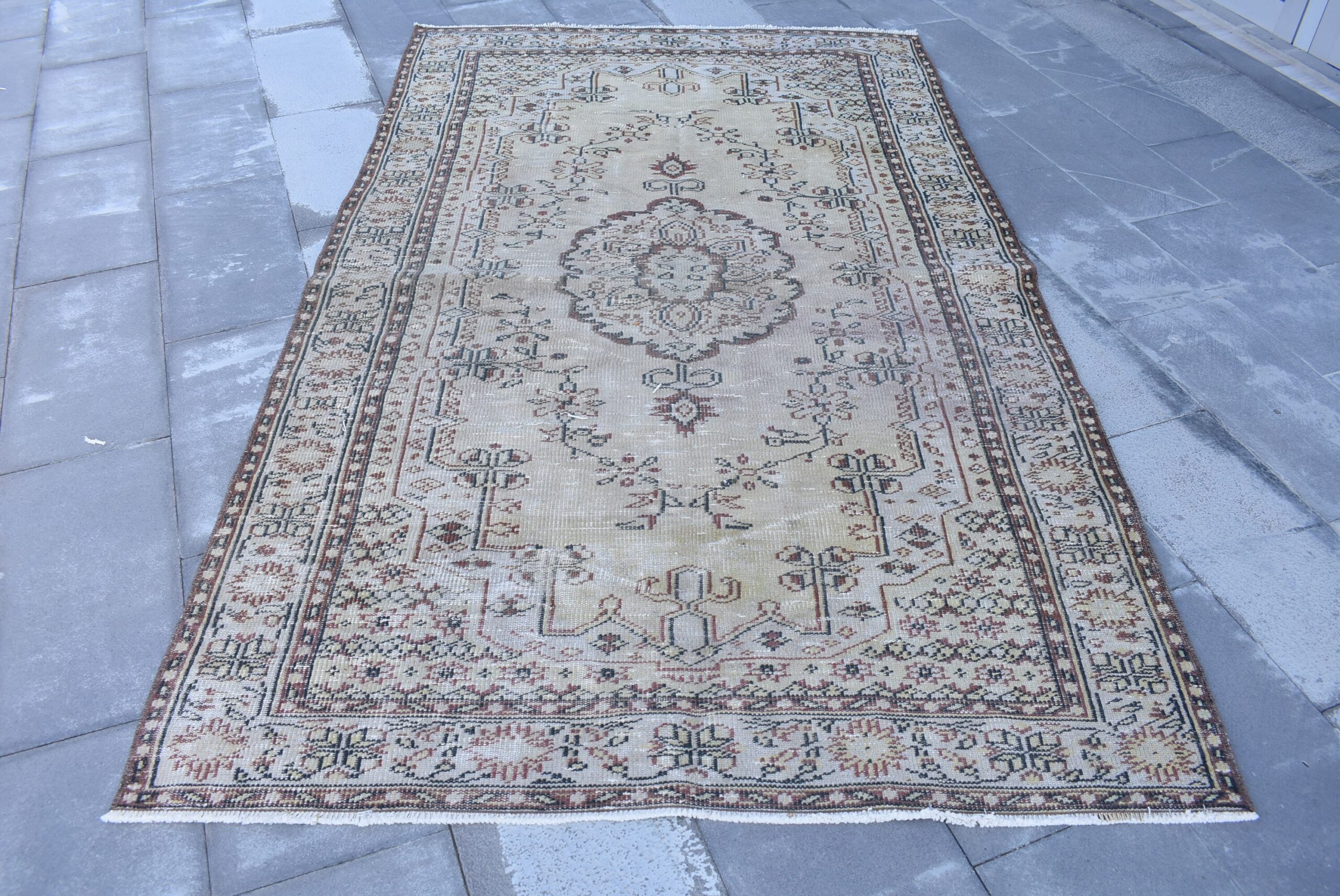 Lovely and unique 5 ft. x 8.5 ft. (153 cm x 259 cm) vintage Turkish rug hand-knotted in Turkey from organic wool. This is an authentic vintage Turkish rug from the 1990s that has worn beautifully to perfection.