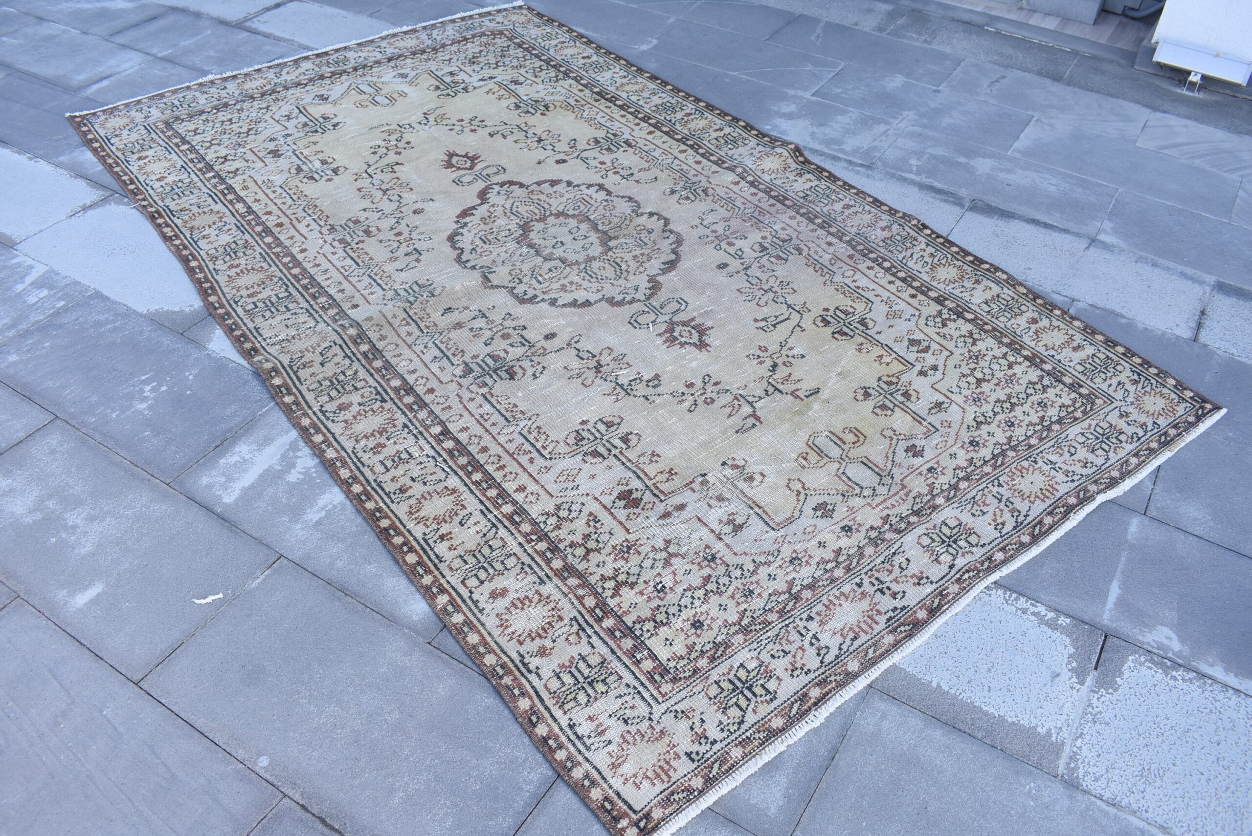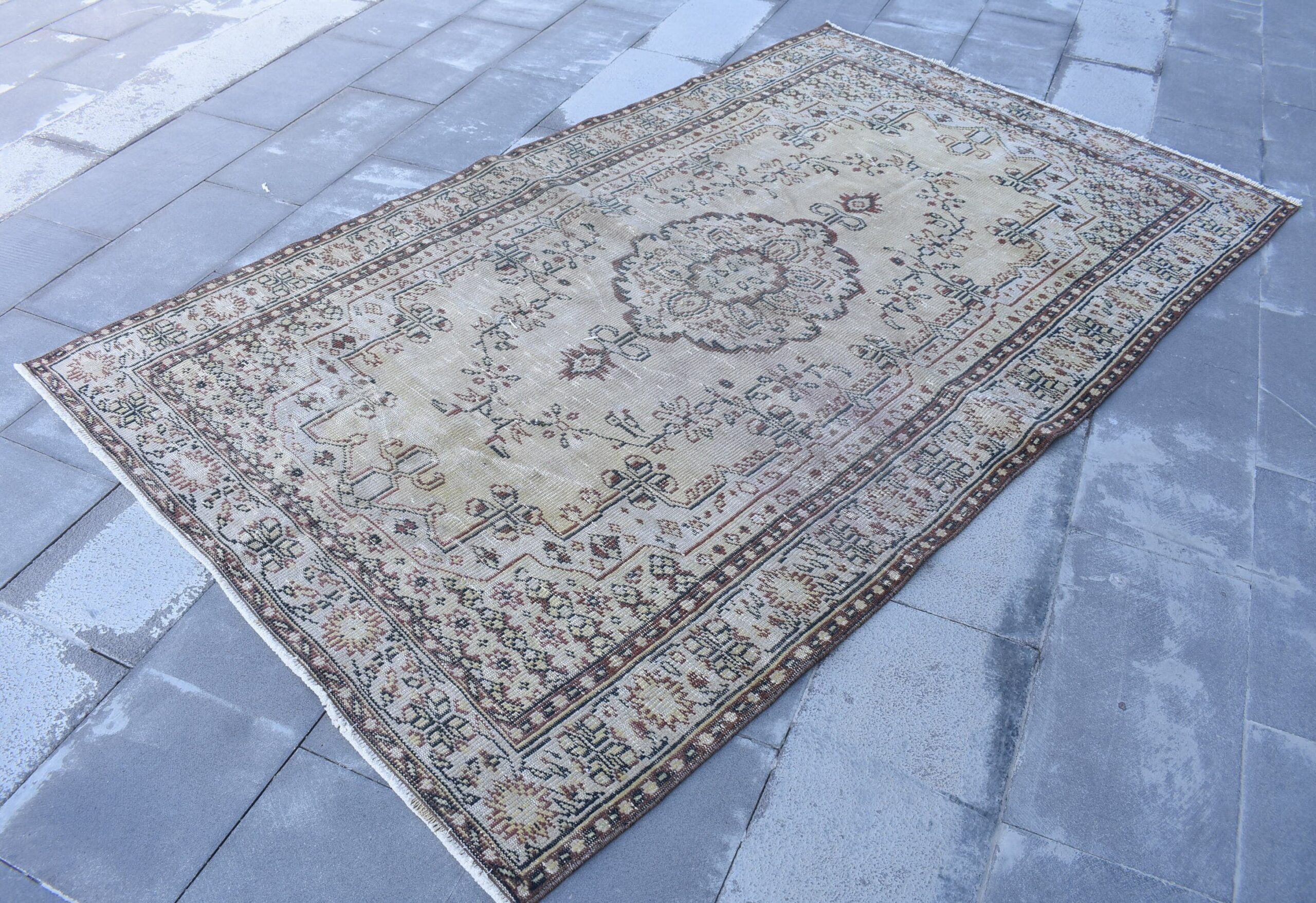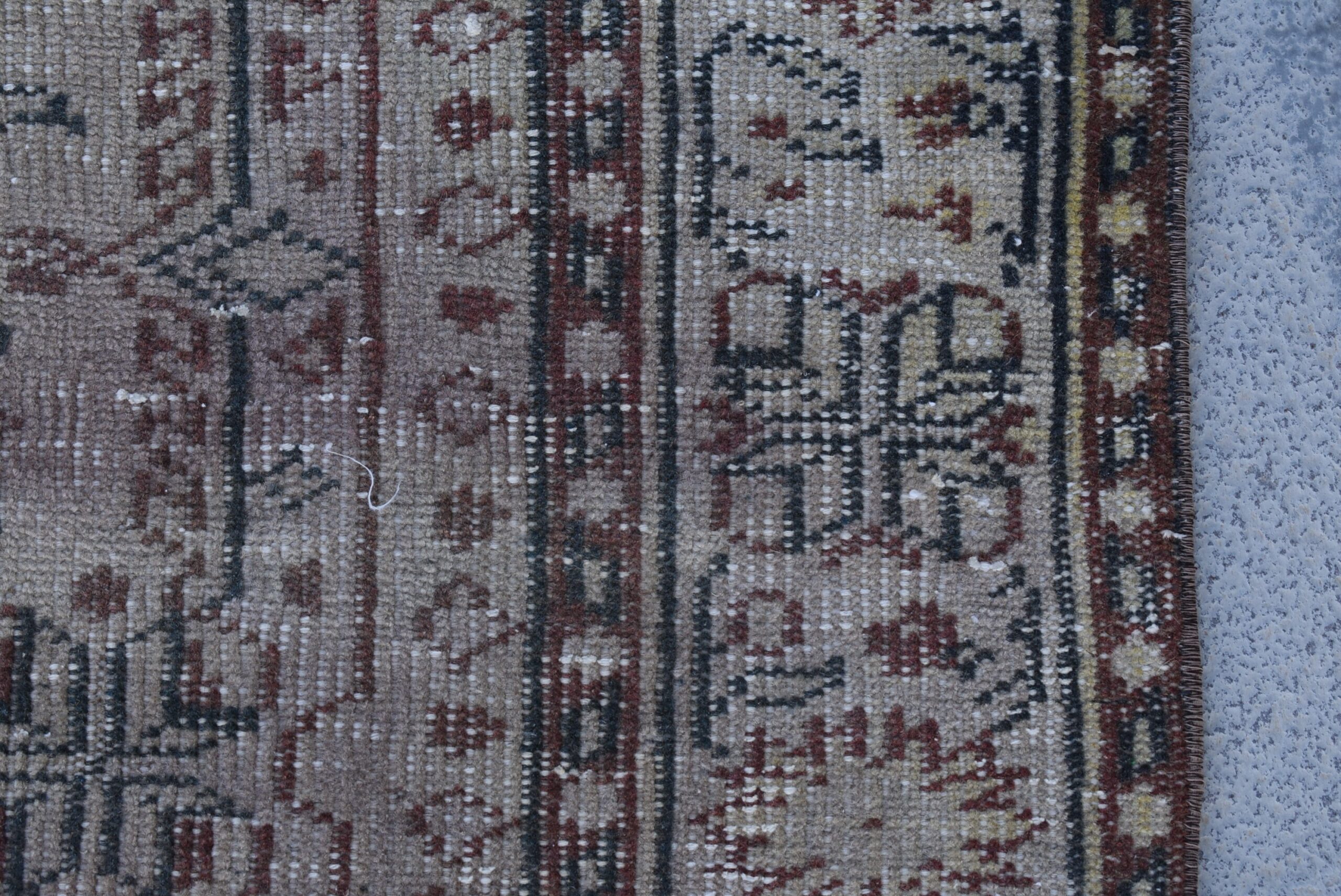 This is a vintage Turkish rug hand-knotted in a small village in Turkey by skilled Anatolian women during around the 1990s. It is made from natural wool (sheep) and dyed using all-natural (vegetable) dyes. Natural materials are more durable than synthetic materials guaranteeing a rug that can last for years while natural dyes provide colors that gets more beautiful as years pass by especially when in direct sunlight.