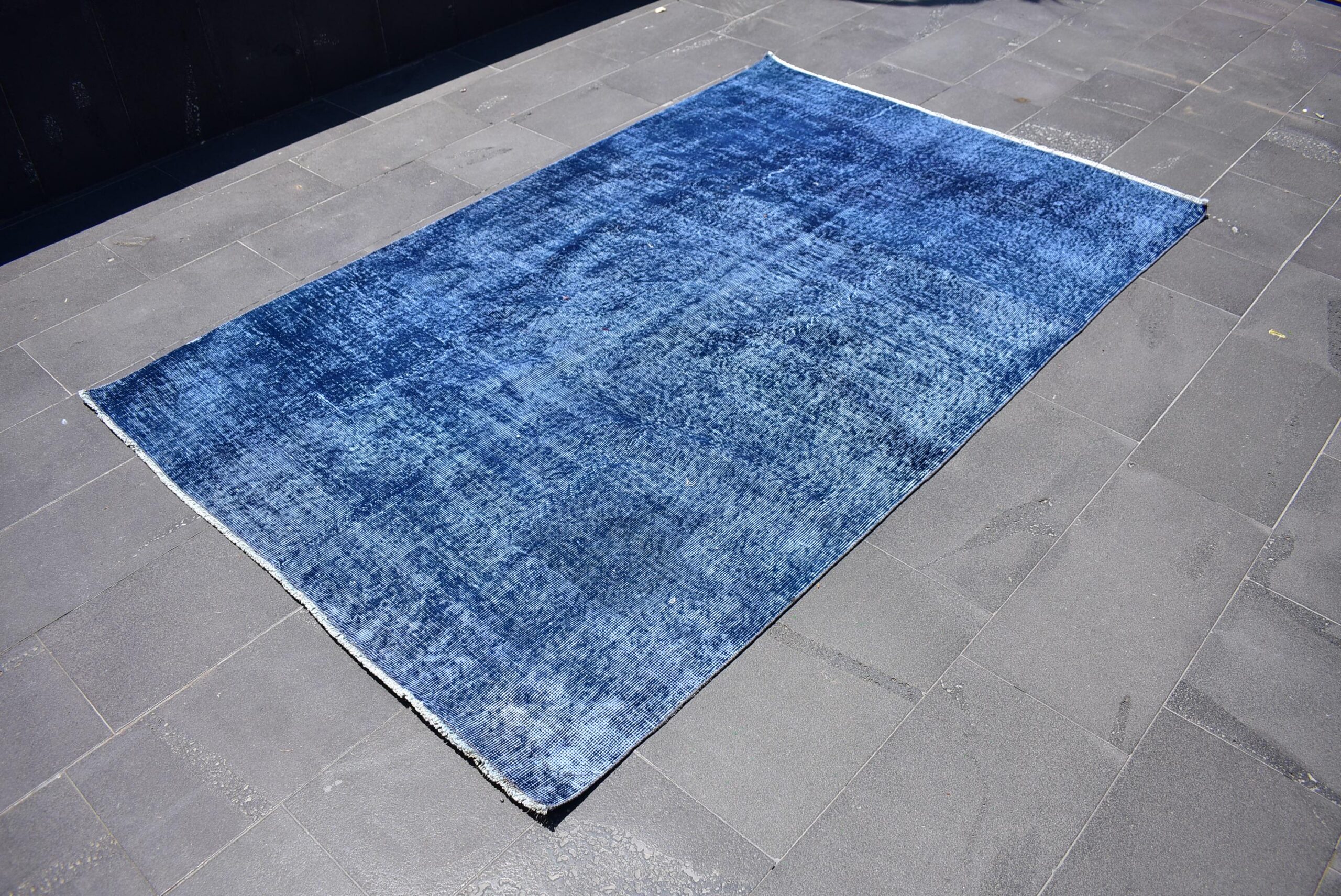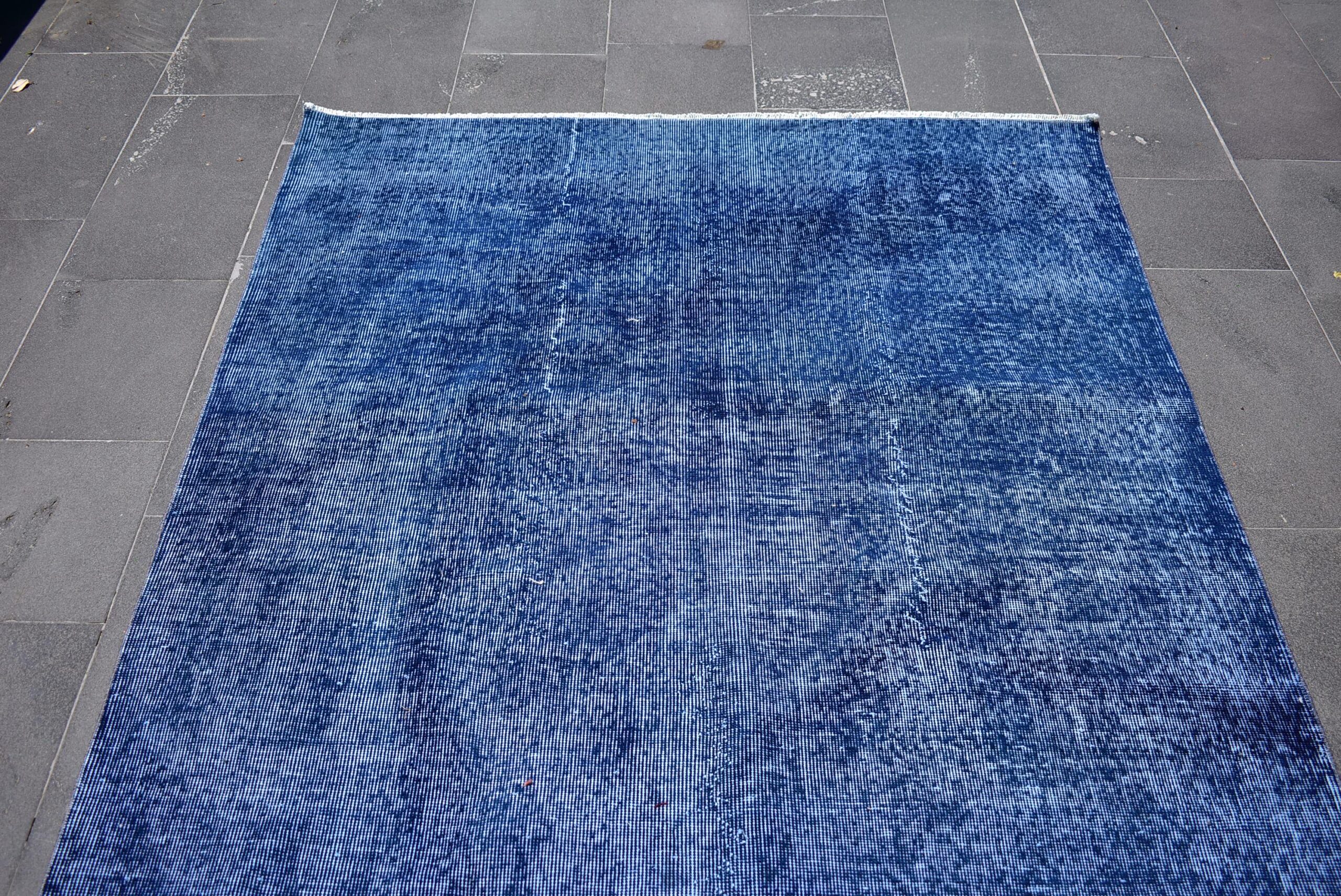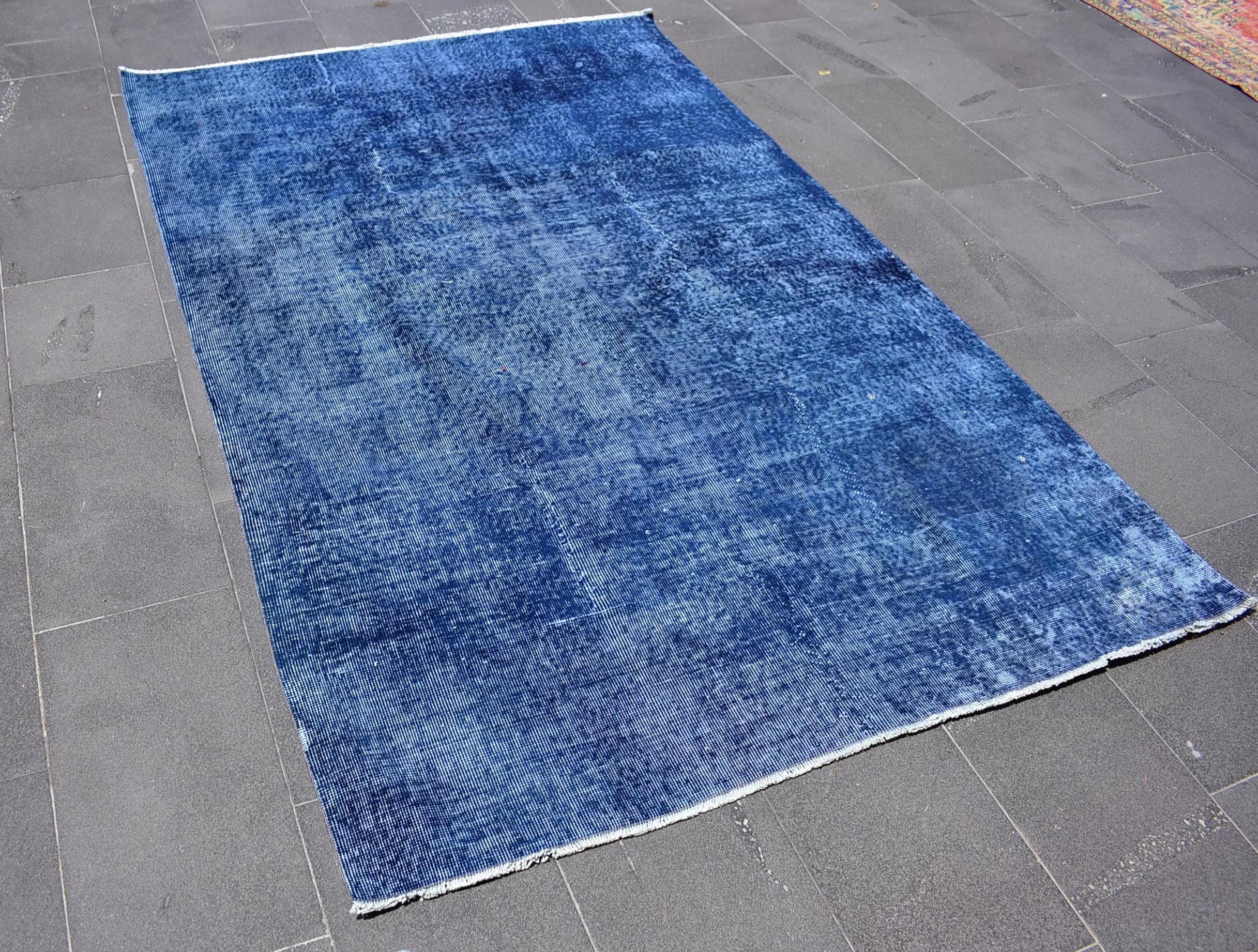 This is a vintage overdyed rug made through over-dyeing an authentic vintage Turkish rug using natural (vegetable) dyes. This rug originated in a small village in Turkey where it was hand-knotted from natural wool (sheep) by skilled Anatolian women during around the 1980s. Natural materials are more durable than synthetic materials guaranteeing a rug that can last for years while natural dyes provide colors that gets more beautiful as years pass by especially when in direct sunlight.
