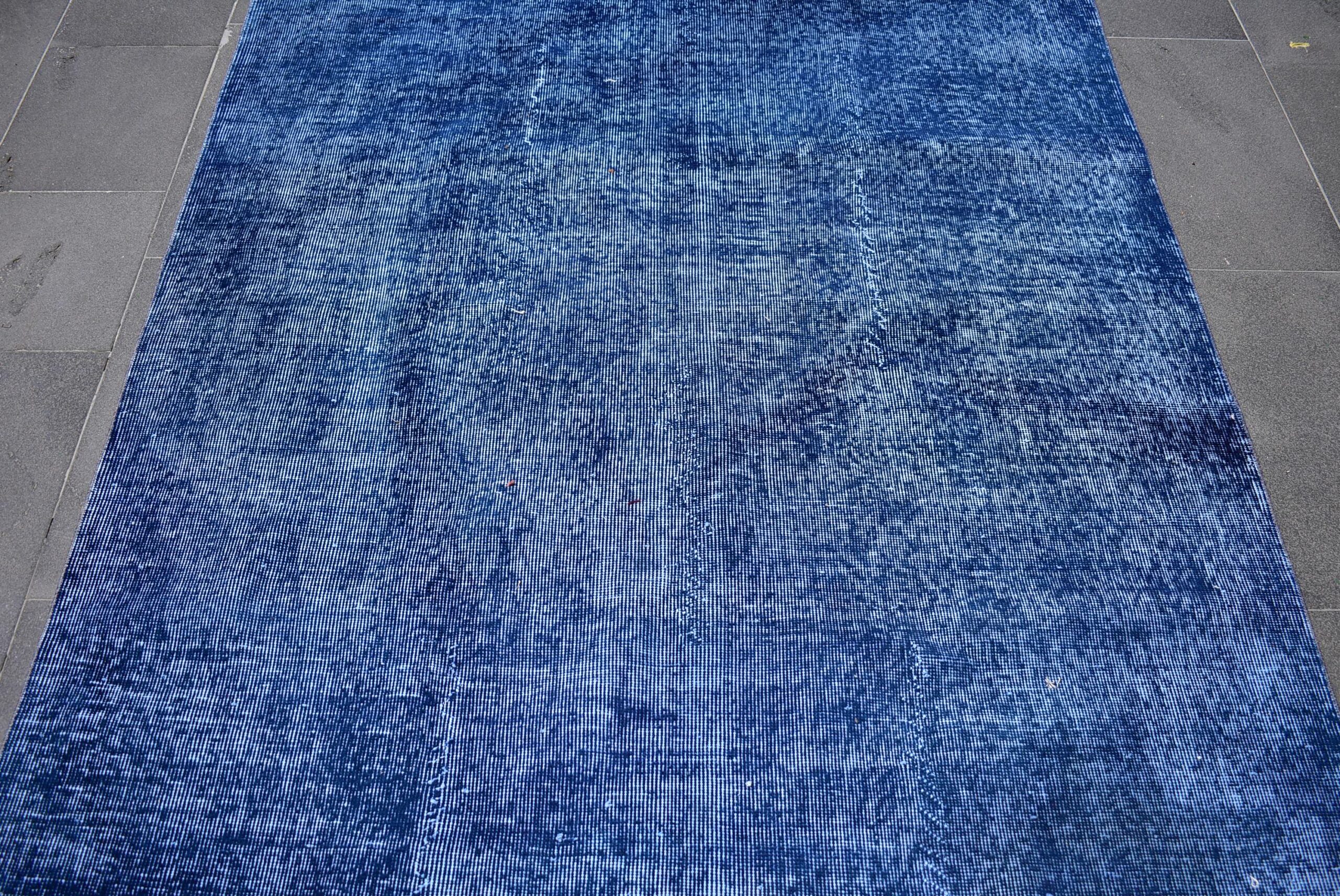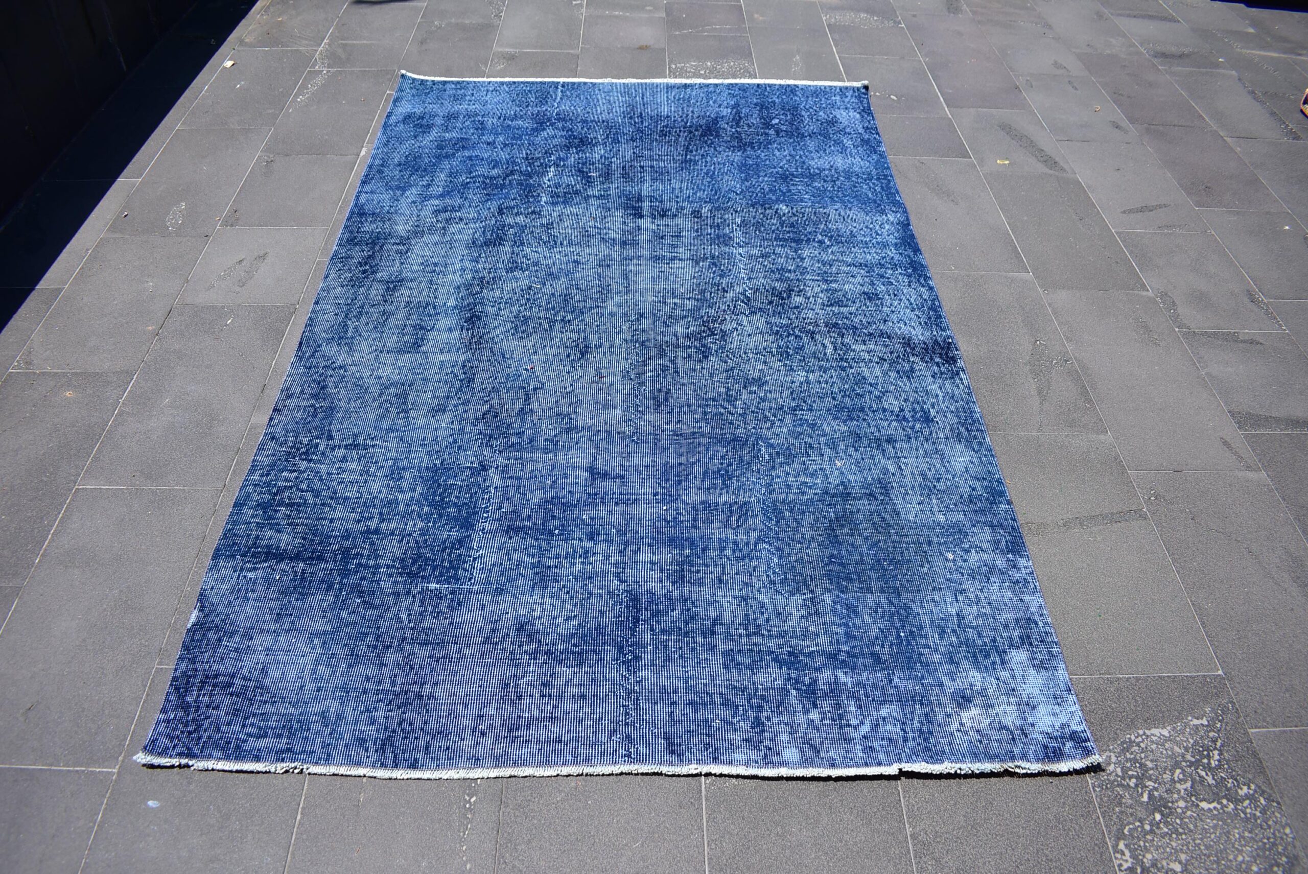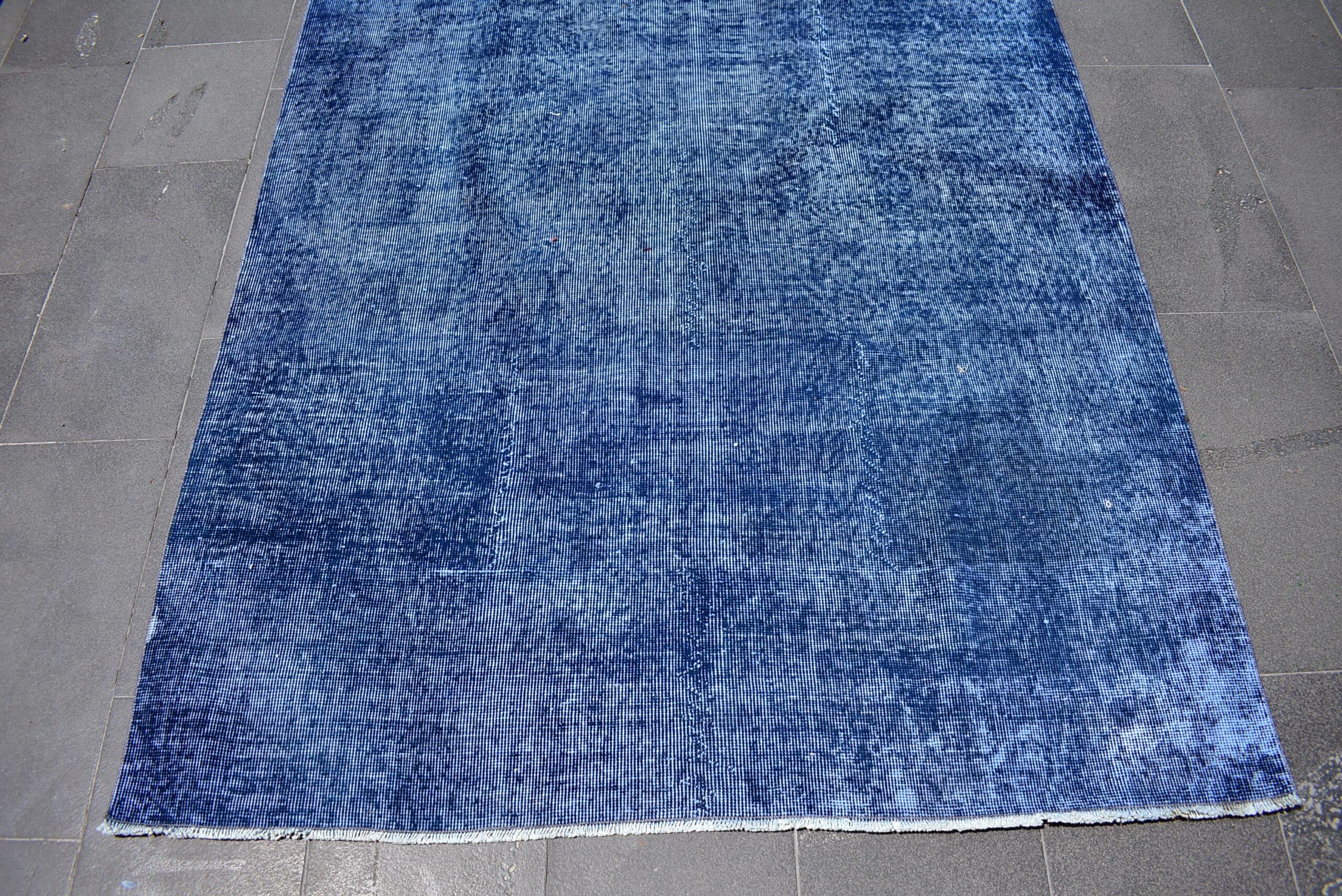 This is a vintage overdyed rug made through over-dyeing an authentic vintage Turkish rug using natural (vegetable) dyes. This rug originated in a small village in Turkey where it was hand-knotted from natural wool (sheep) by skilled Anatolian women during around the 1980s. Natural materials are more durable than synthetic materials guaranteeing a rug that can last for years while natural dyes provide colors that gets more beautiful as years pass by especially when in direct sunlight.