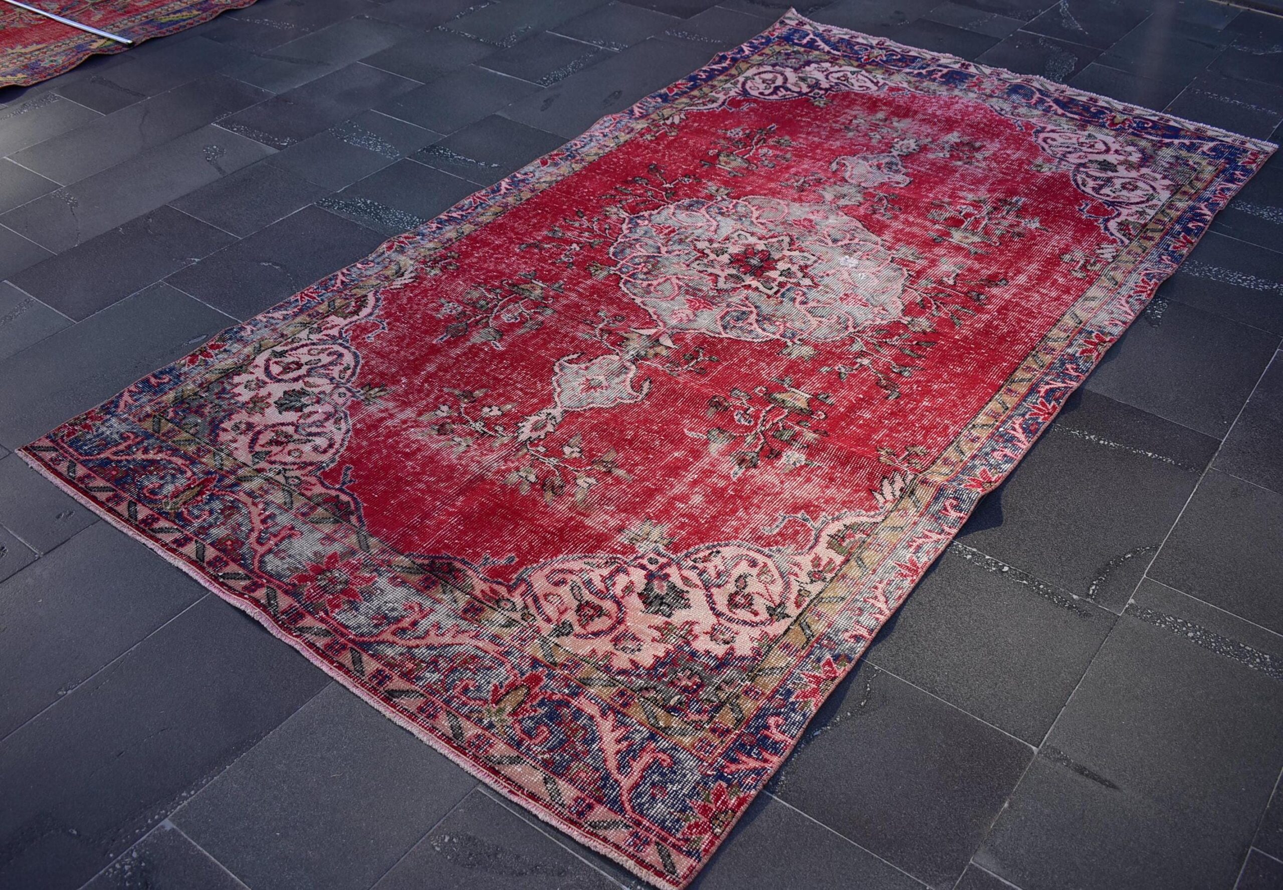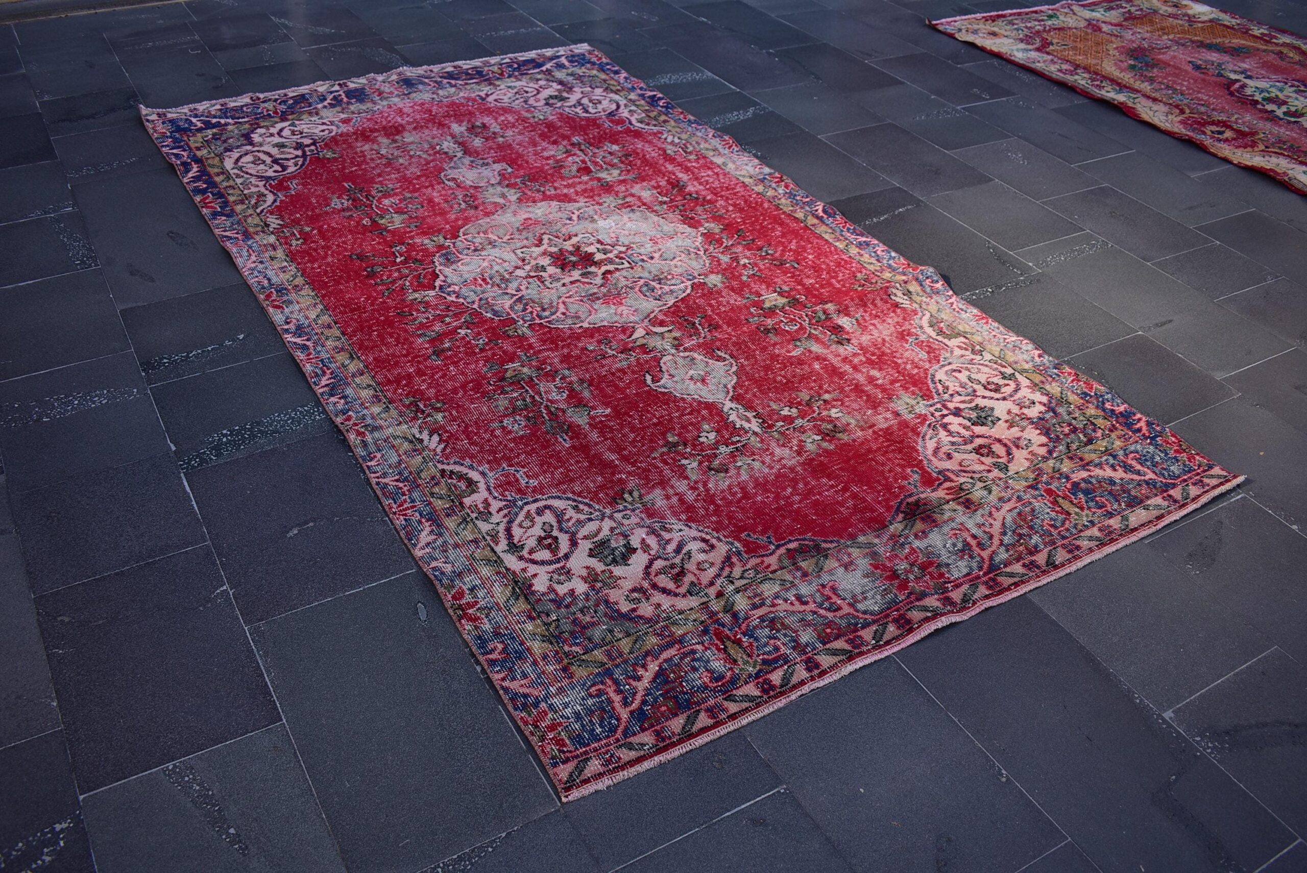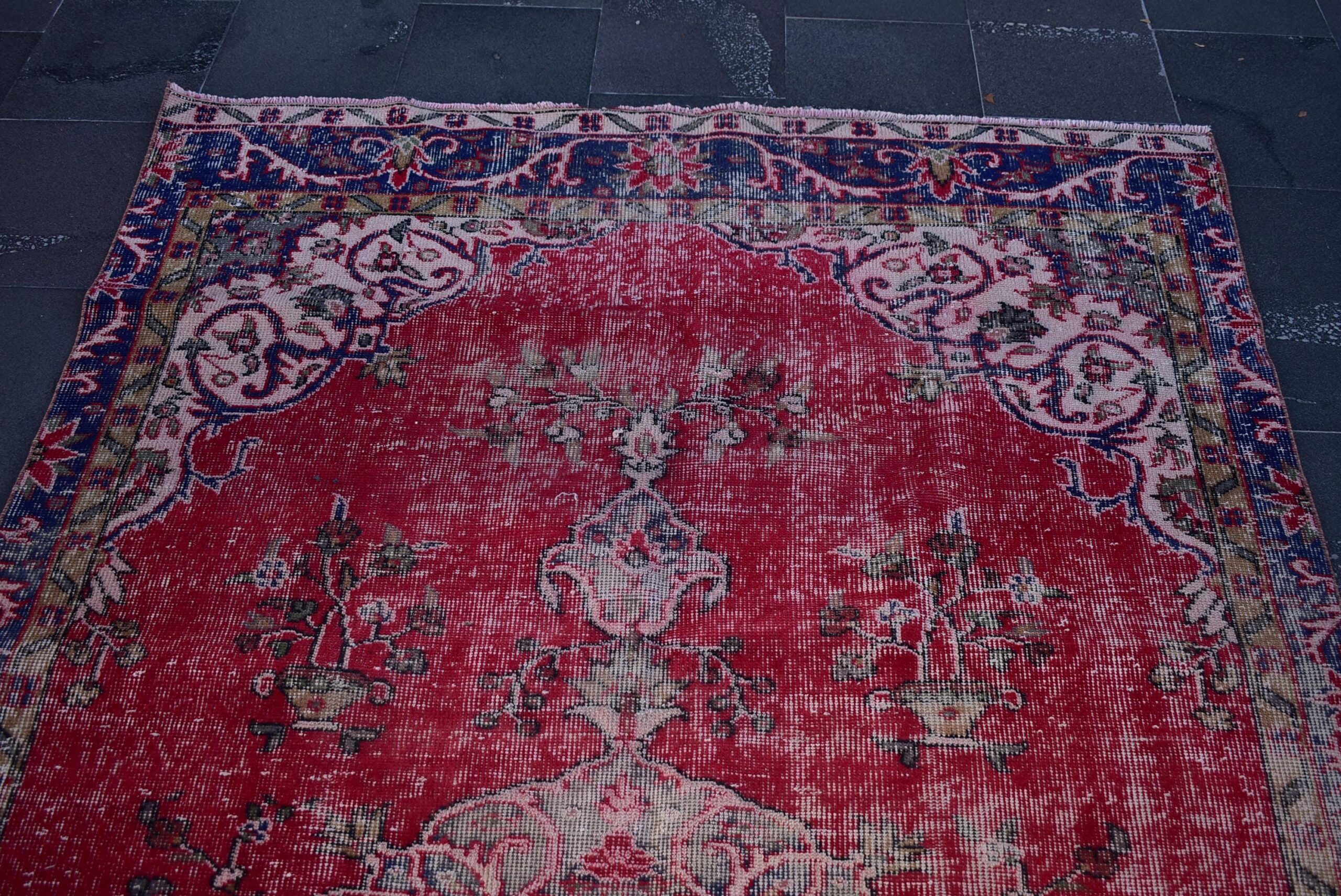 This is a vintage Turkish rug hand-knotted in a small village in Turkey by skilled Anatolian women during around the 1990s. It is made from natural wool (sheep) and dyed using all-natural (vegetable) dyes. Natural materials are more durable than synthetic materials guaranteeing a rug that can last for years while natural dyes provide colors that gets more beautiful as years pass by especially when in direct sunlight.