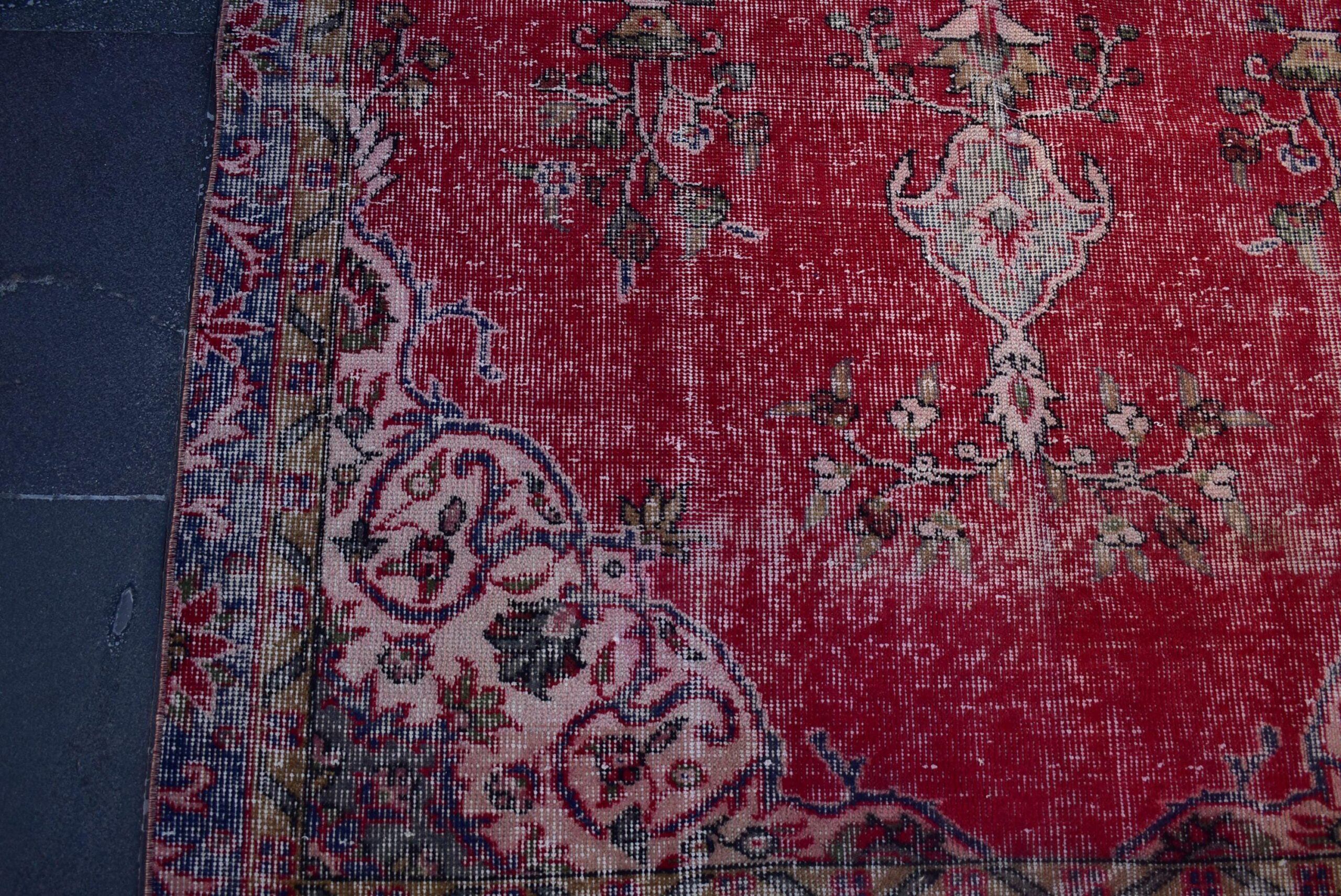 Pretty and one-of-a-kind 5 ft. x 9.4 ft. (153 cm x 286 cm) vintage Turkish rug hand-knotted in Turkey from organic wool. This is an authentic vintage Turkish rug from the 1990s that has worn splendidly to perfection.