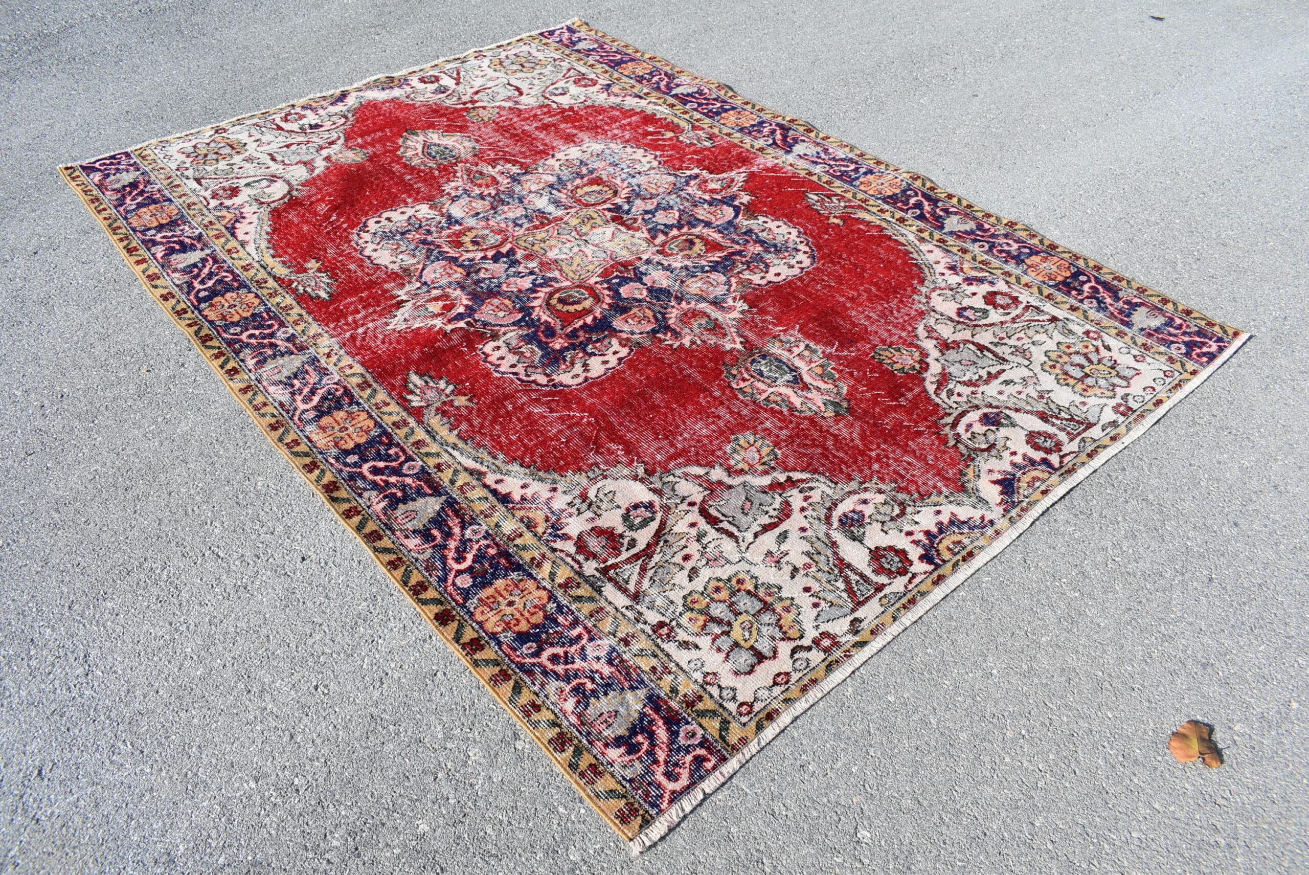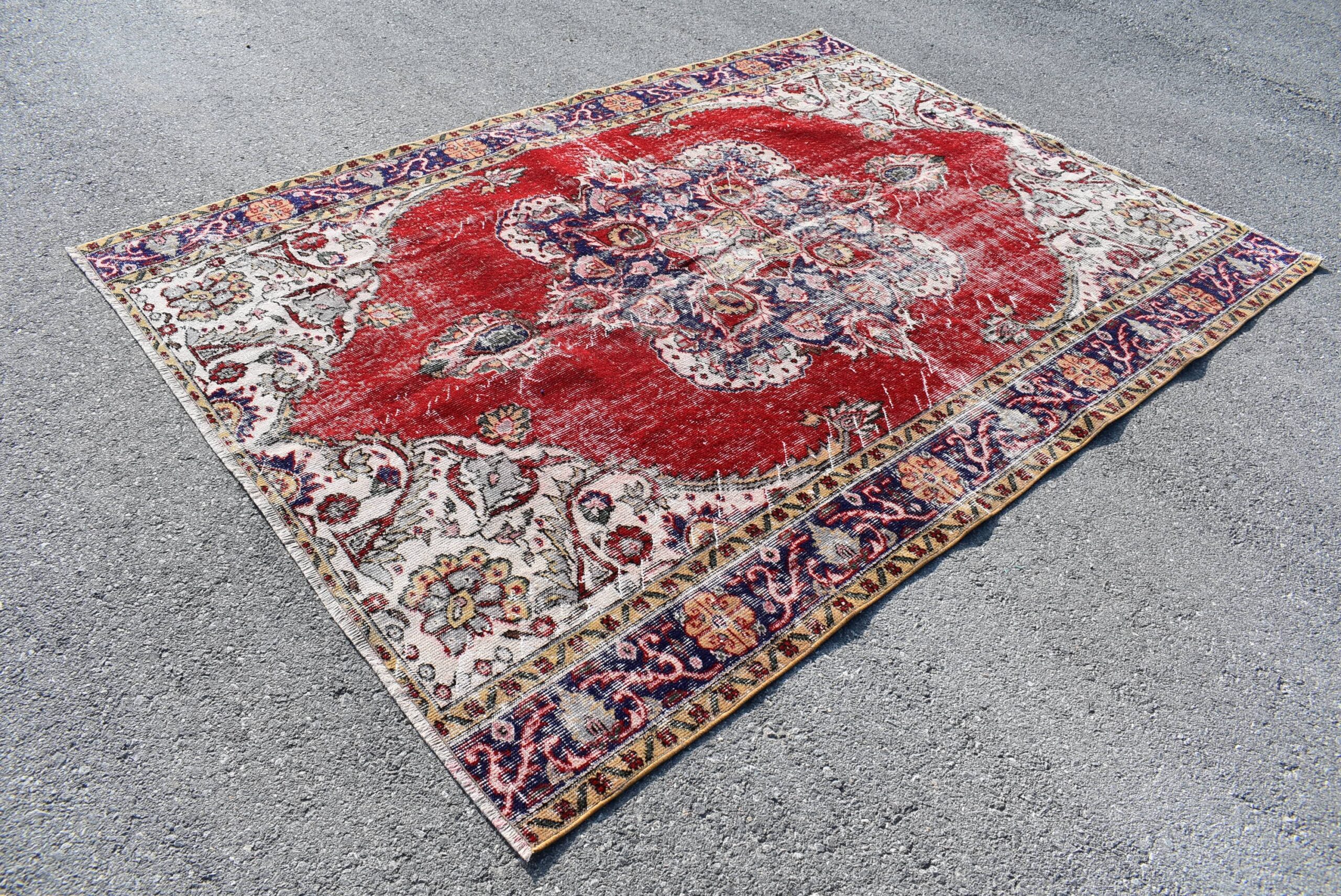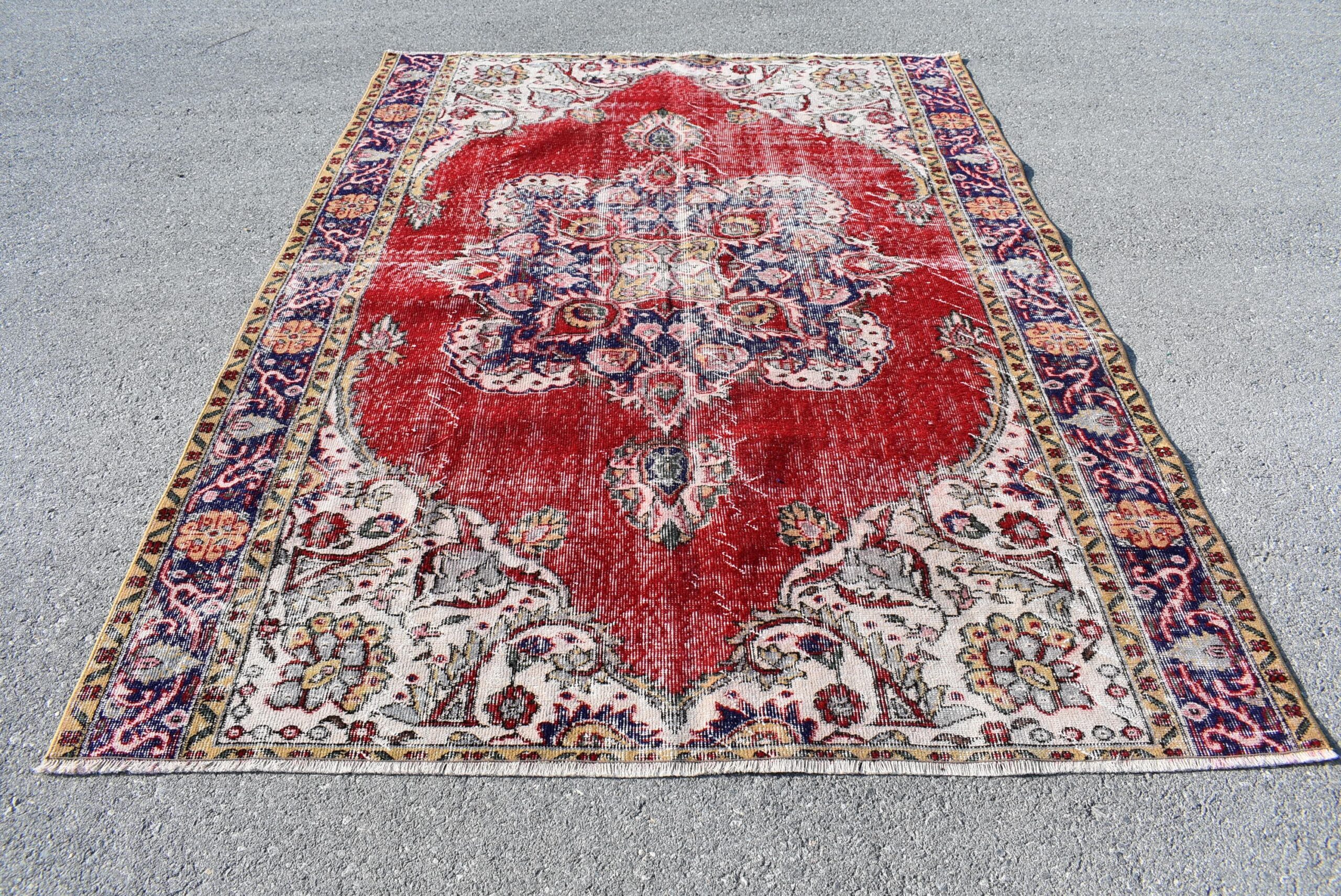 Pretty and one-of-a-kind 6.1 ft. x 8.2 ft. (186 cm x 251 cm) vintage Turkish rug hand-knotted in Turkey from organic wool. This is an authentic vintage Turkish rug from the 1990s that has worn splendidly to perfection.
