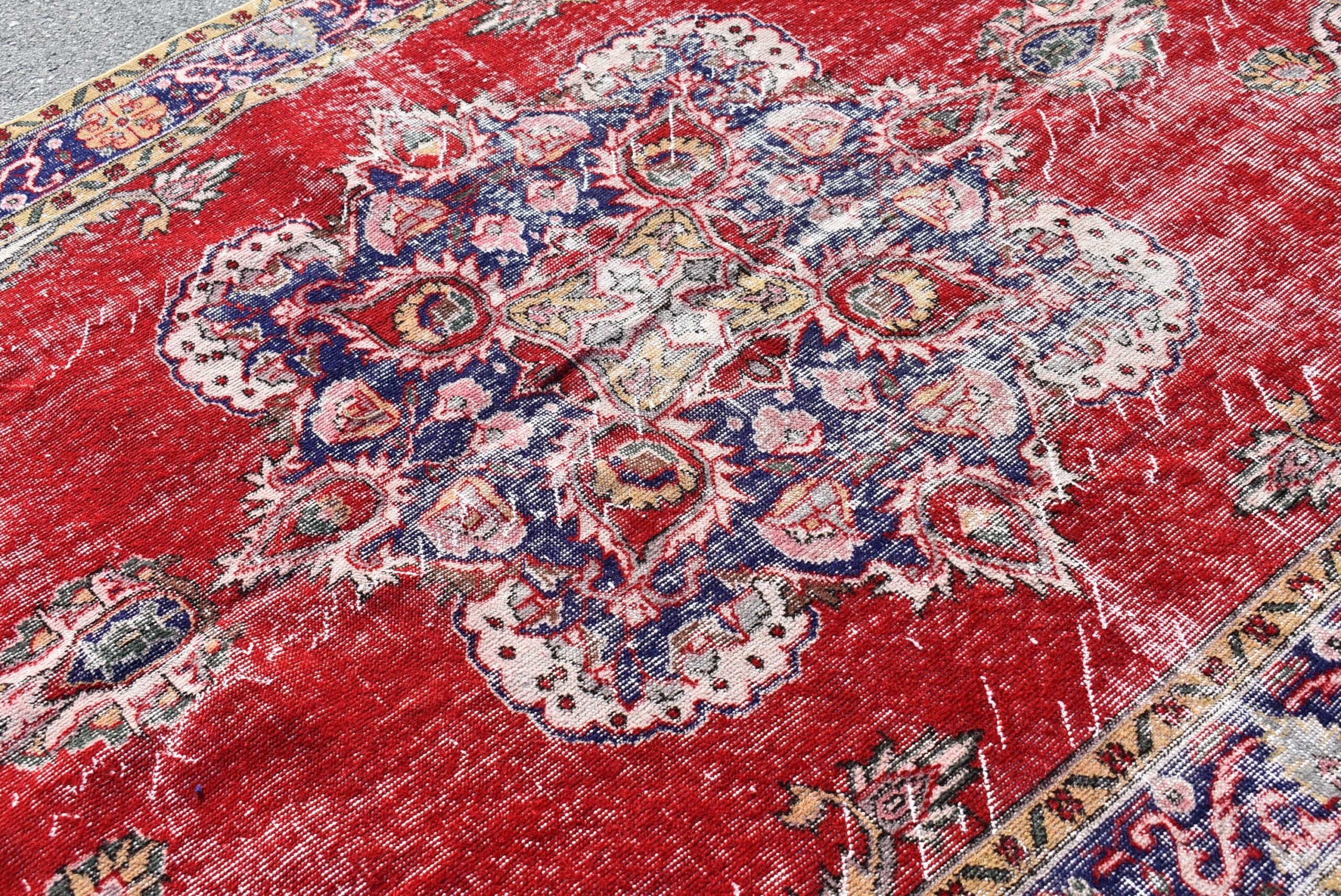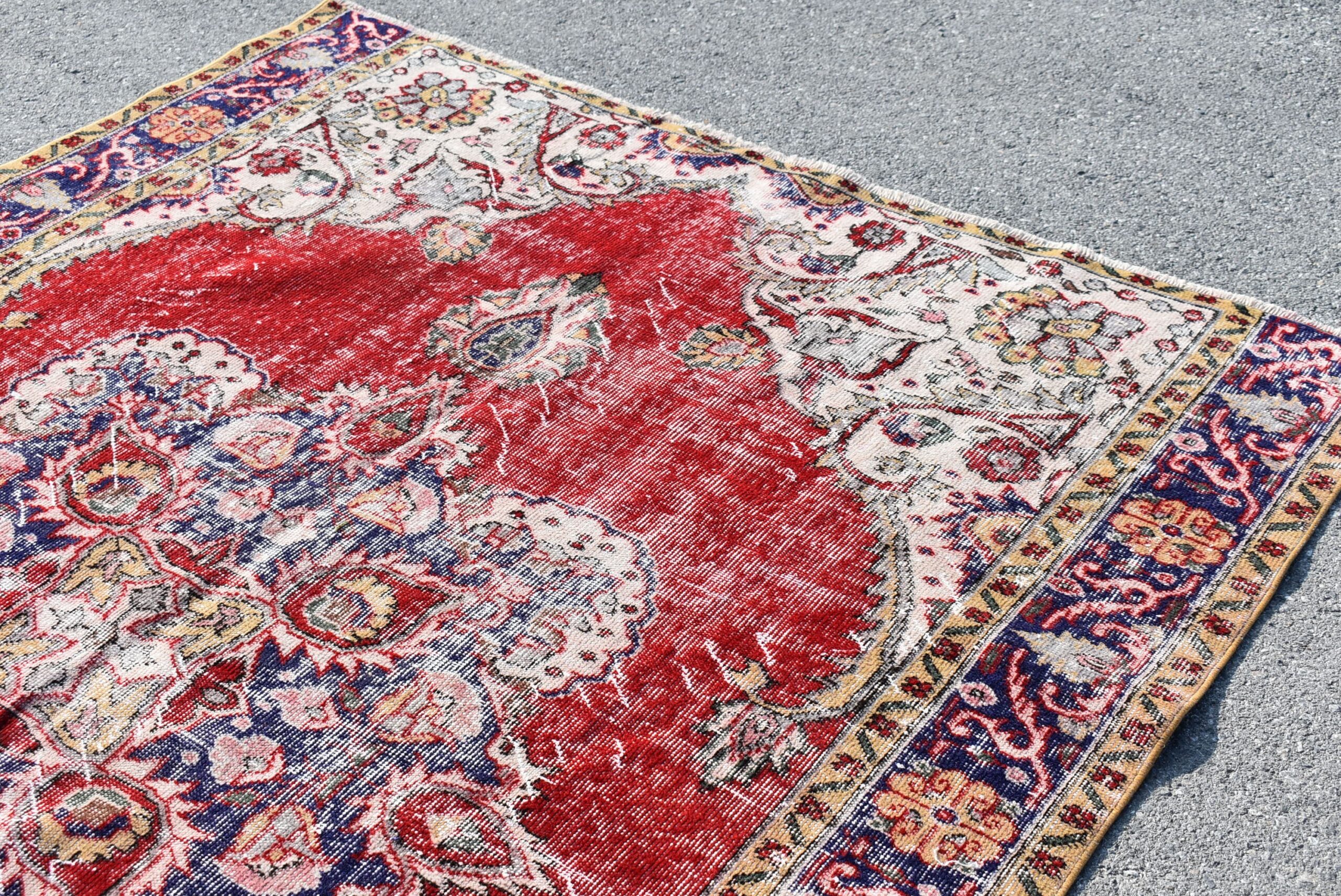 This is a vintage Turkish rug hand-knotted in a small village in Turkey by skilled Anatolian women during around the 1990s. It is made from natural wool (sheep) and dyed using all-natural (vegetable) dyes. Natural materials are more durable than synthetic materials guaranteeing a rug that can last for years while natural dyes provide colors that gets more beautiful as years pass by especially when in direct sunlight.