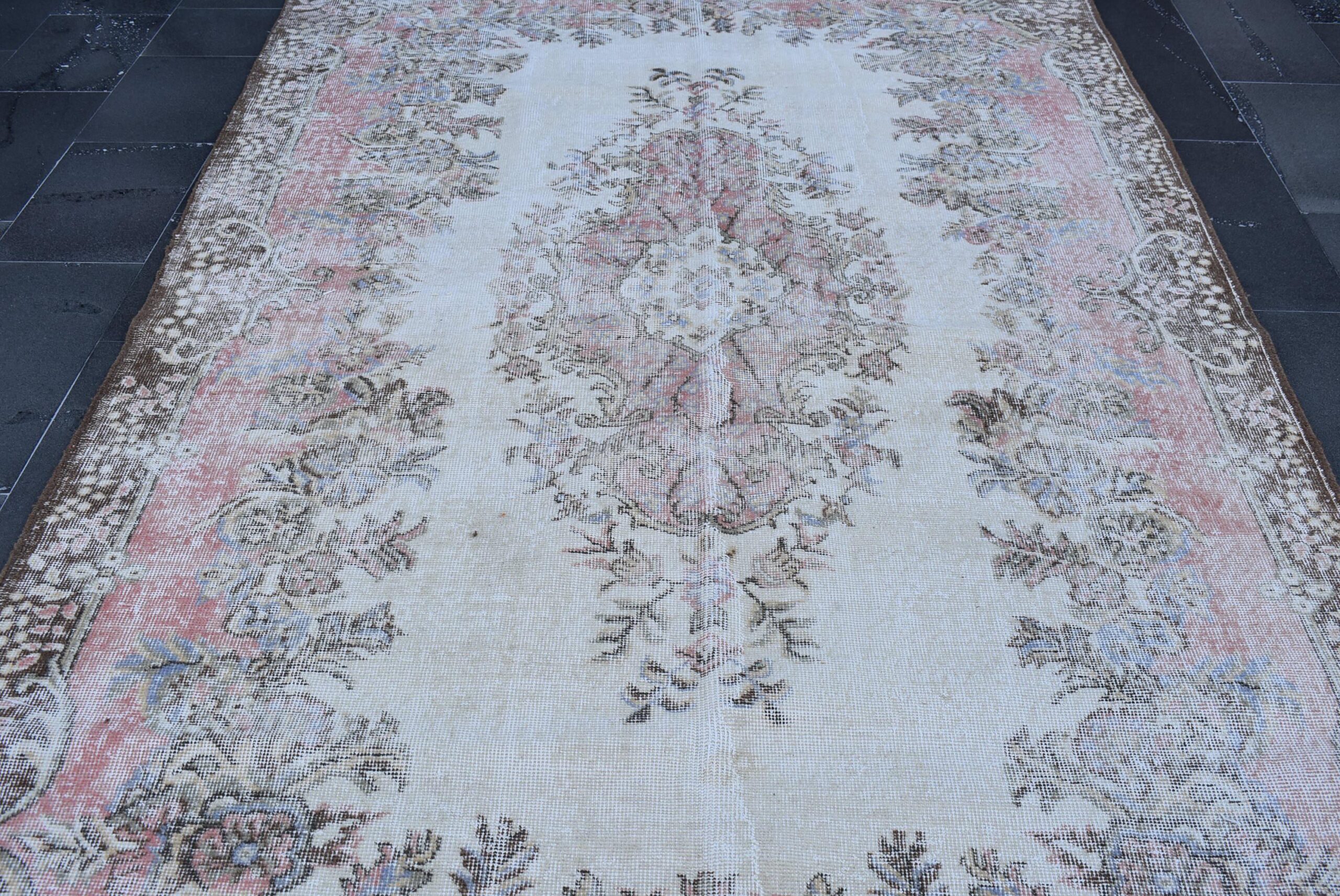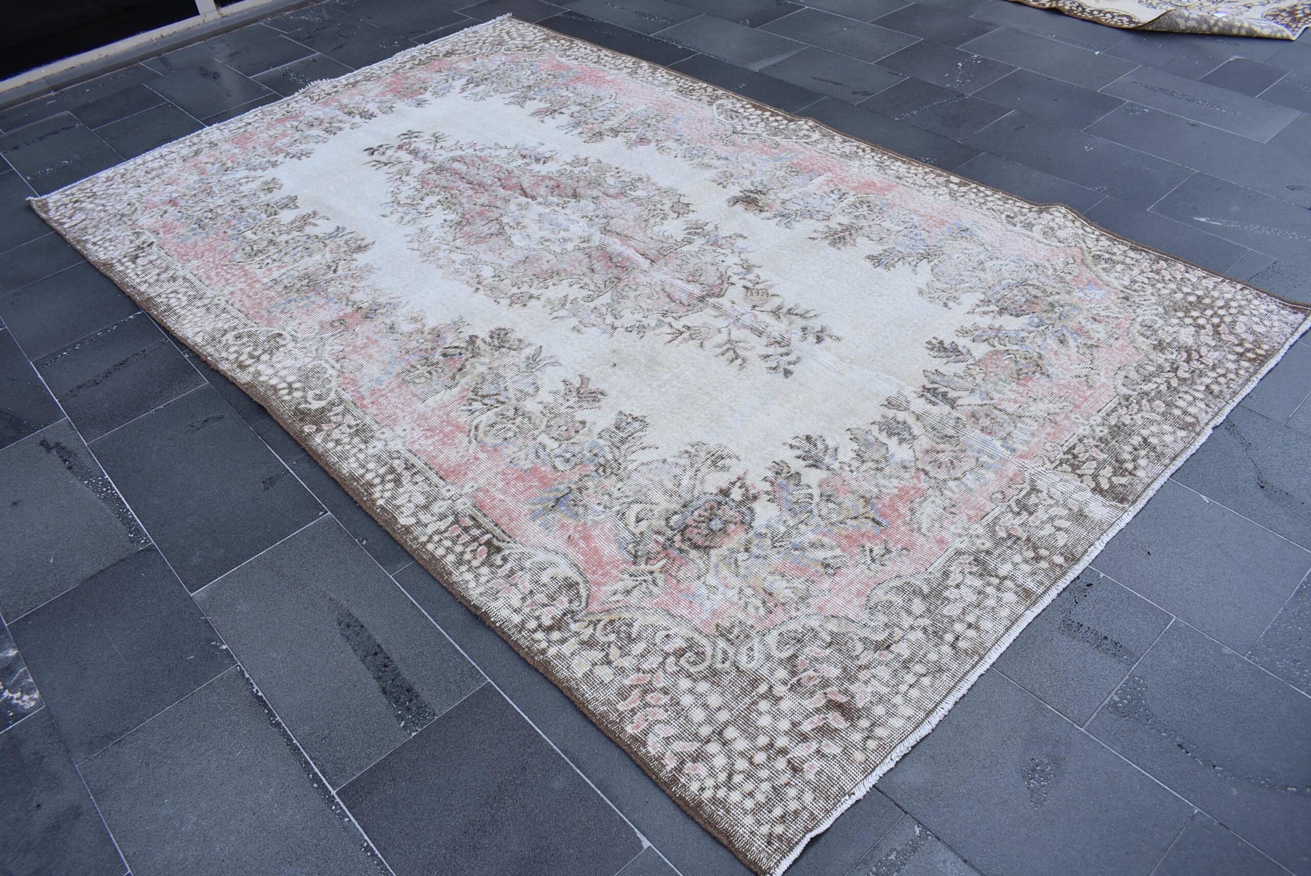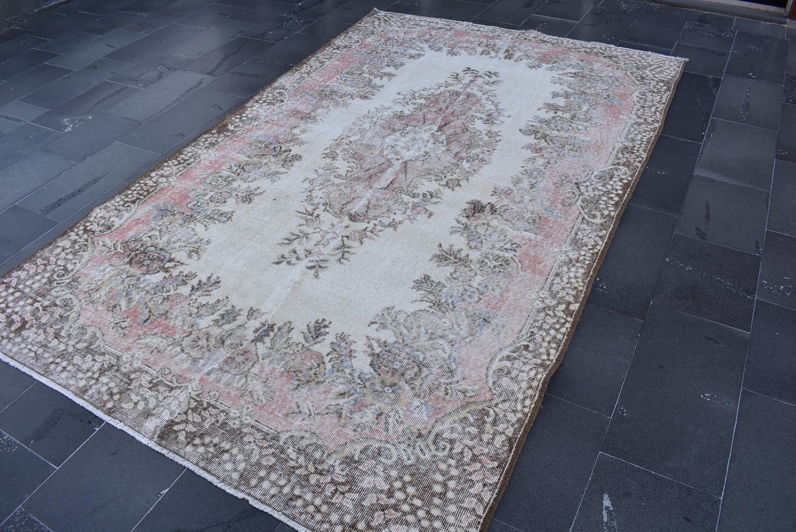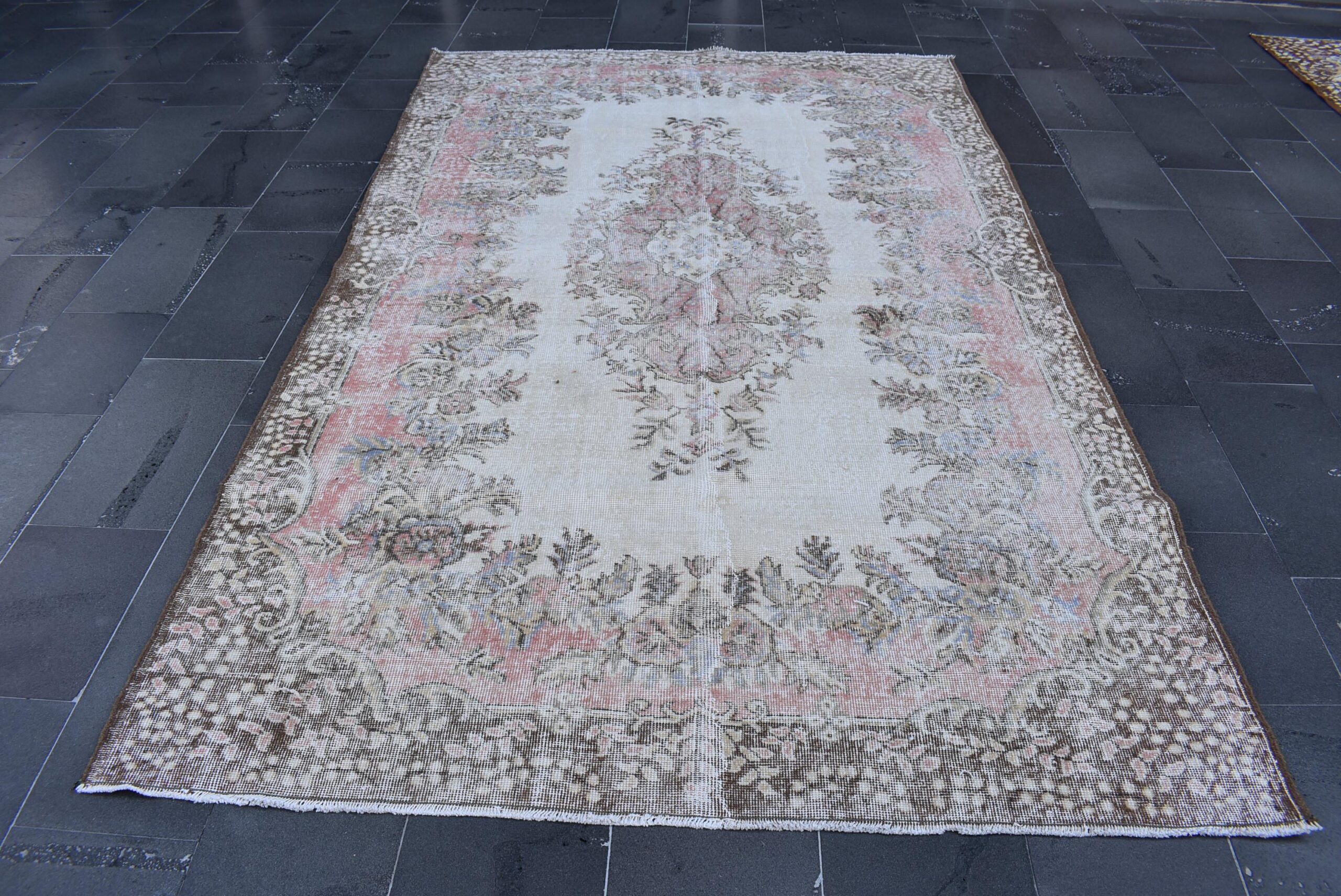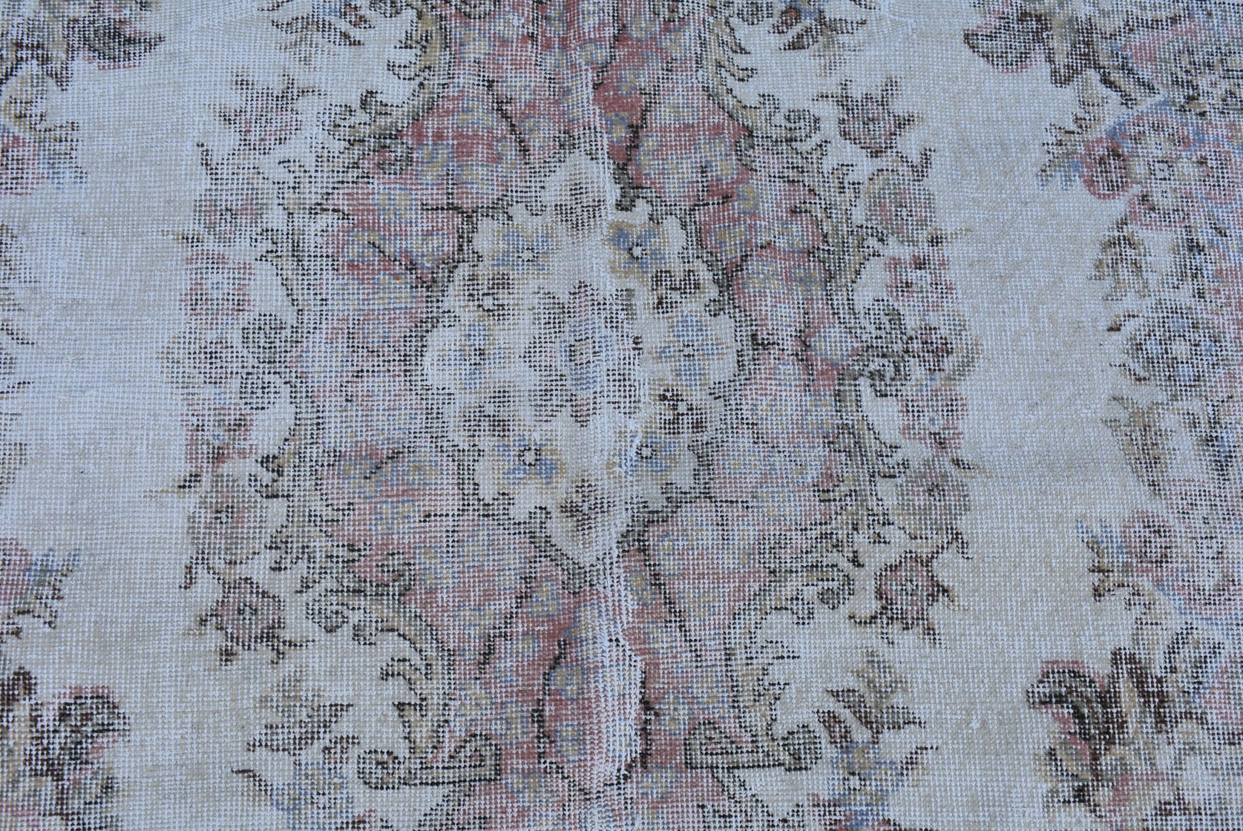 Pretty and one-of-a-kind 6.2 ft. x 10.3 ft. (188 cm x 315 cm) vintage Turkish rug hand-knotted in Turkey from organic wool. This is an authentic vintage Turkish rug from the 1980s that has worn splendidly to perfection.