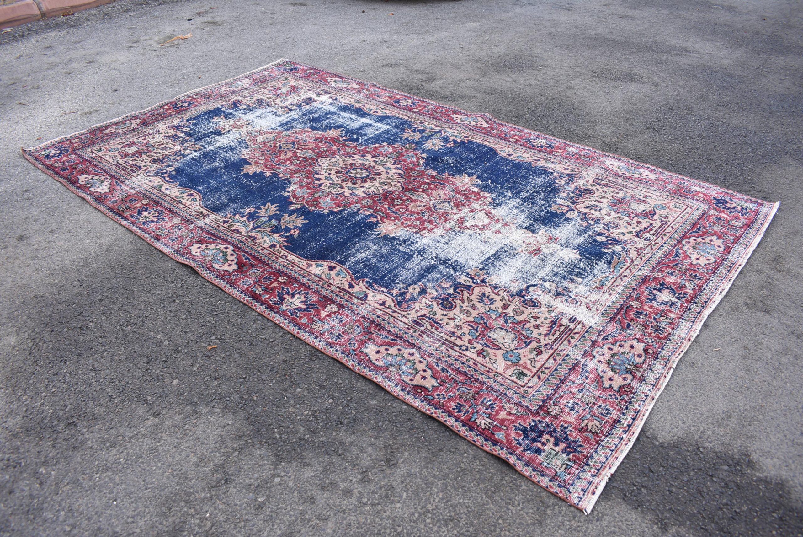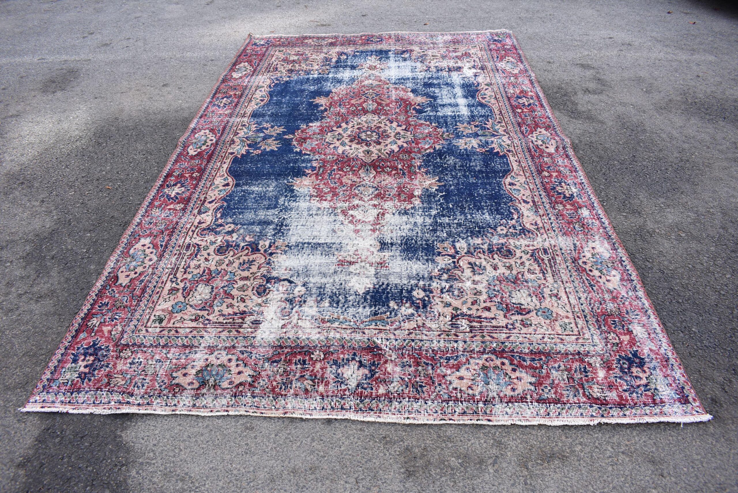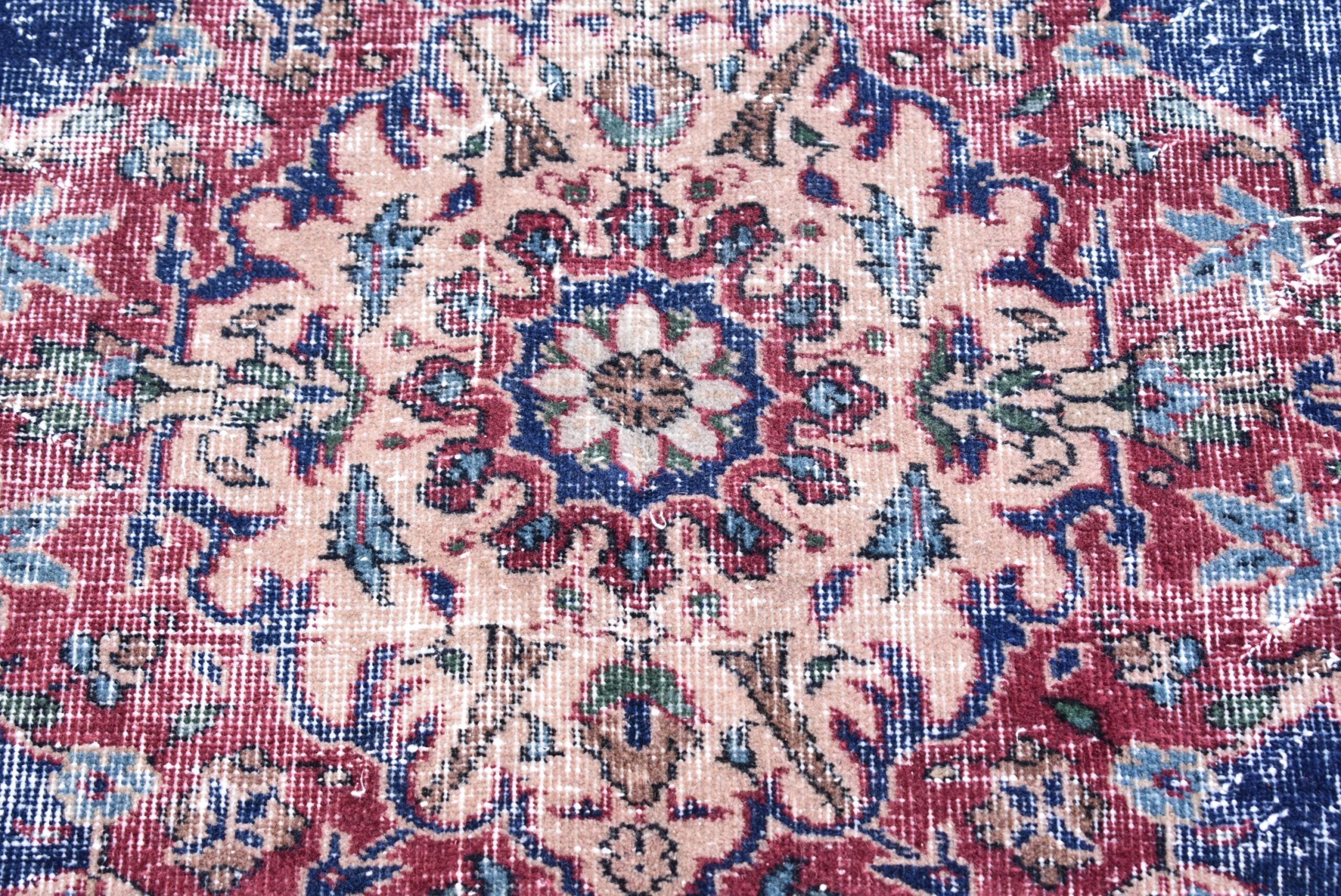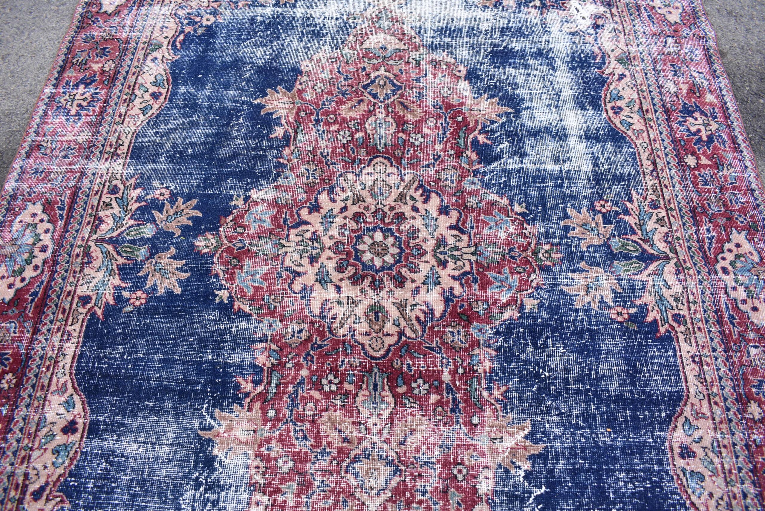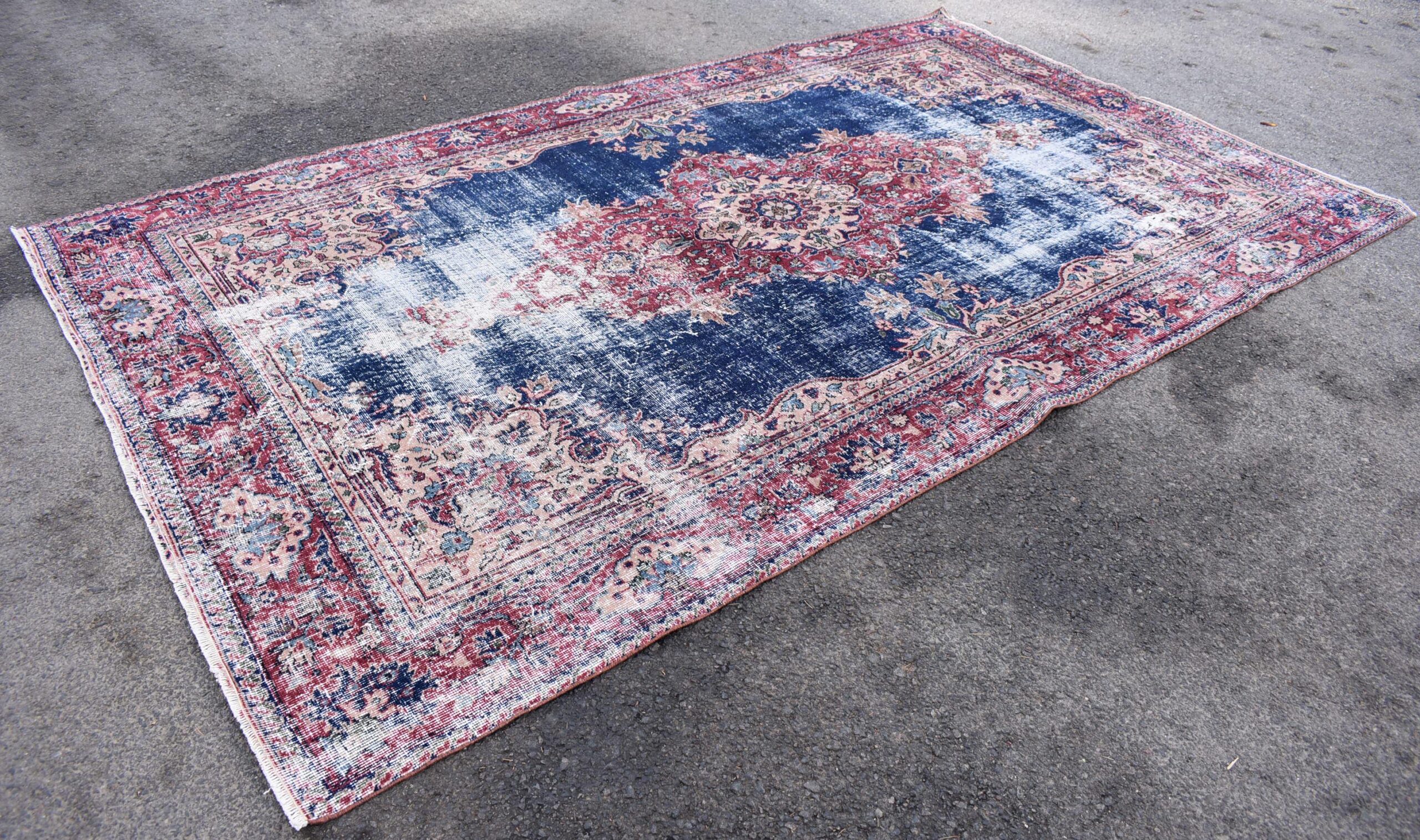 This is a vintage Turkish rug hand-knotted in a small village in Turkey by skilled Anatolian women during around the 1970s. It is made from natural wool (sheep) and dyed using all-natural (vegetable) dyes. Natural materials are more durable than synthetic materials guaranteeing a rug that can last for years while natural dyes provide colors that gets more beautiful as years pass by especially when in direct sunlight.