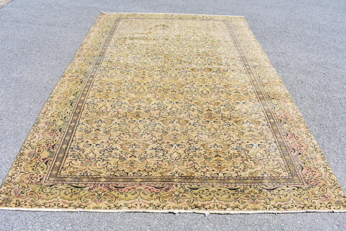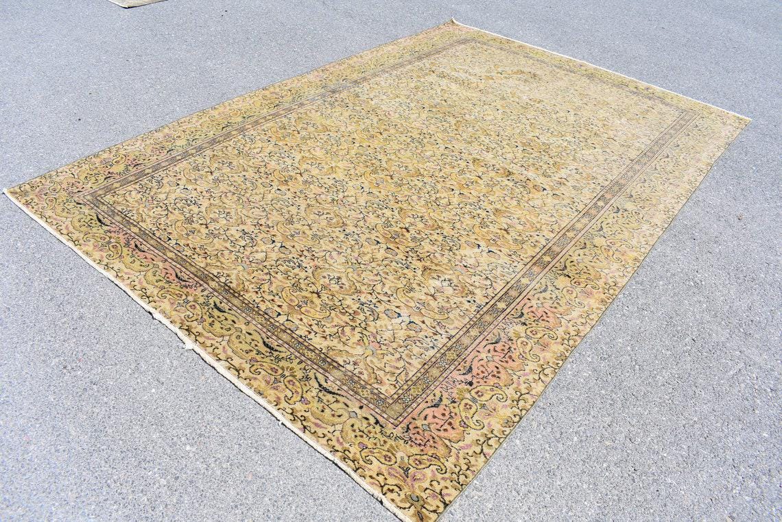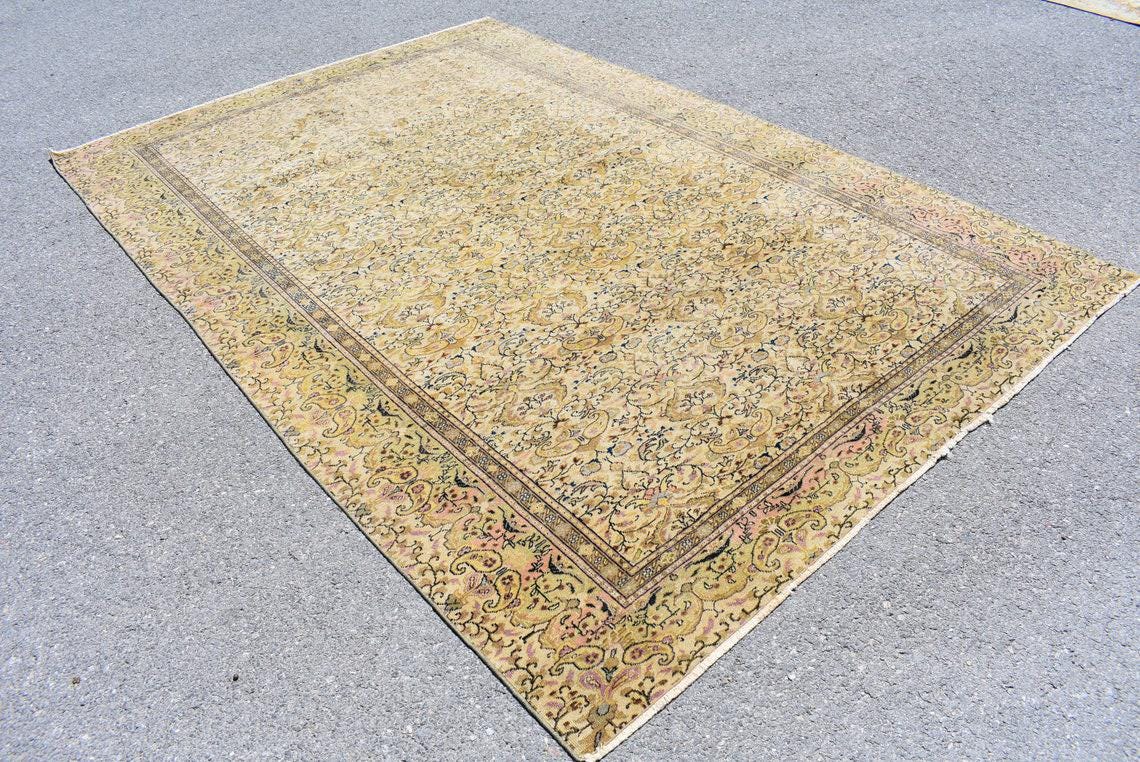 Lovely and unique 6.5 ft. x 9.6 ft. (197 cm x 292 cm) vintage Turkish rug hand-knotted in Turkey from organic wool. This is an authentic vintage Turkish rug from the 1990s that has worn beautifully to perfection.