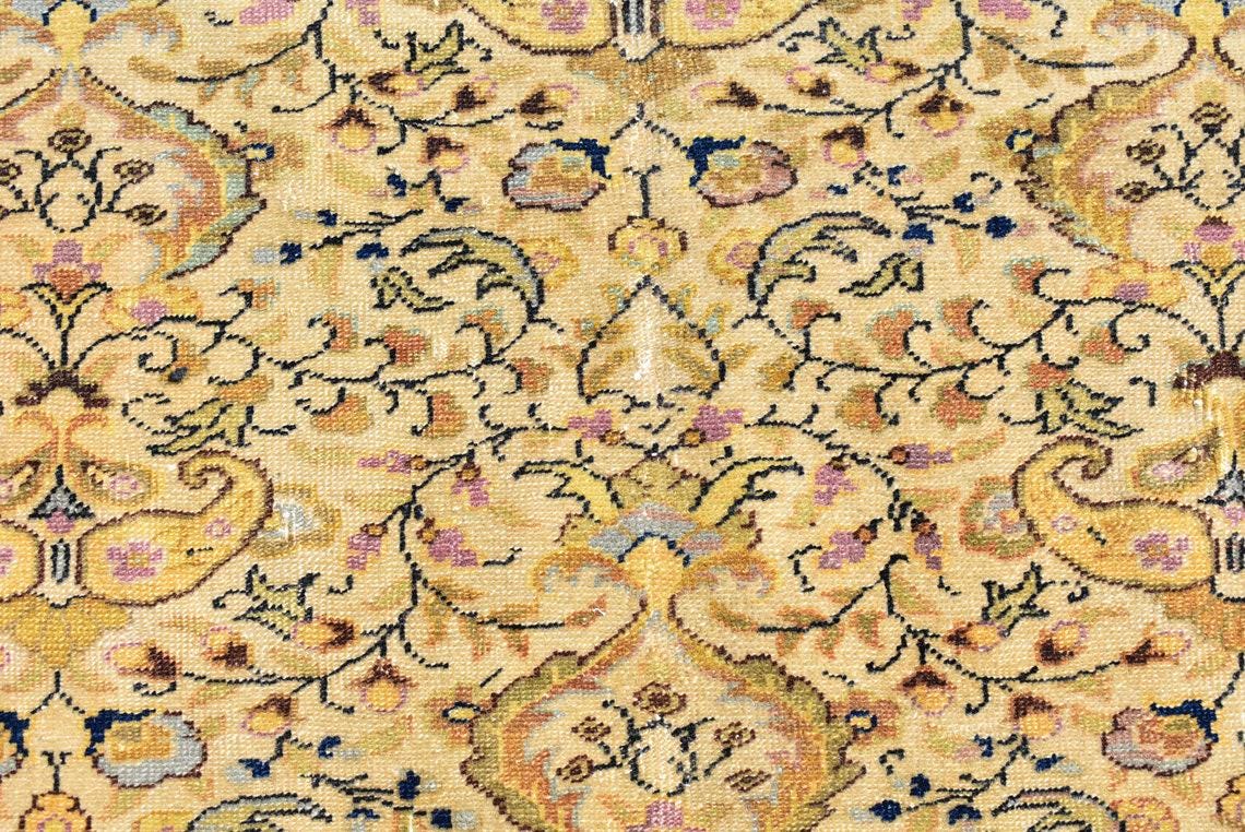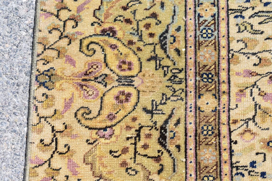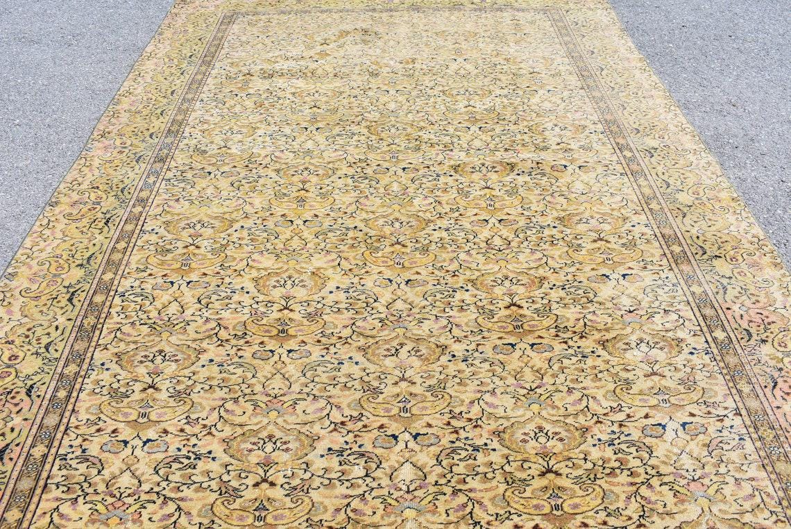 This is a vintage Turkish rug hand-knotted in a small village in Turkey by skilled Anatolian women during around the 1990s. It is made from natural wool (sheep) and dyed using all-natural (vegetable) dyes. Natural materials are more durable than synthetic materials guaranteeing a rug that can last for years while natural dyes provide colors that gets more beautiful as years pass by especially when in direct sunlight.
