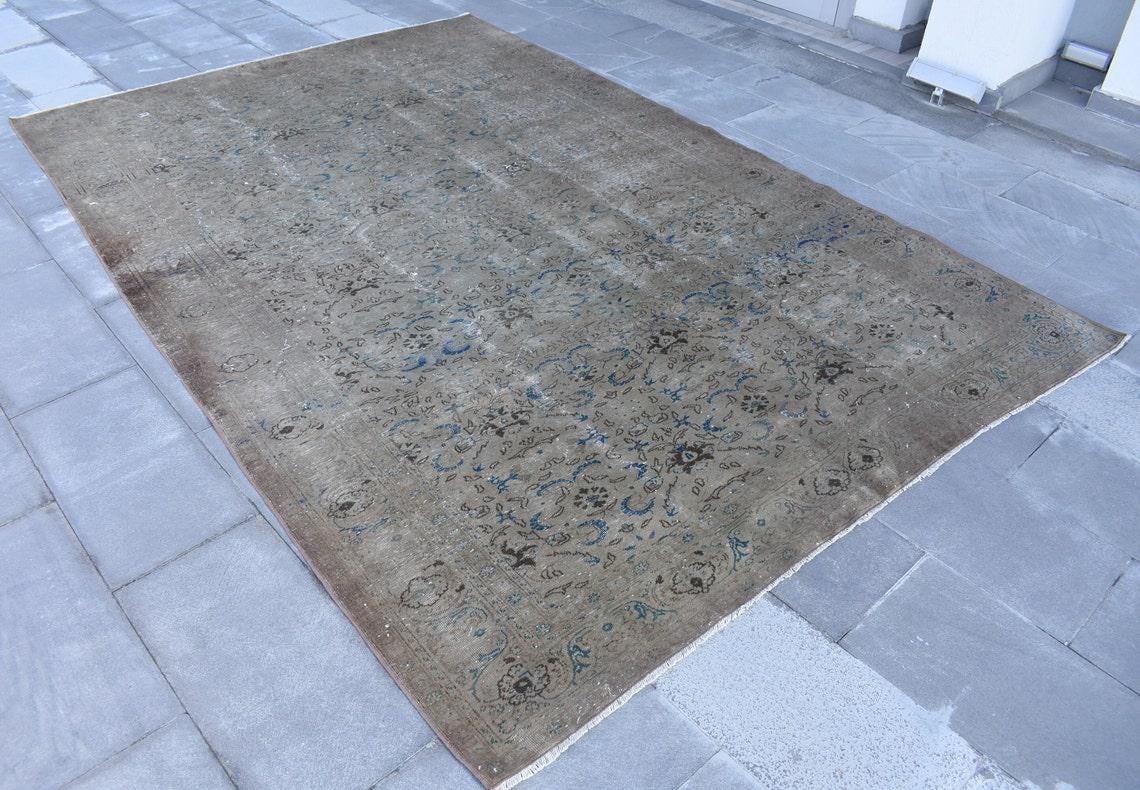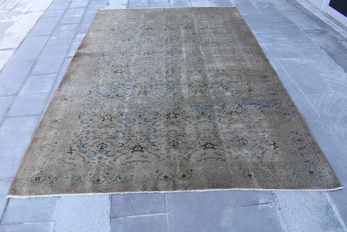This is a vintage Turkish rug hand-knotted in a small village in Turkey by skilled Anatolian women during around the 1990s. It is made from natural wool (sheep) and dyed using all-natural (vegetable) dyes. Natural materials are more durable than synthetic materials guaranteeing a rug that can last for years while natural dyes provide colors that gets more beautiful as years pass by especially when in direct sunlight.