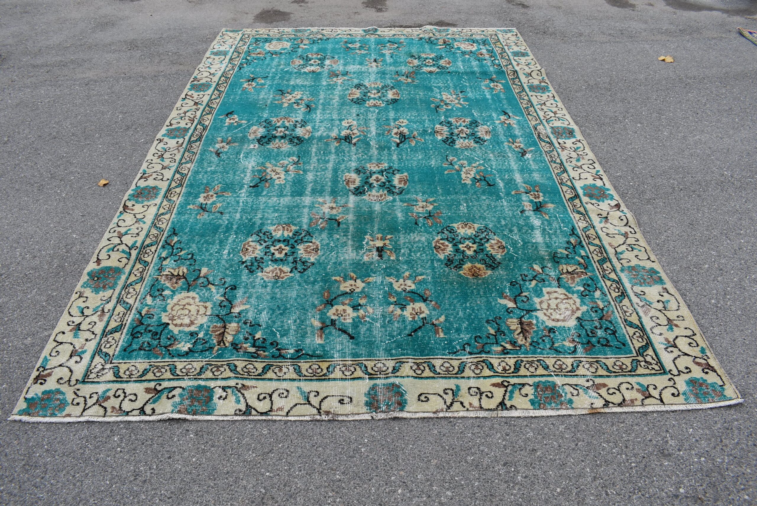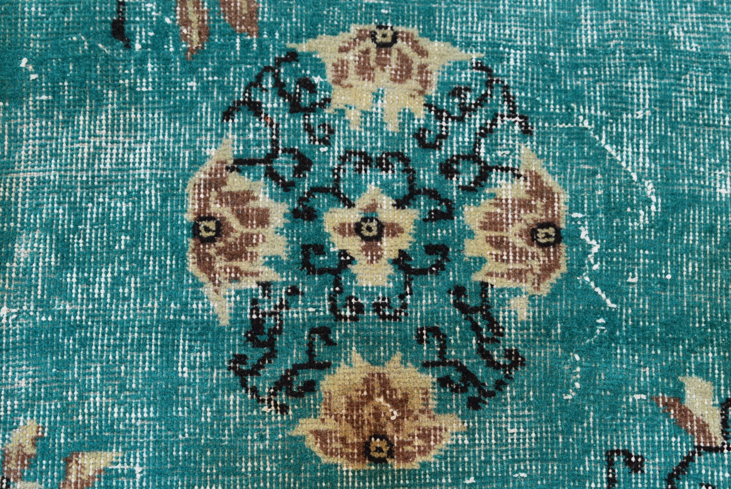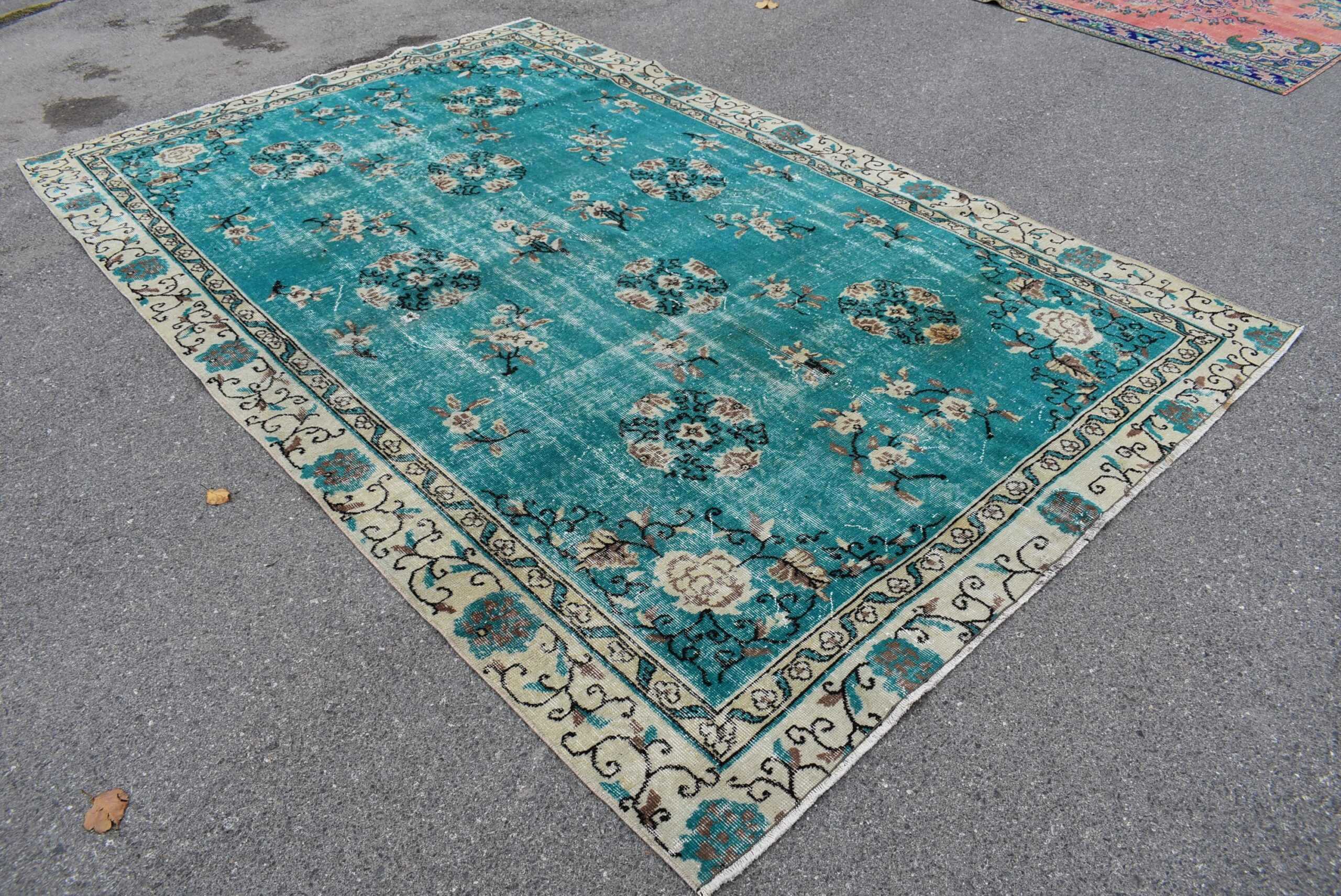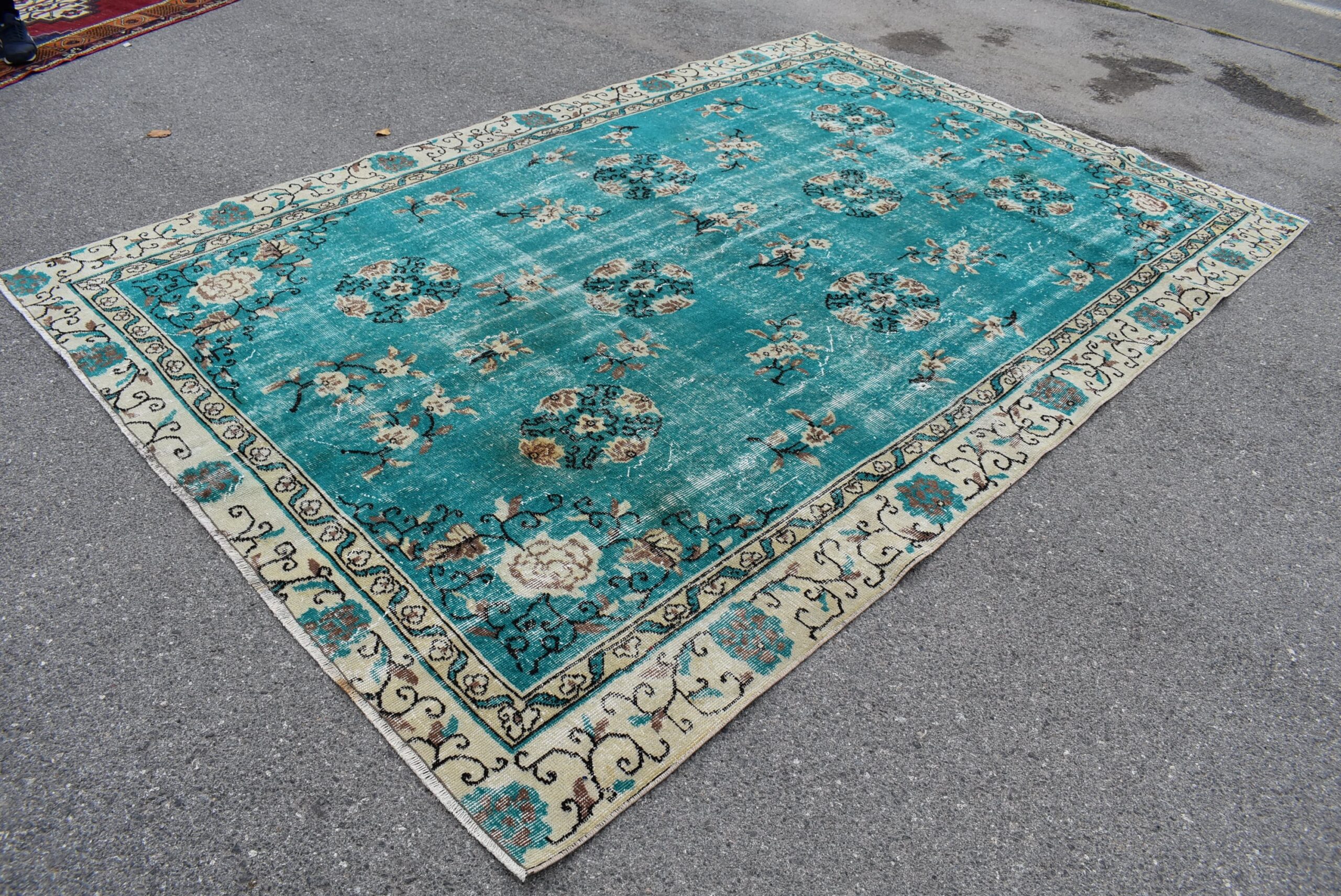 Lovely and unique 6.7 ft. x 10.3 ft. (205 cm x 313 cm) vintage Turkish rug hand-knotted in Turkey from organic wool. This is an authentic vintage Turkish rug from the 1980s that has worn beautifully to perfection.