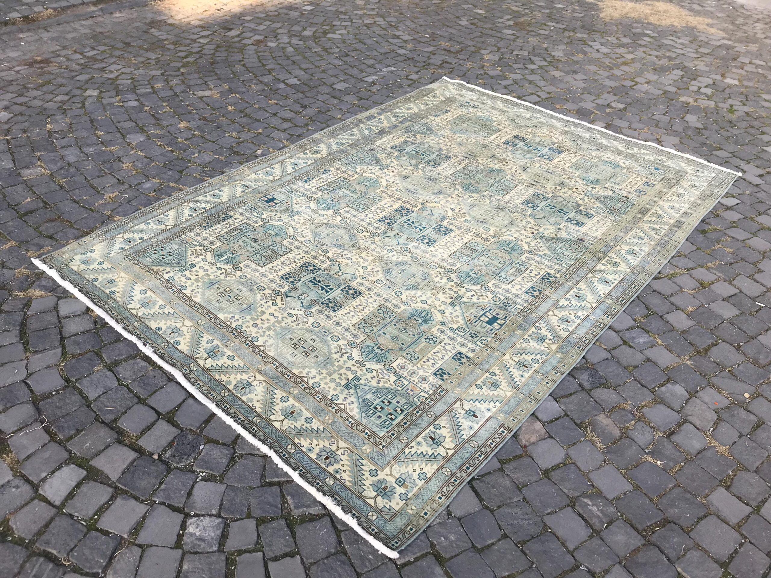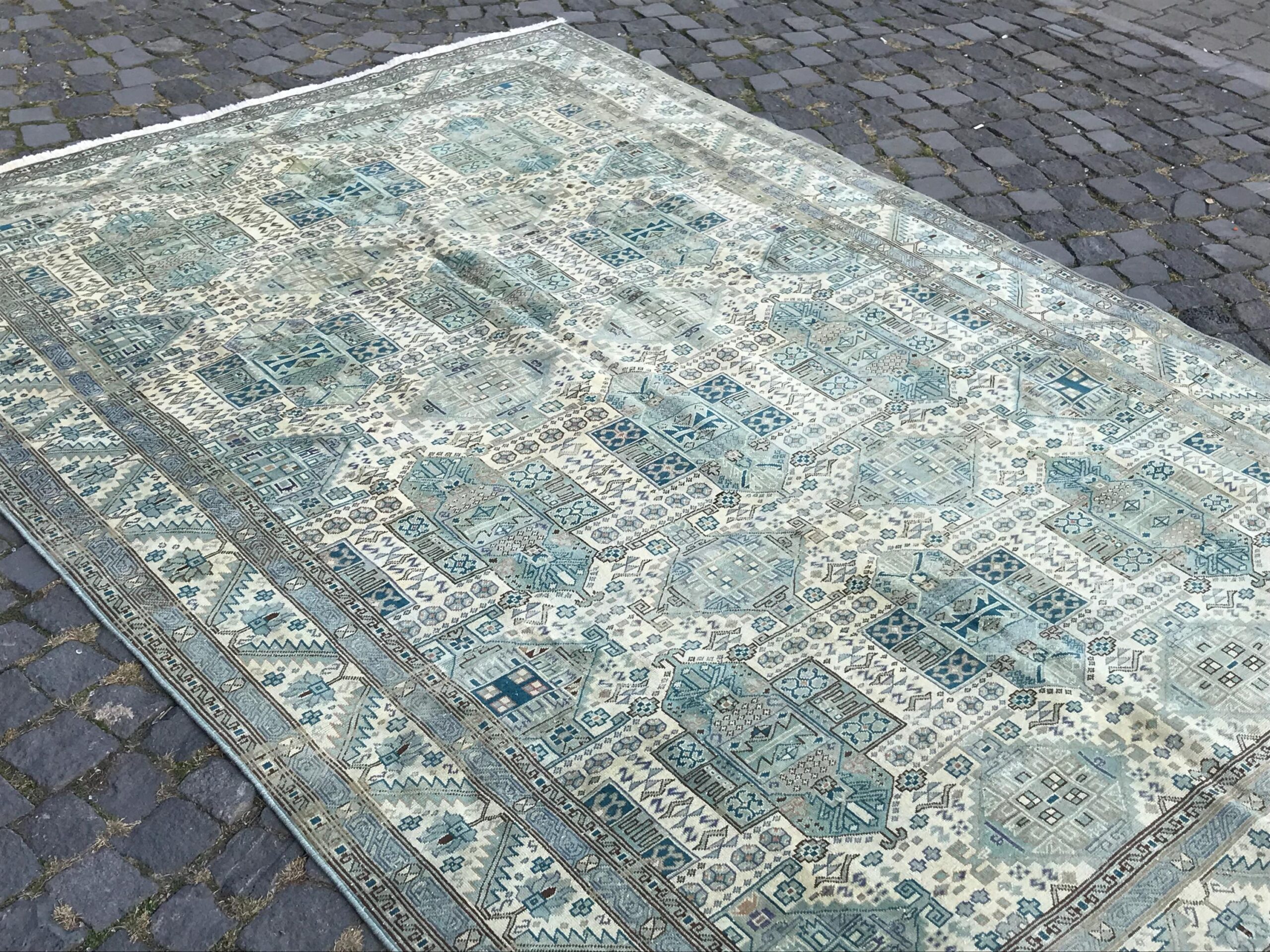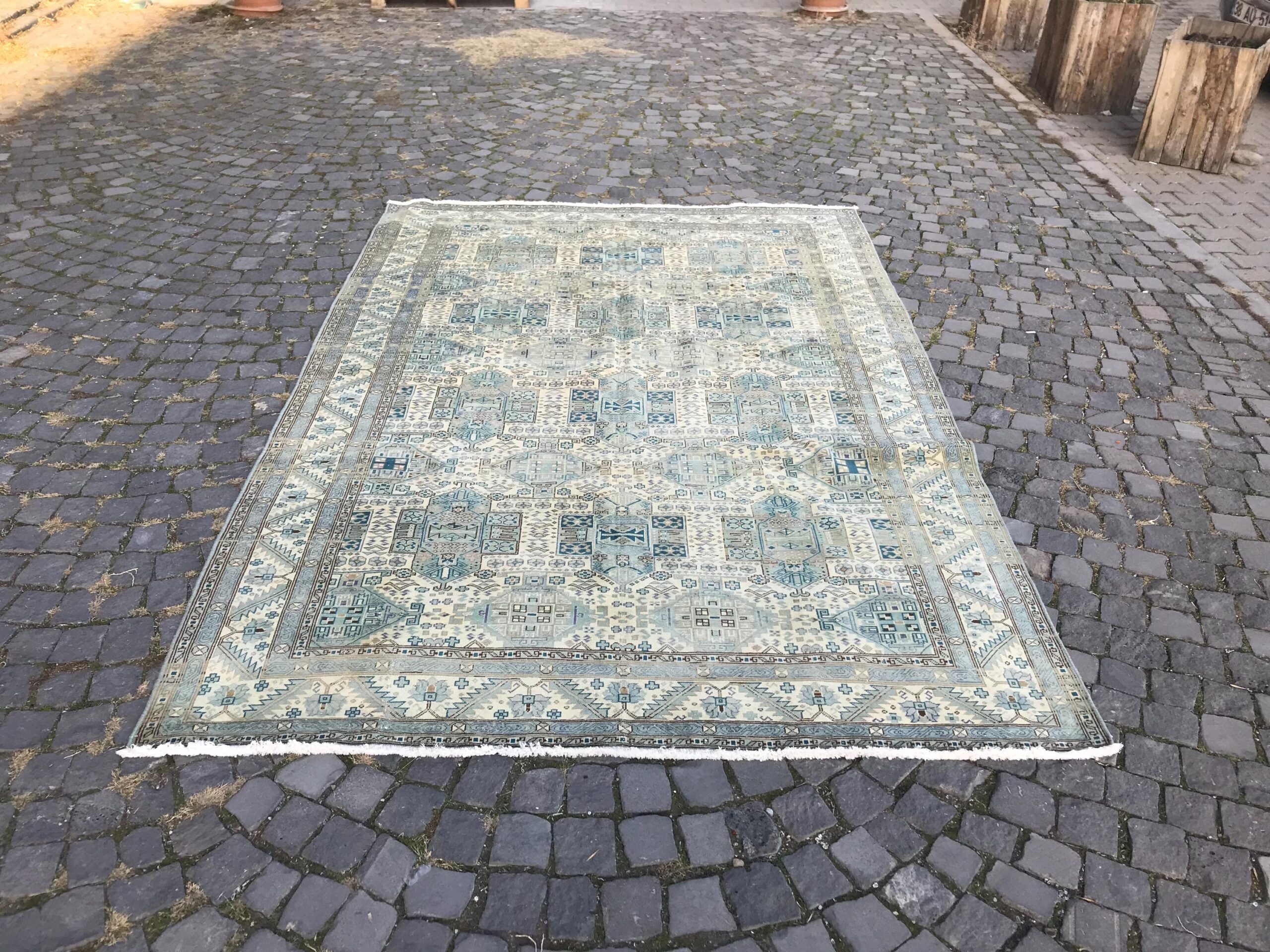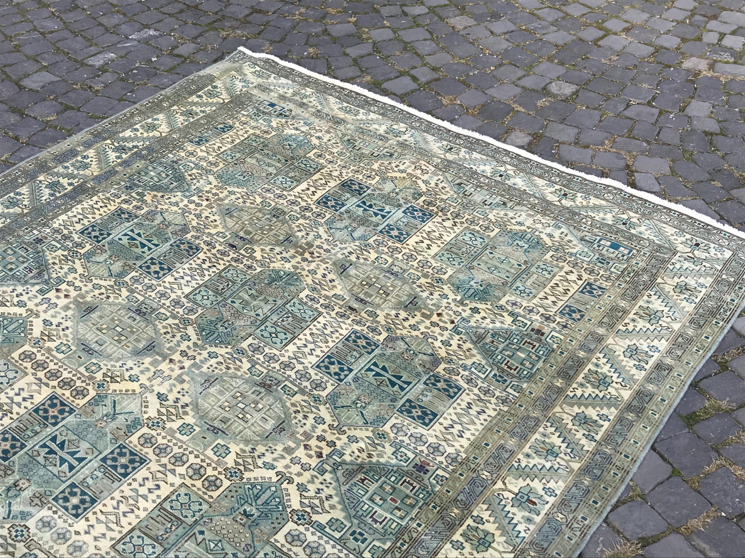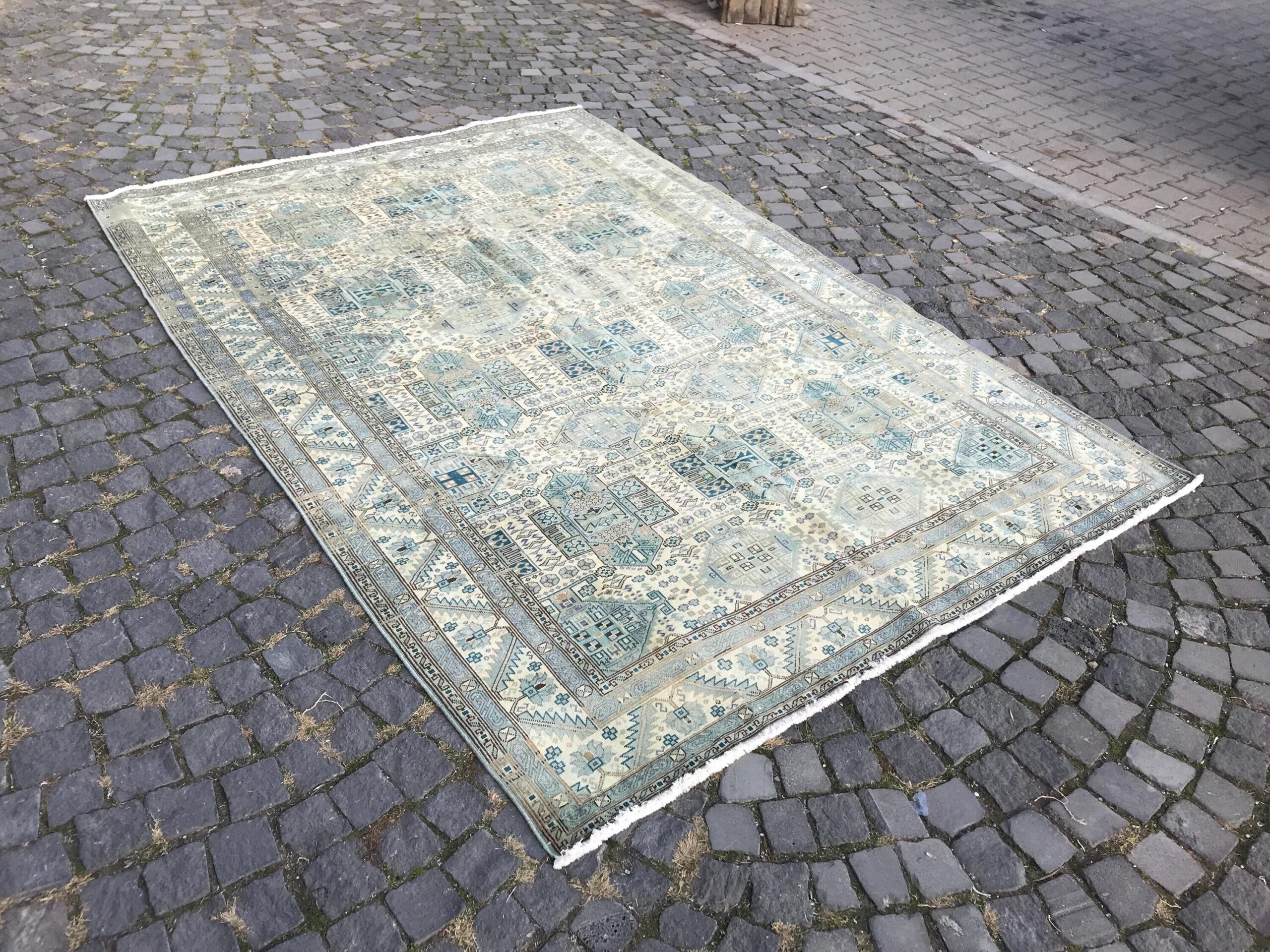 This is a vintage Turkish rug hand-knotted in a small village in Turkey by skilled Anatolian women during around the 1980s. It is made from natural wool (sheep) and dyed using all-natural (vegetable) dyes. Natural materials are more durable than synthetic materials guaranteeing a rug that can last for years while natural dyes provide colors that gets more beautiful as years pass by especially when in direct sunlight.