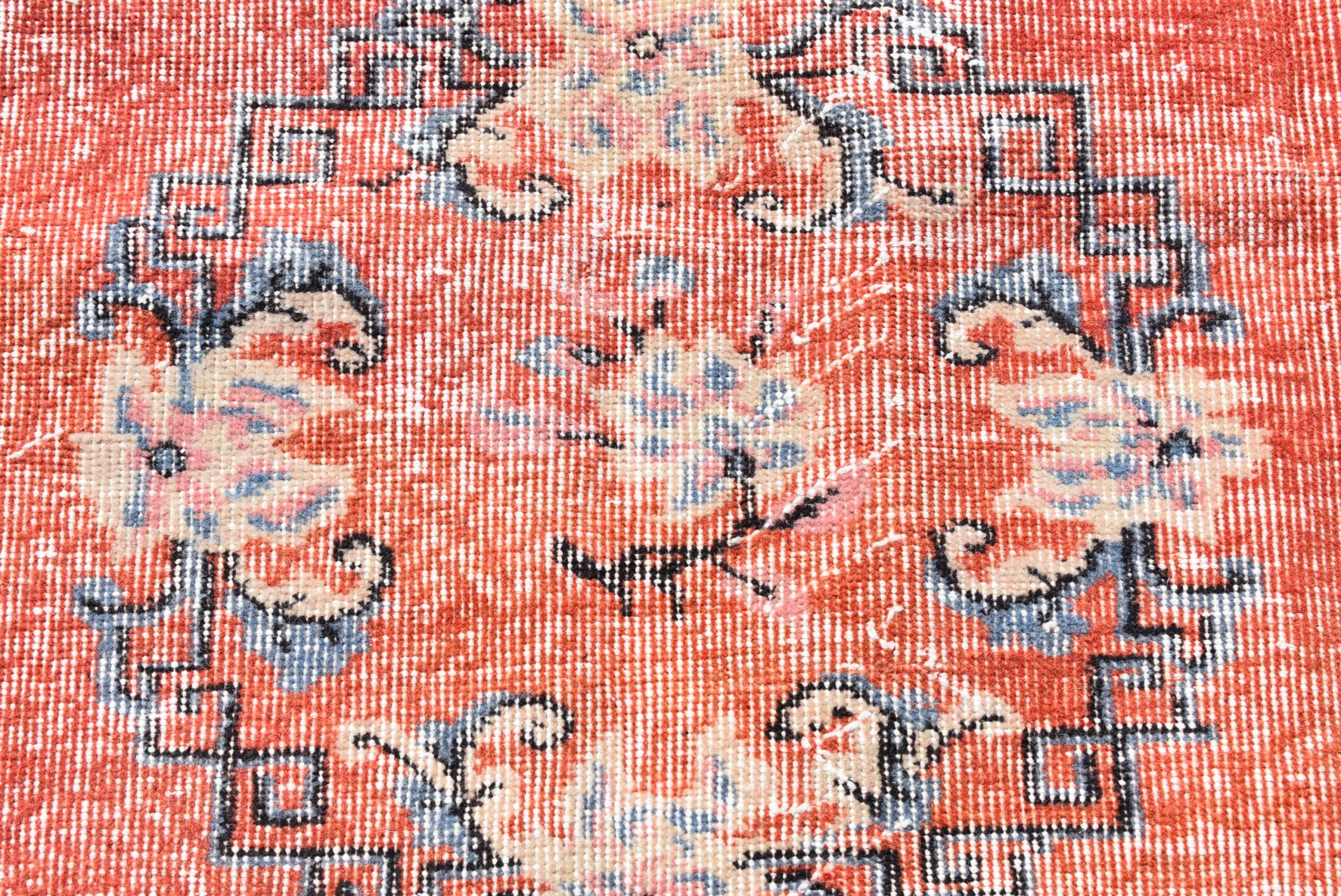 This is a vintage Turkish rug hand-knotted in a small village in Turkey by skilled Anatolian women during around the 1980s. It is made from natural wool (sheep) and dyed using all-natural (vegetable) dyes. Natural materials are more durable than synthetic materials guaranteeing a rug that can last for years while natural dyes provide colors that gets more beautiful as years pass by especially when in direct sunlight.