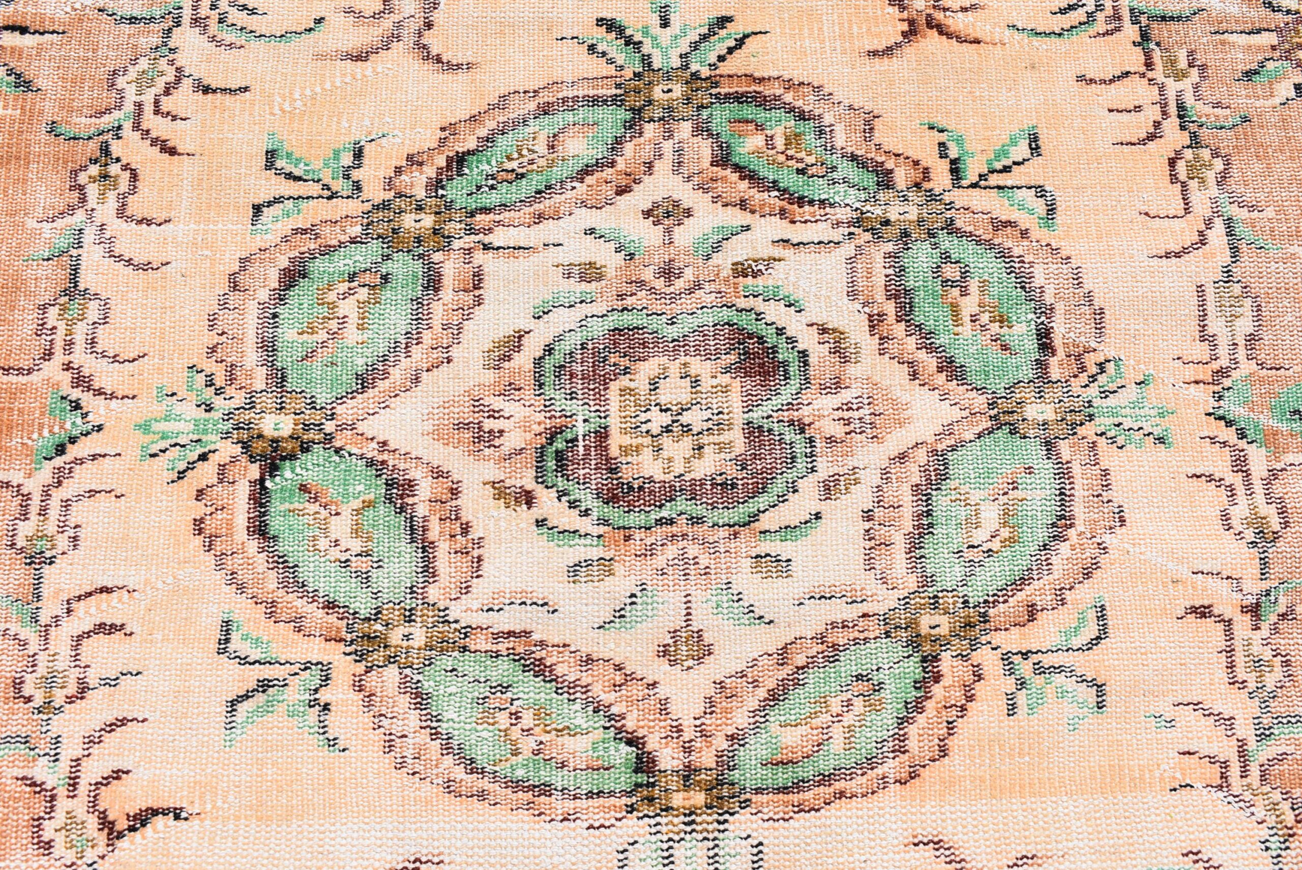Lovely and unique 6 ft. x 9.2 ft. (183 cm x 280 cm) vintage Turkish rug hand-knotted in Turkey from organic wool. This is an authentic vintage Turkish rug from the 1980s that has worn beautifully to perfection.