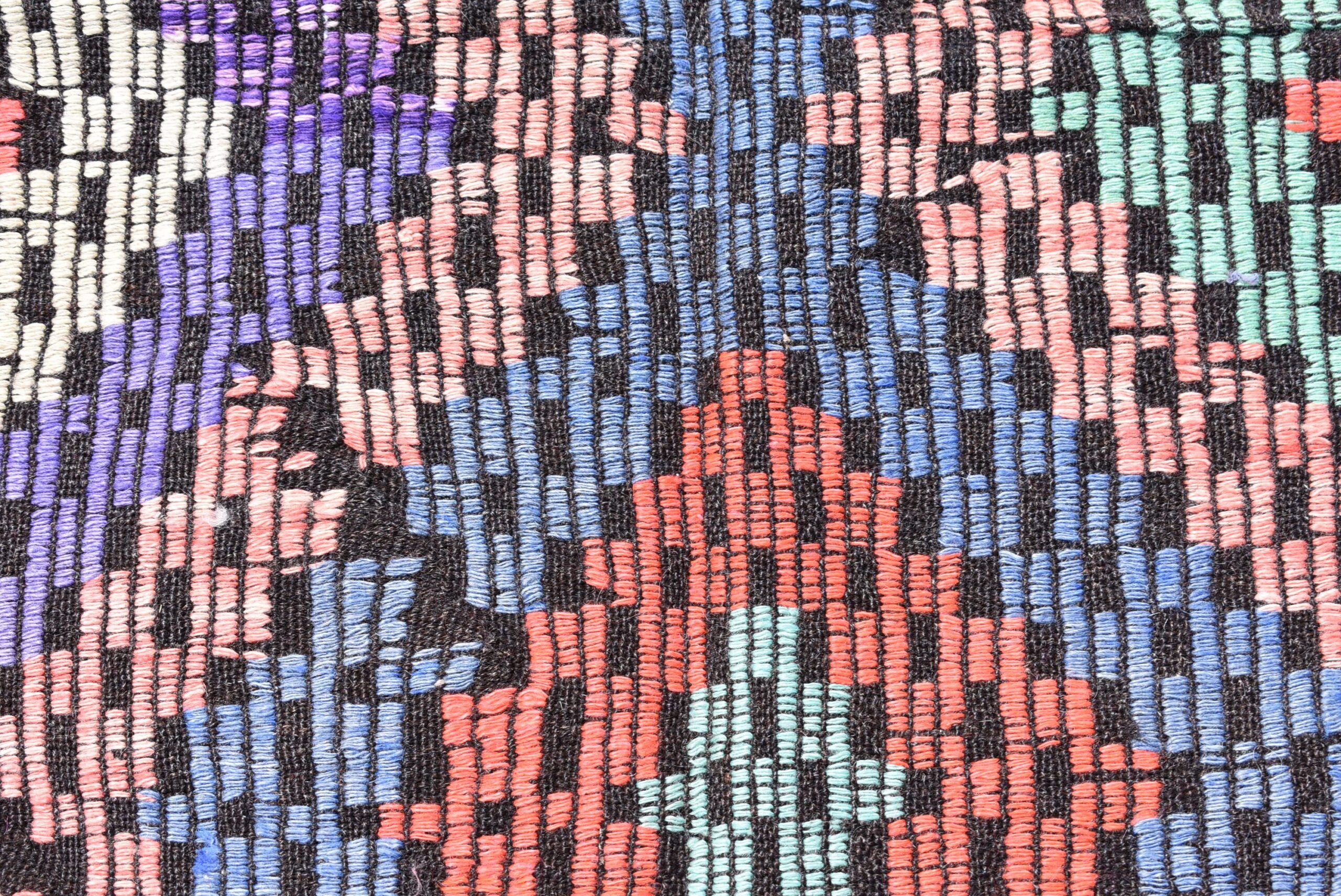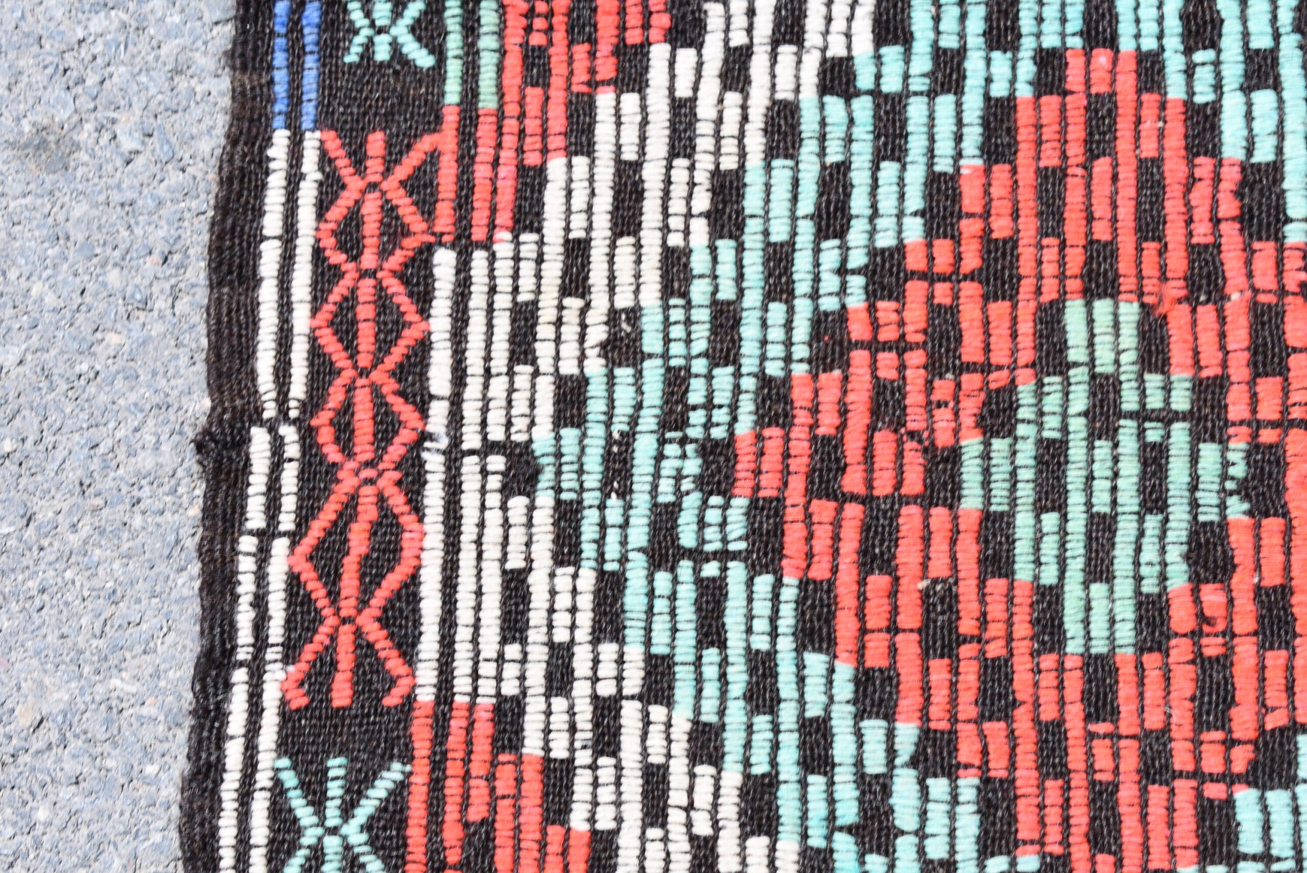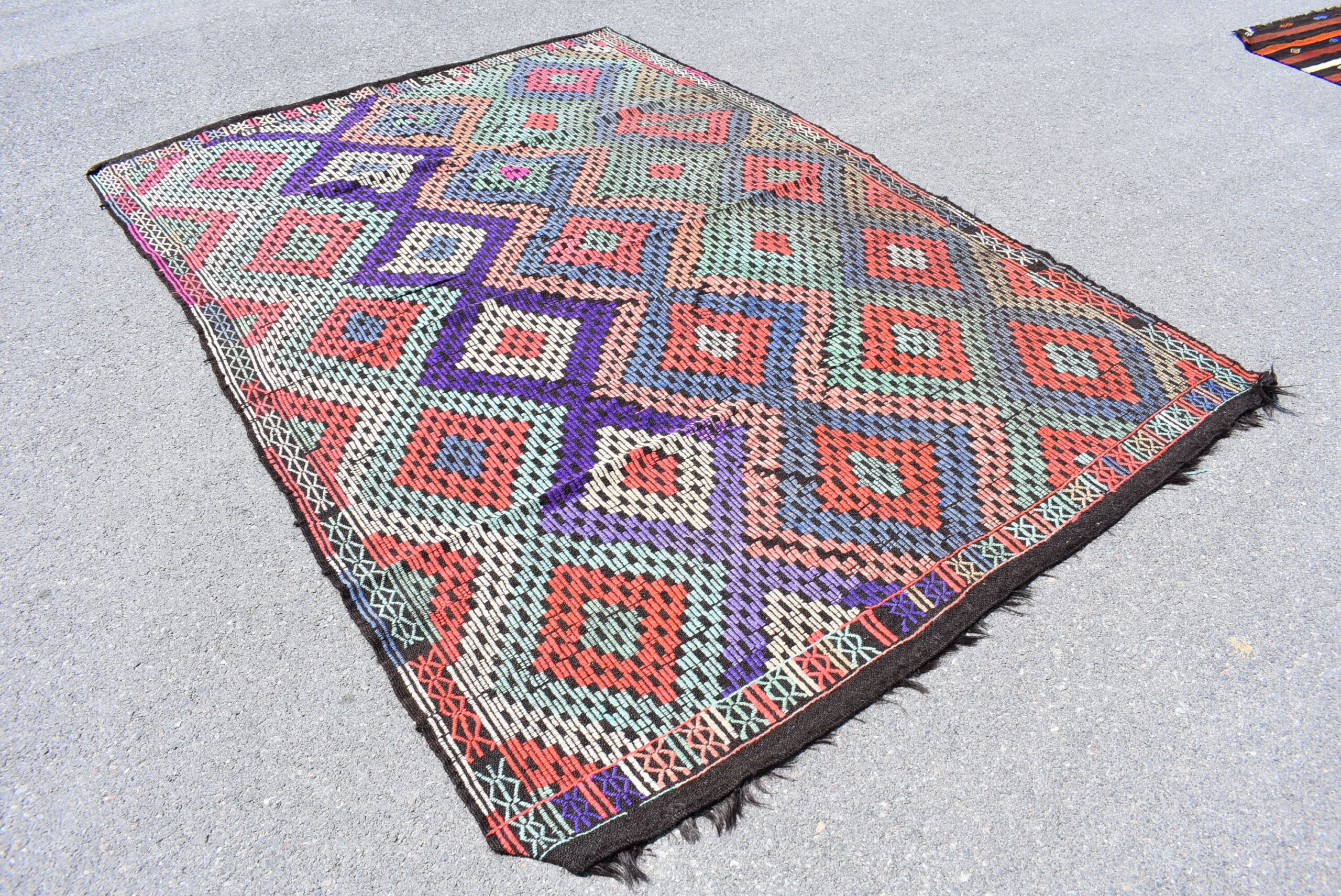 This is a vintage kilim rug hand-woven in a small village in Turkey by skilled Anatolian women during around the 1970s. It is made from natural wool (sheep) and dyed using all-natural (vegetable) dyes. Natural materials are more durable than synthetic materials guaranteeing a rug that can last for years while natural dyes provide colors that gets more beautiful as years pass by especially when in direct sunlight.