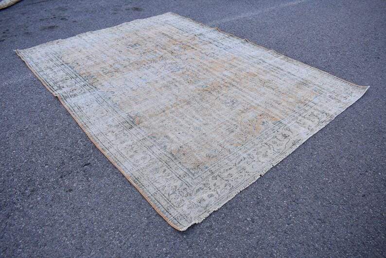 Pretty and one-of-a-kind 7.2 ft. x 9.7 ft. (219 cm x 296 cm) vintage Turkish rug hand-knotted in Turkey from organic wool. This is an authentic vintage Turkish rug from the 1970s that has worn splendidly to perfection.
