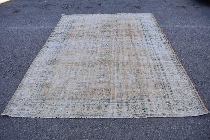 This is a vintage Turkish rug hand-knotted in a small village in Turkey by skilled Anatolian women during around the 1970s. It is made from natural wool (sheep) and dyed using all-natural (vegetable) dyes. Natural materials are more durable than synthetic materials guaranteeing a rug that can last for years while natural dyes provide colors that gets more beautiful as years pass by especially when in direct sunlight.