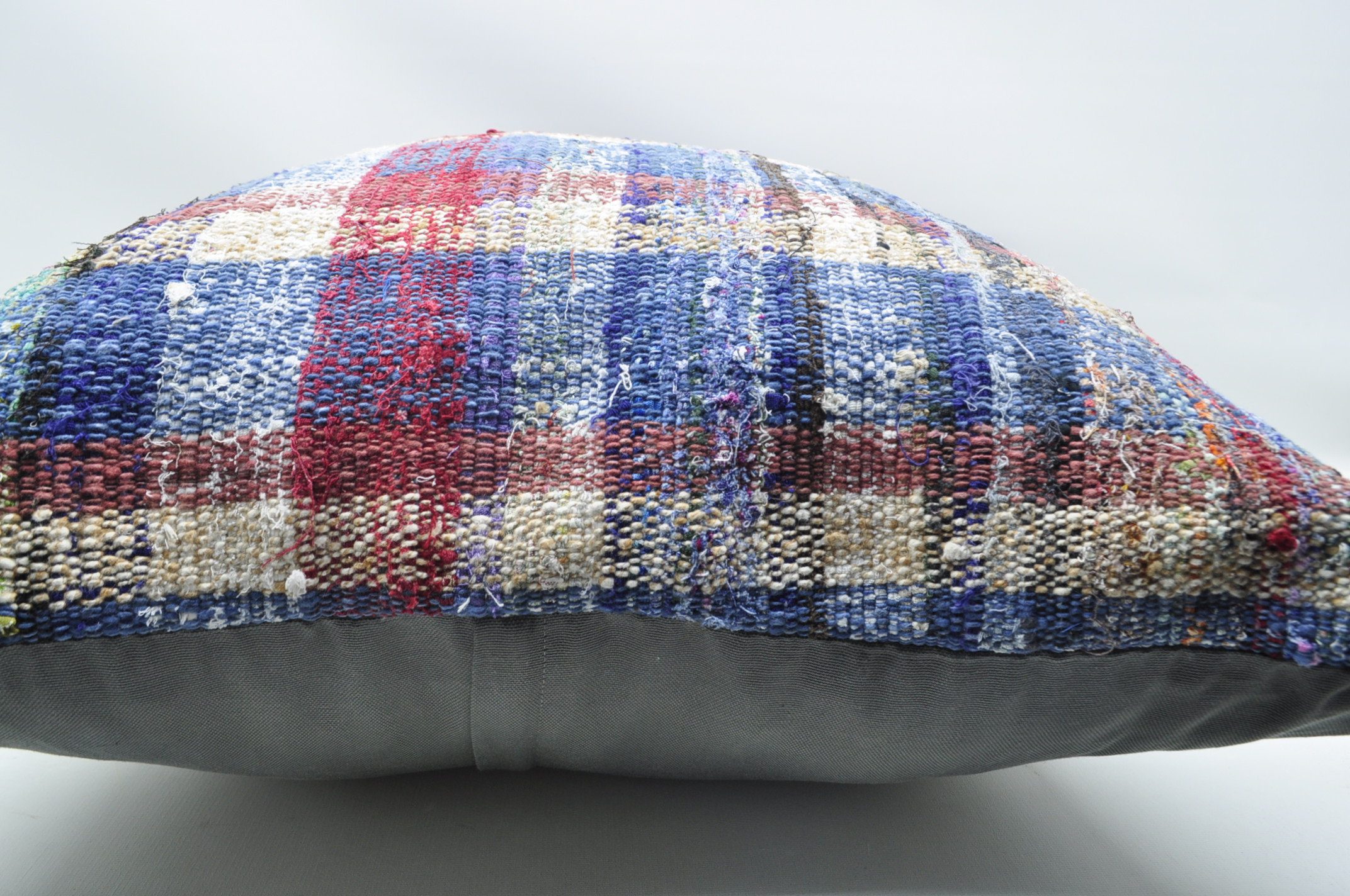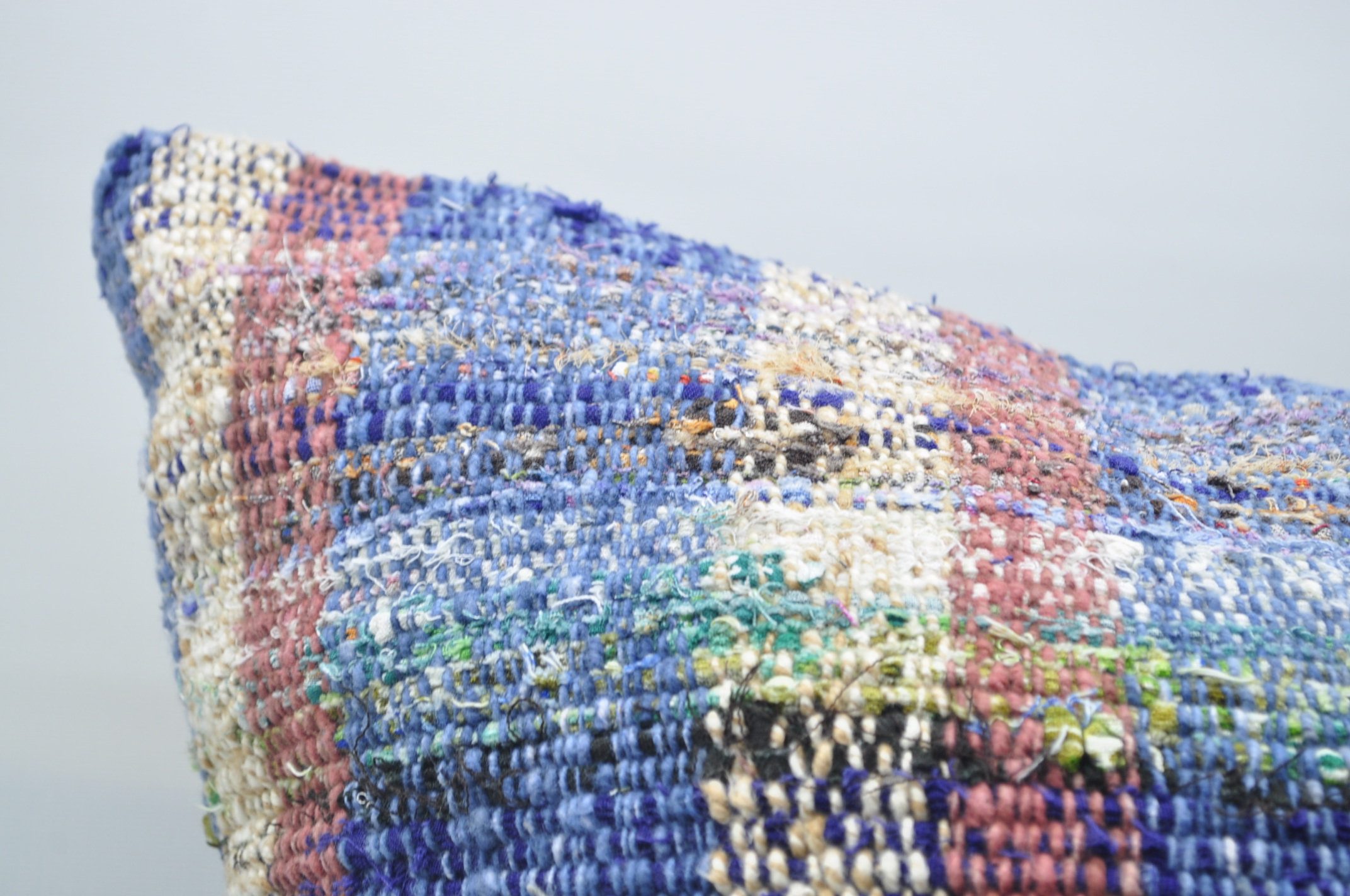 This is a pillow cover made from a vintage Turkish rug/kilim that was handmade by Anatolian artisans from around the 1950s to 1970s. We take a vintage rug/kilim that cannot be mended and thoroughly recondition them to repurpose some parts into a beautiful pillow cover. Vintage Turkish rugs and kilims are one-of-a-kind, and so are the pillow covers.
