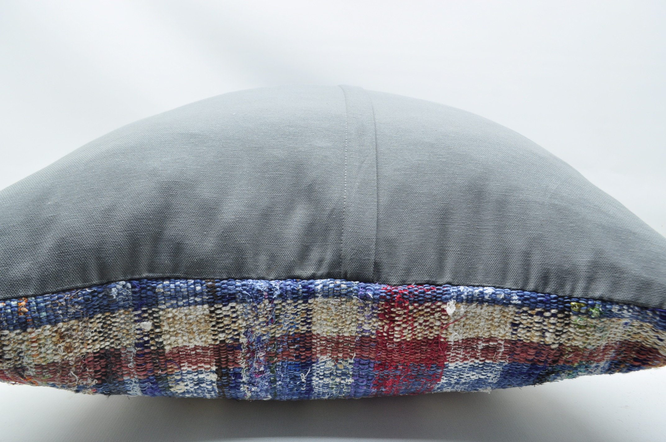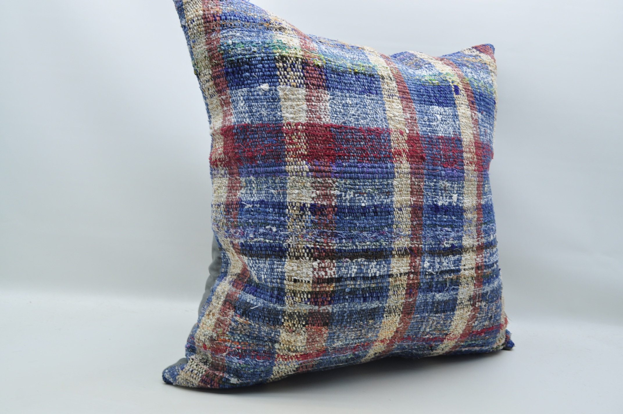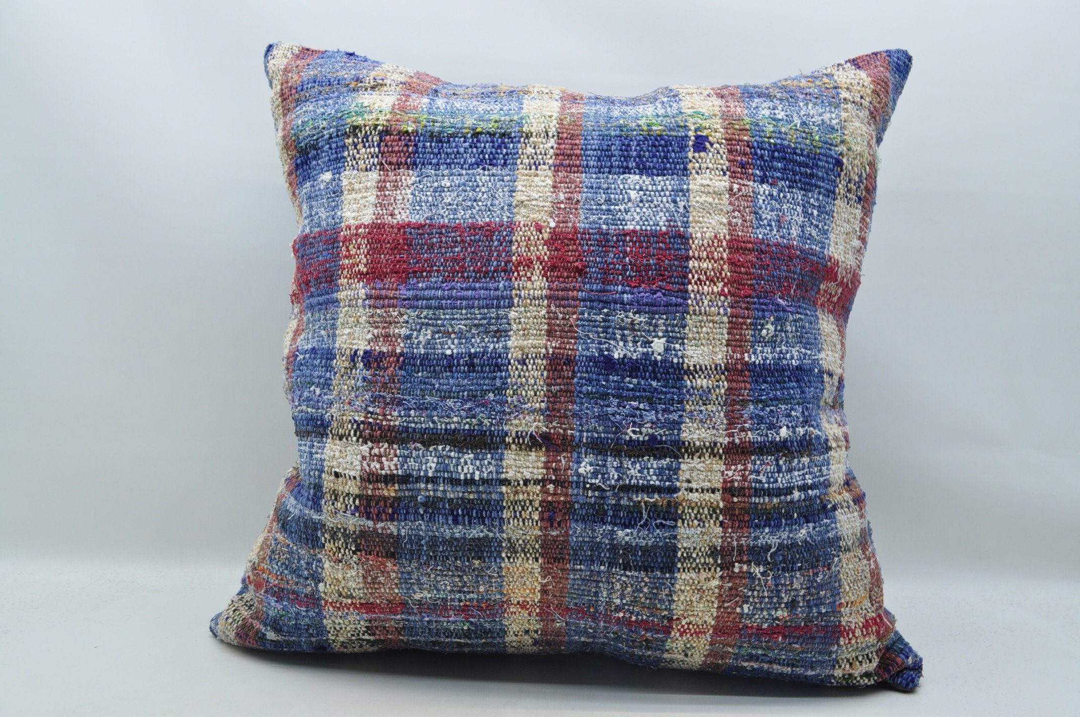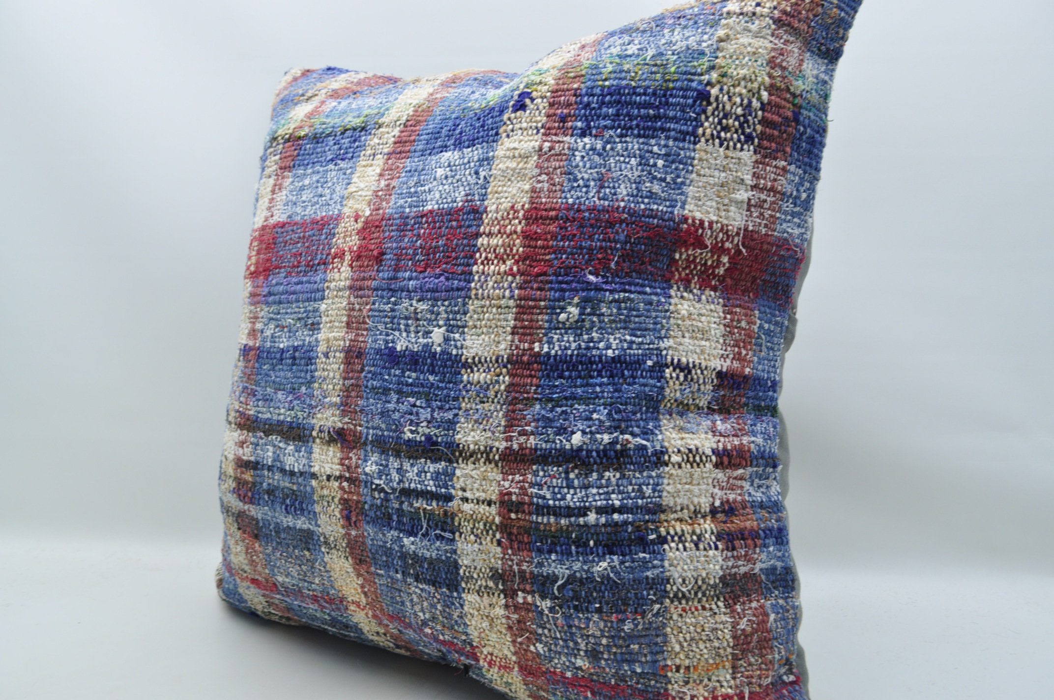 A 28" x 28" (70 cm x 70 cm) pillow cover made from a vintage Turkish rug/kilim that was handmade 40 to 70 years ago. Unique, charming, and truly decorative.